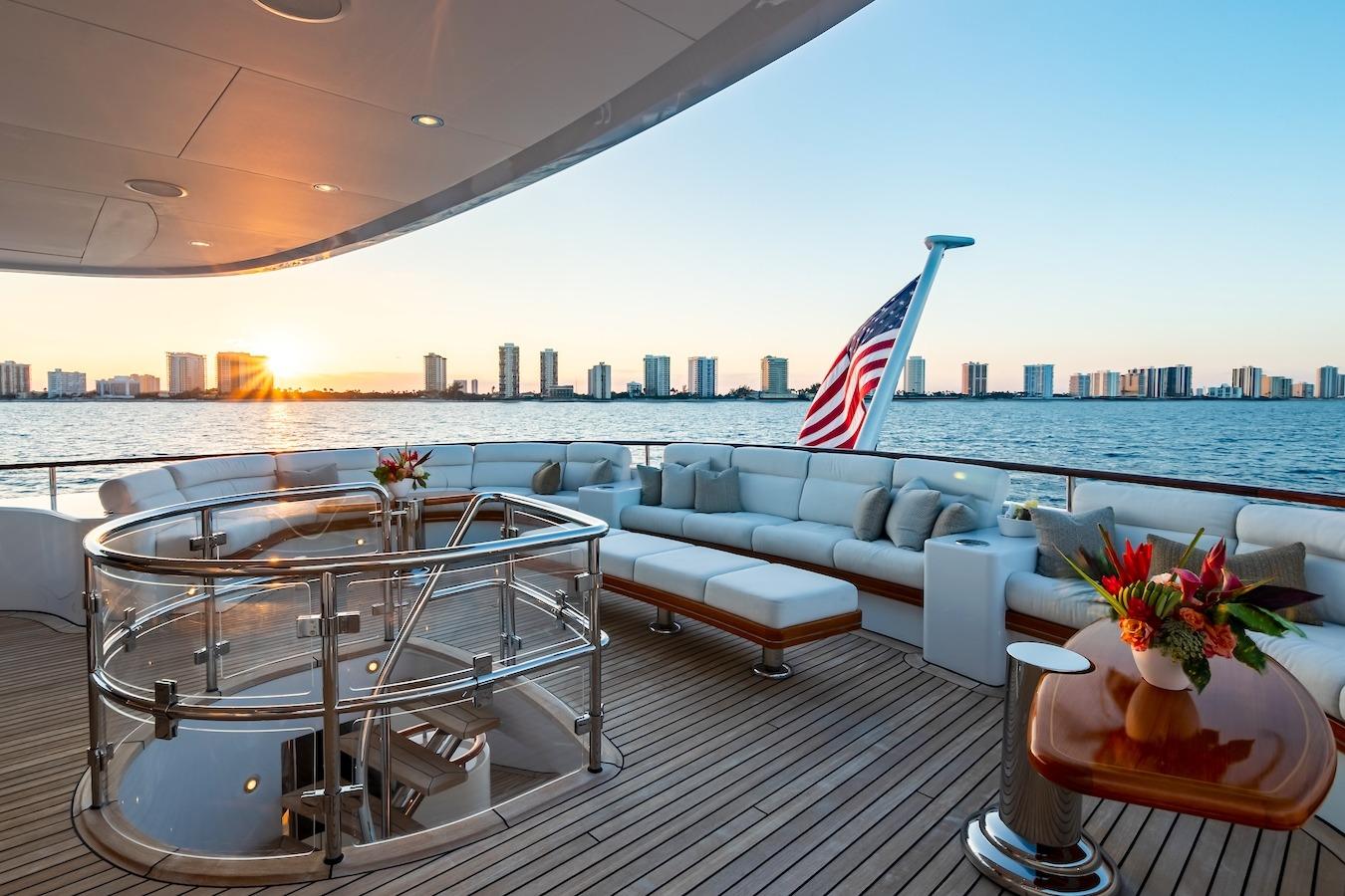 Зона джакузи на флайбридже идеально подходит для отдыха или наслаждения видом из 5 капитанских кресел на посту управления