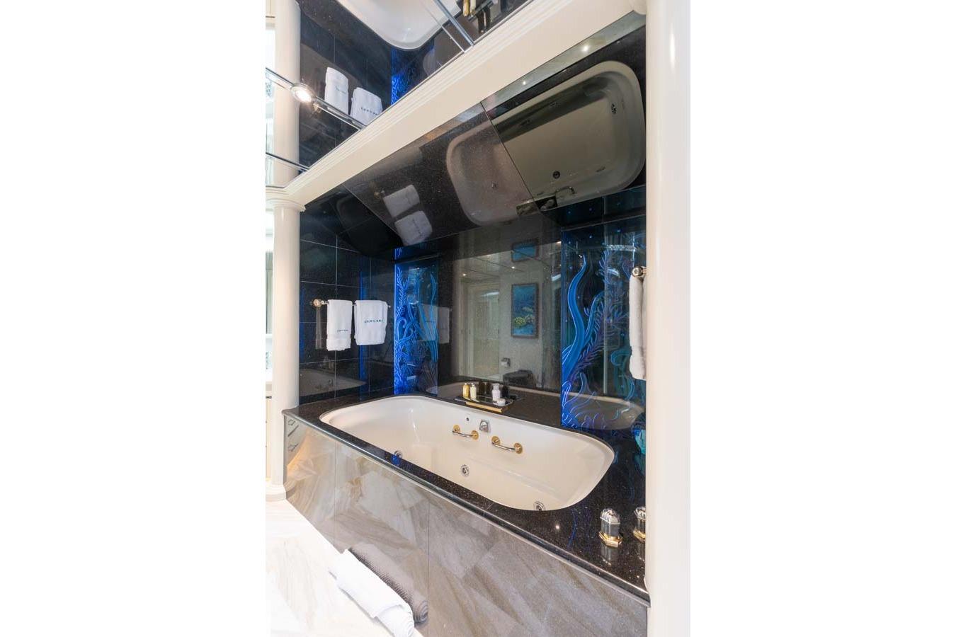 Яхта была приобретена в январе 2022 года и сразу отправлена на капитальный рефит интерьера и экстерьера. Все поверхности внутри (полы, стены, потолки) были очищены до базовой конструкции и полностью обновлены: новое ковровое покрытие, стеновые покрытия, потолочные панели, светильники, встроенная и отдельно стоящая мебель, мягкие элементы и декор — внутри и снаружи. Все санузлы (в каютах и дневные) полностью переделаны: новый мрамор, зеркала, стеклянные двери, туалеты и сантехника.