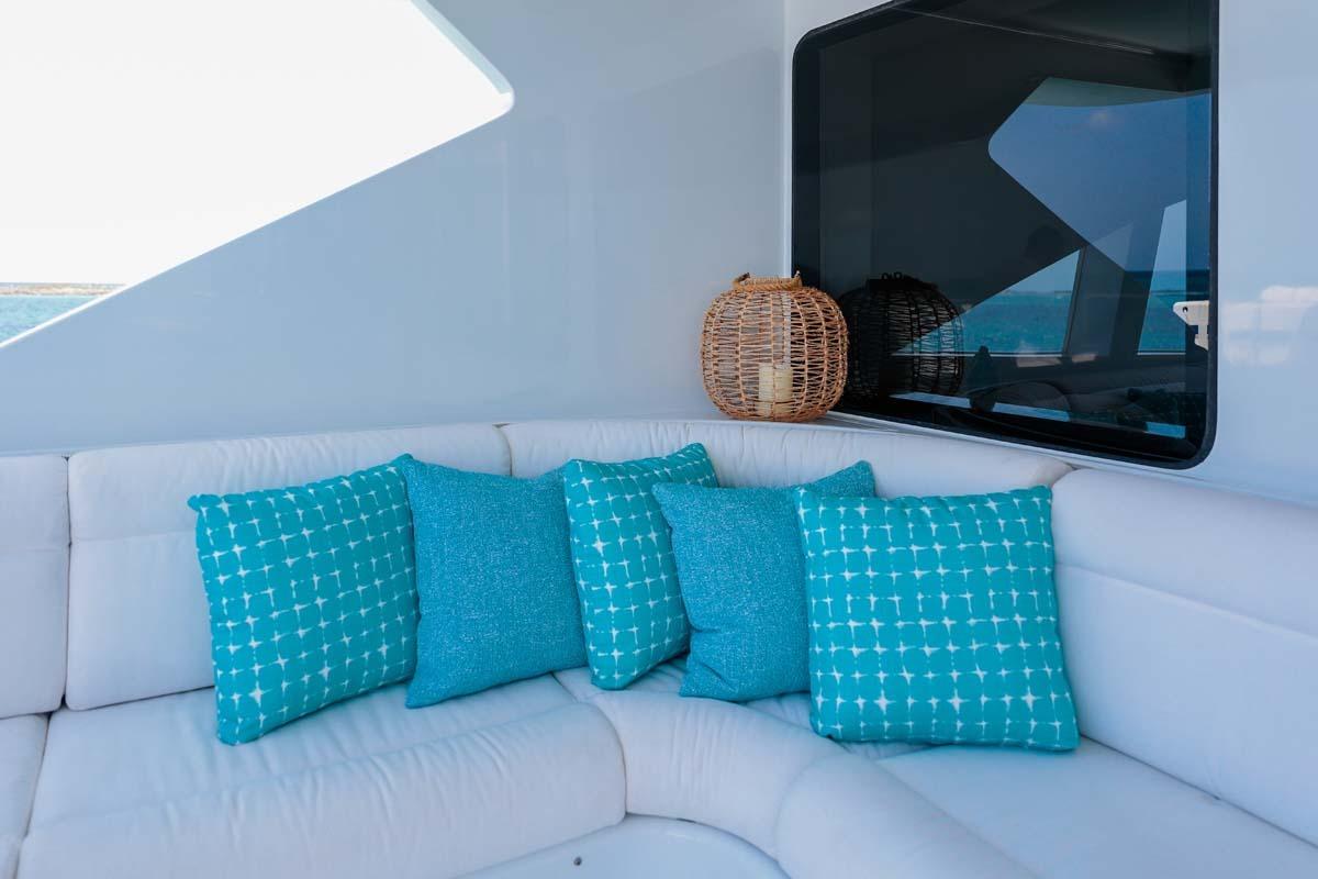 На кормовой палубе и флайбридже есть полный набор удобств. Обед на свежем воздухе до десяти гостей на кормовой палубе — всегда популярное решение. Днём бар с посадкой становится самым посещаемым местом для отдыхающих на солнце. Две лестницы ведут в кокпит, где водные активности становятся главным событием дня. Флайбридж создан для развлечений: джакузи на шесть человек, полноценный бар и зоны для принятия солнечных ванн. Непревзойдённые океанские виды делают флайбридж местом притяжения для любителей панорам.