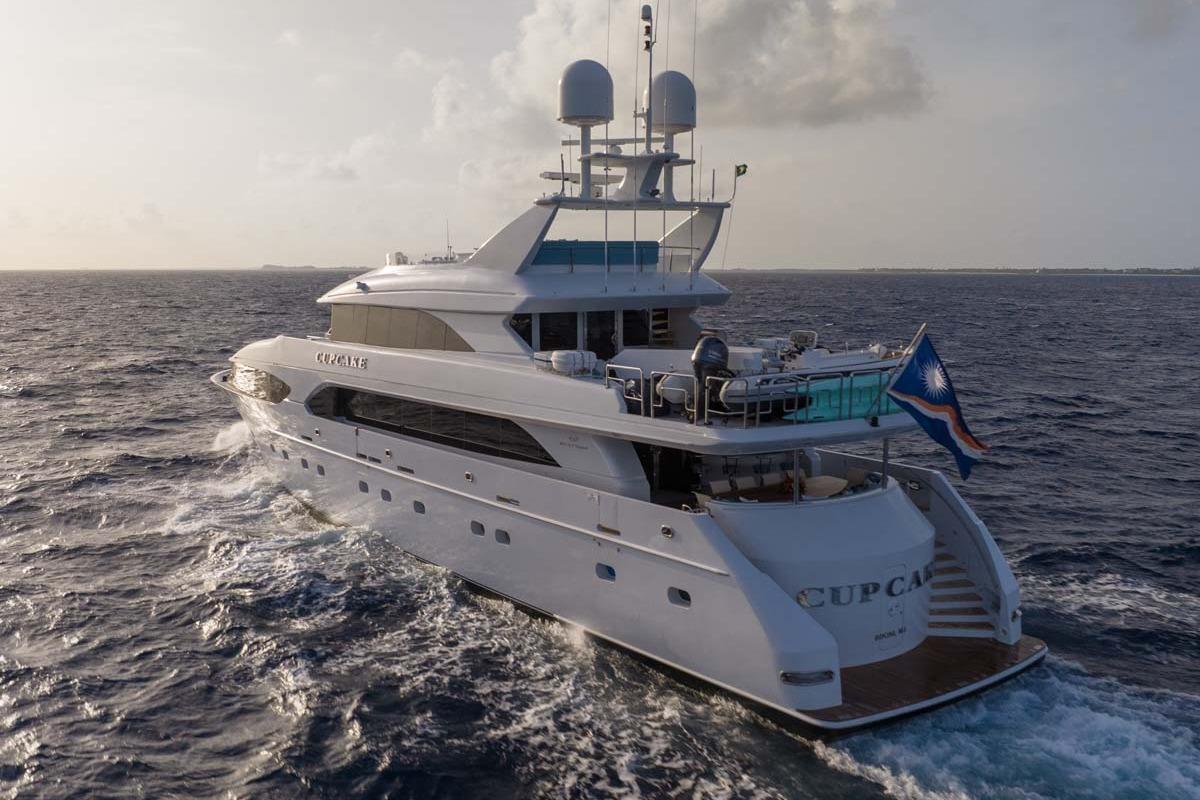 CUPCAKE отличается современным интерьером, выполненным в спокойных нейтральных оттенках кремового и бирюзового, дополненных акцентами из перламутра. Эта яхта американской постройки недавно прошла обновления, включая новое художественное оформление, внешние подушки, обновлённые мягкие элементы интерьера и усовершенствованное аудио-видео оборудование по всему судну. Впечатляющая каюта владельца во всю ширину корпуса, расположенная на главной палубе, оснащена кроватью king-size, установленной ближе к корме, а также раздельными ванными комнатами для него и для неё с душем и отдельной просторной ванной. На нижней палубе расположены четыре гостевые каюты, каждая из которых столь же элегантна и хорошо оборудована, с собственной ванной комнатой.