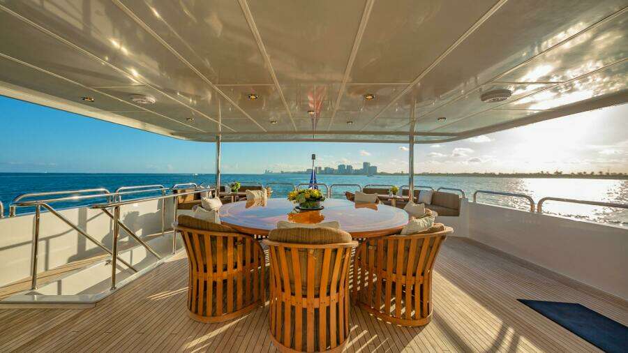 Созданная с акцентом на развлечения, она располагает большой кормовой палубой, просторным скайлаунжем и солнечной палубой с джакузи и баром, что делает её идеальной платформой для приёма семьи, друзей или чартерных гостей.
