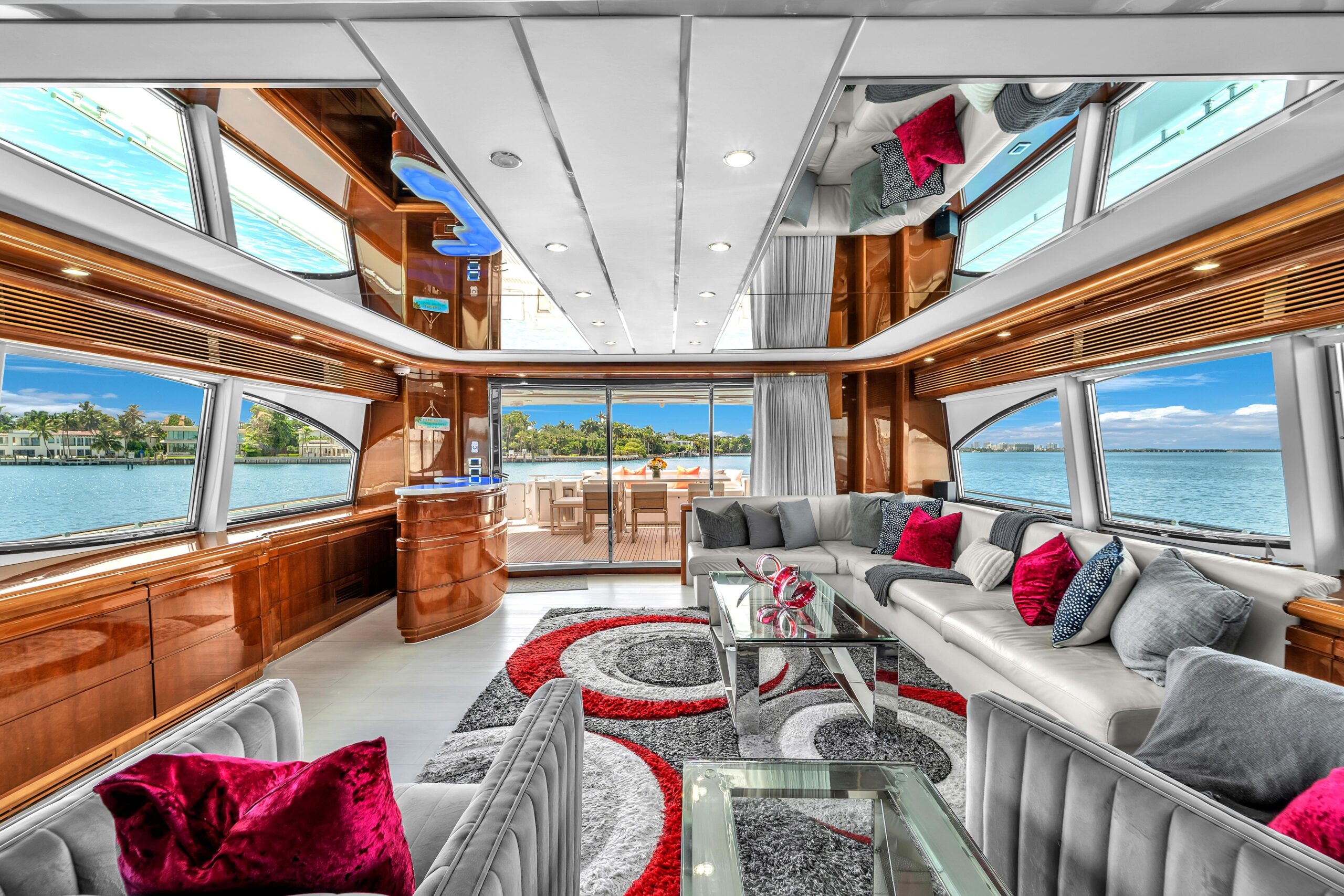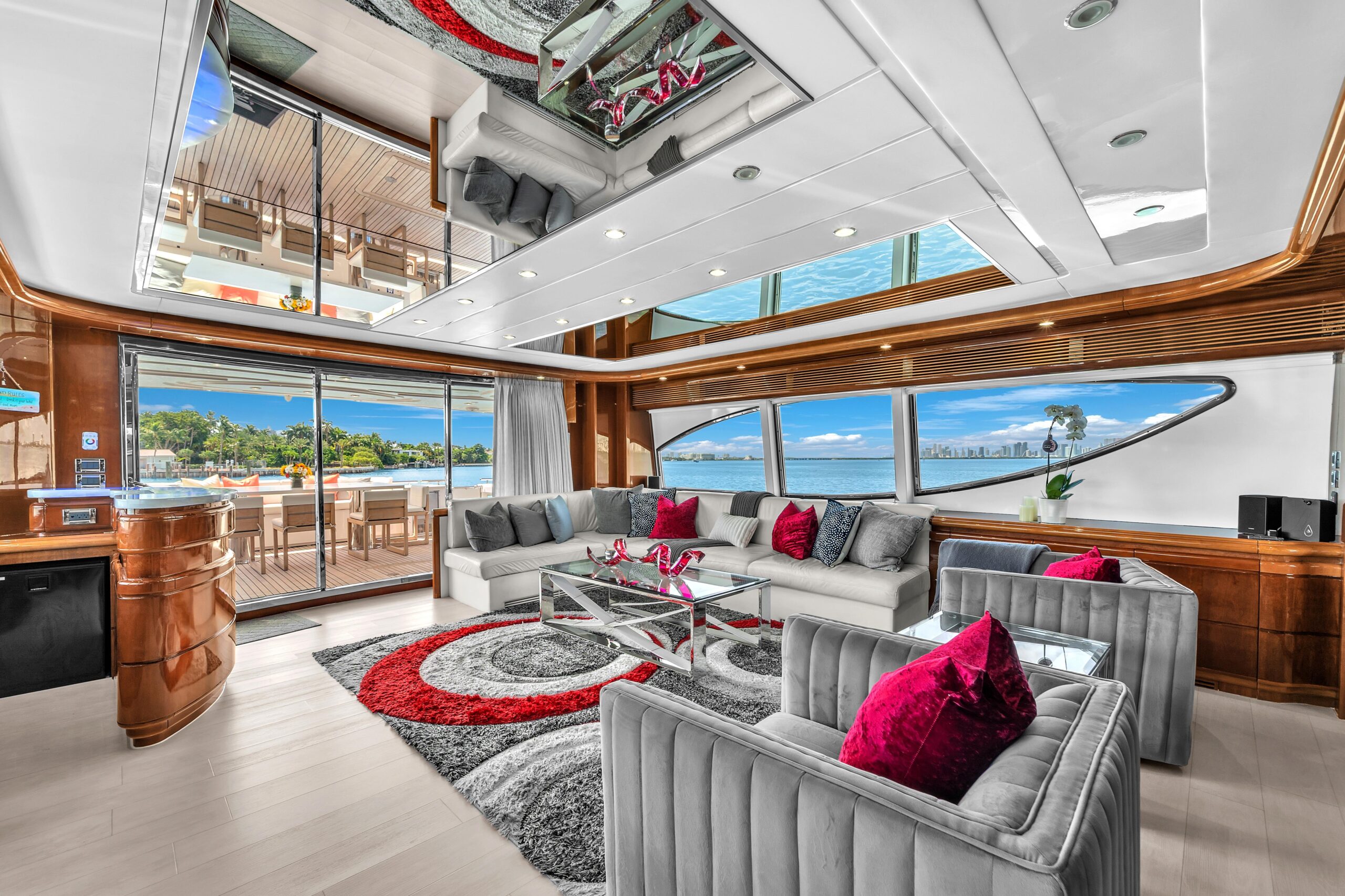 - Входные двери из обеденной зоны, главного холла и с левого борта внешней палубы