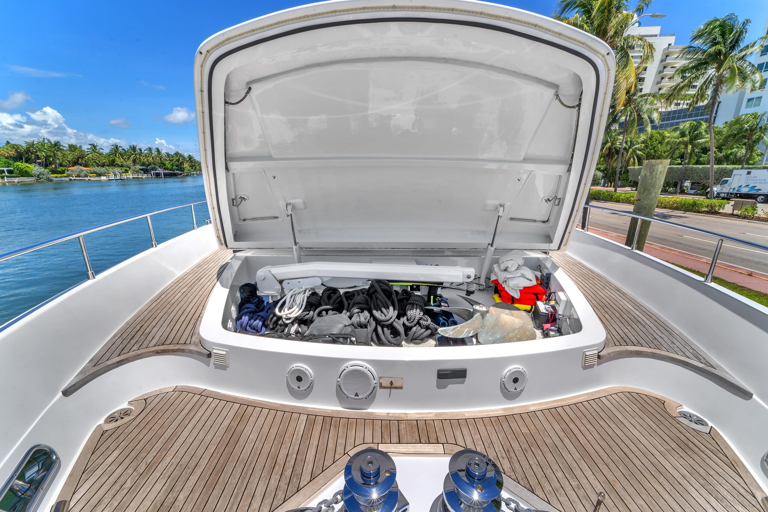 - Управление брашпилем и промывкой цепи; большая зона для загара с кастомной обивкой; Hot Tub с чехлом-матом