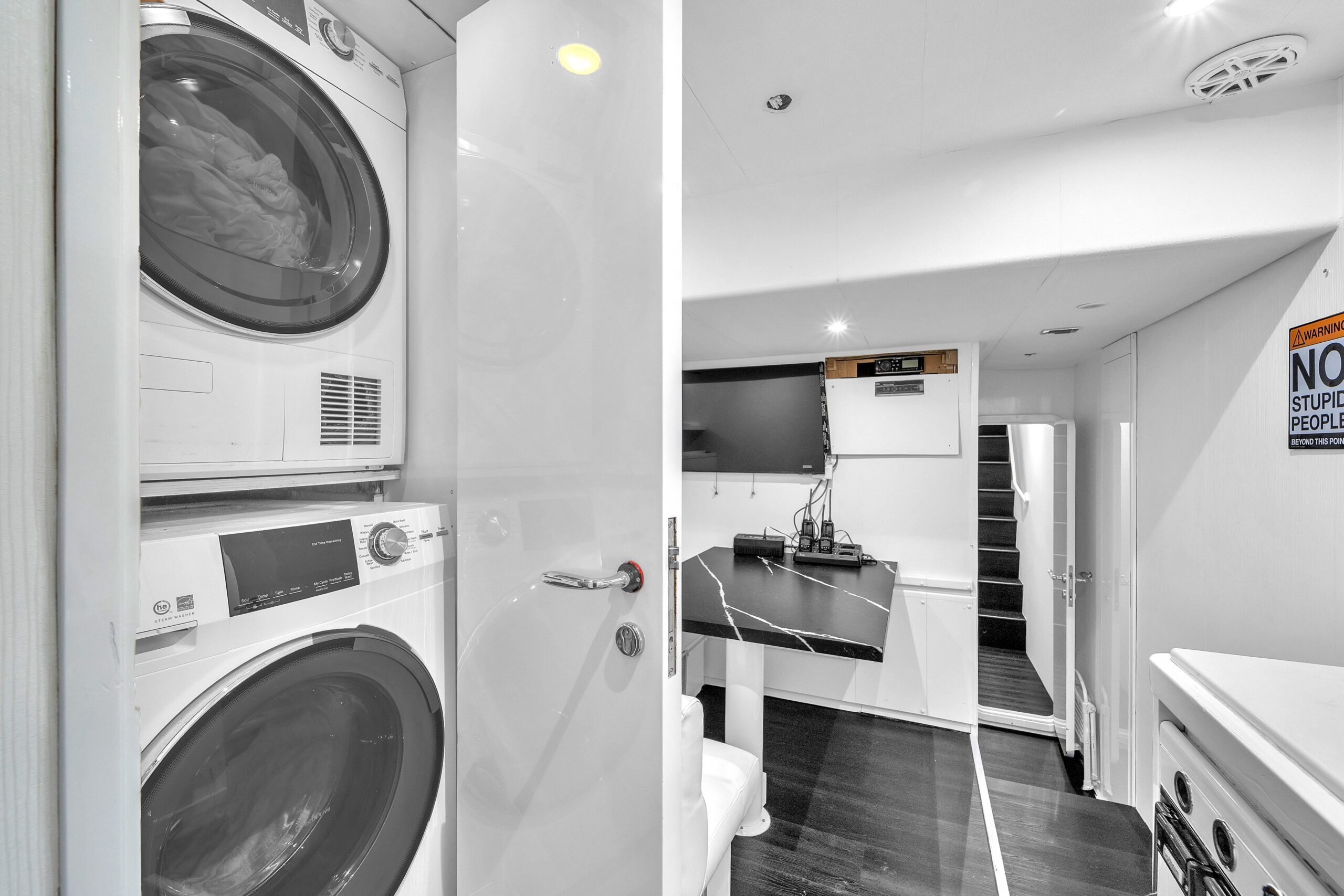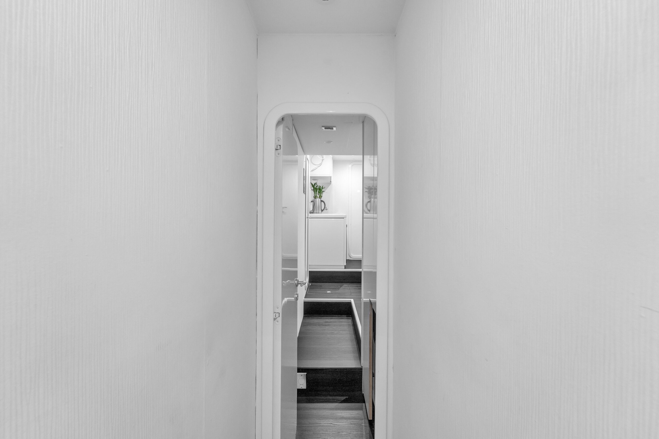 - Соединяет главный салон с обеденной зоной, дневным санузлом, лестницей на мостик и лестницей к каютам