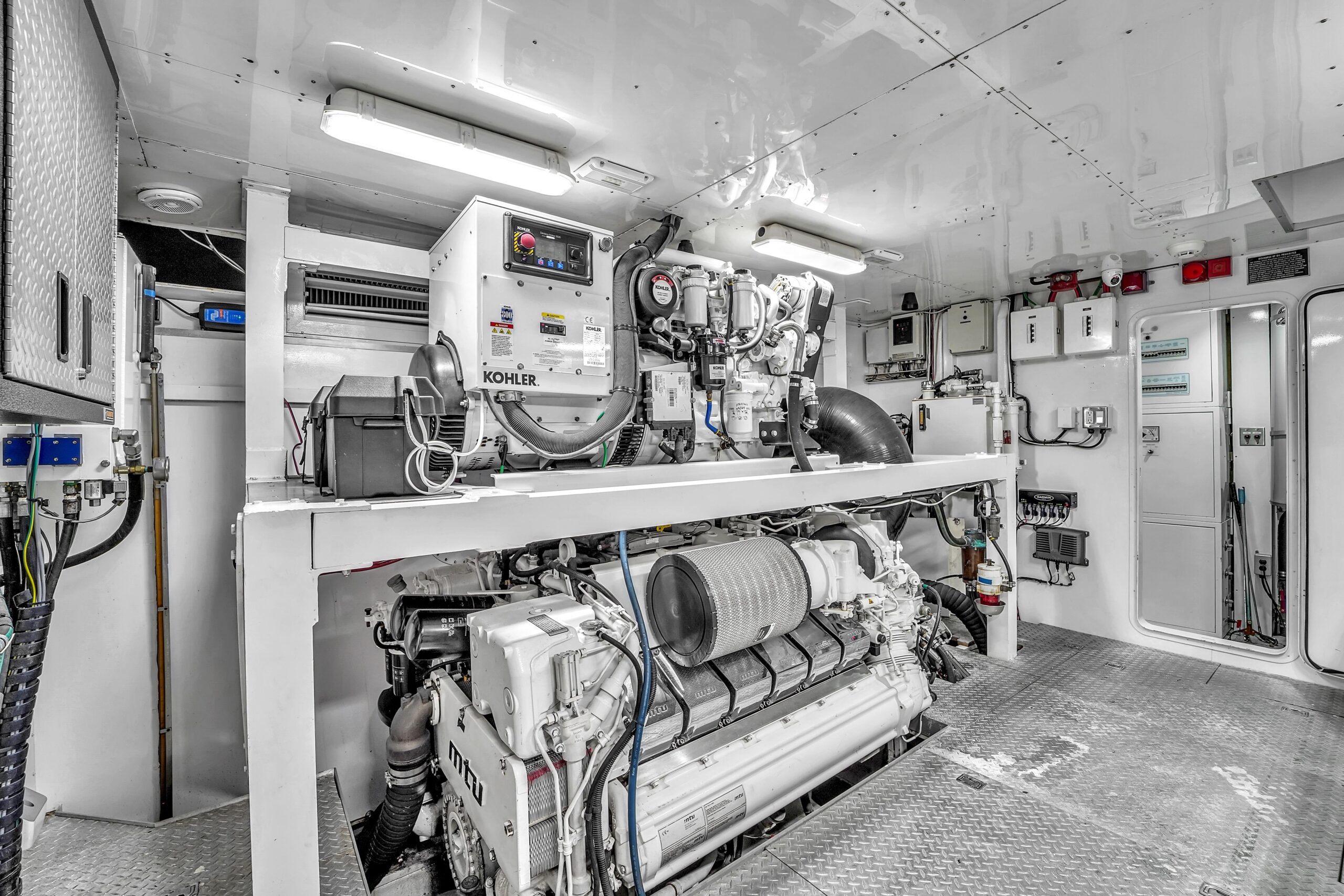 - Два MTU 12V VM96L (2017), 1730 ч, все сервисы актуальны и задокументированы; моточасы: левый 1830 / правый 1820