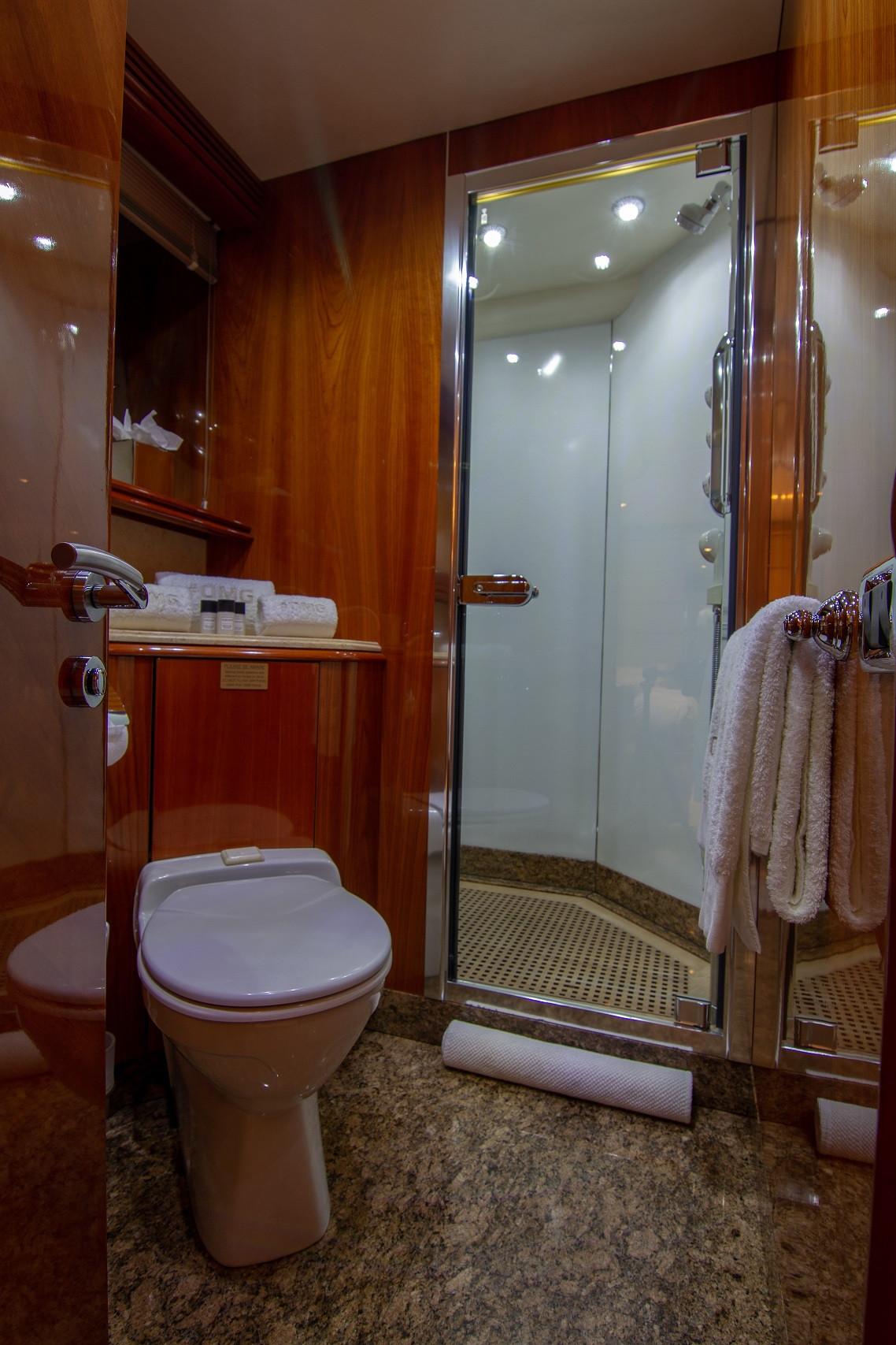 Просторная мастер-каюта на главной палубе с увеличенной ванной комнатой и гардеробной зоной создаёт исключительную атмосферу комфорта для владельцев. Гостевые и VIP-каюты также превосходно оснащены и имеют собственные ванные комнаты. VIP-каюта располагает кроватью размера king-size, паровым душем и гардеробной — фактически это вторая мастер-каюта.