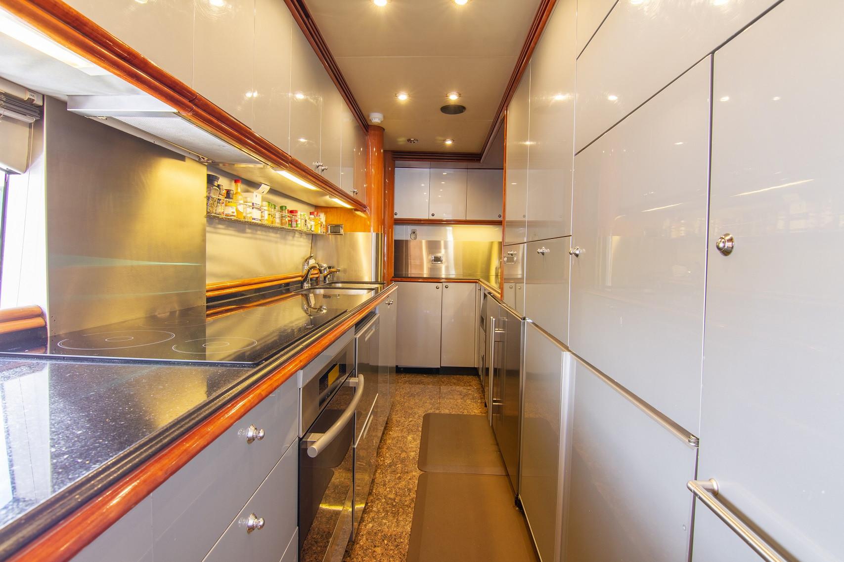 В носовой части по левому борту расположен полностью оборудованный камбуз с холодильным оборудованием Sub-Zero, U-Line и другой бытовой техникой премиум-класса.