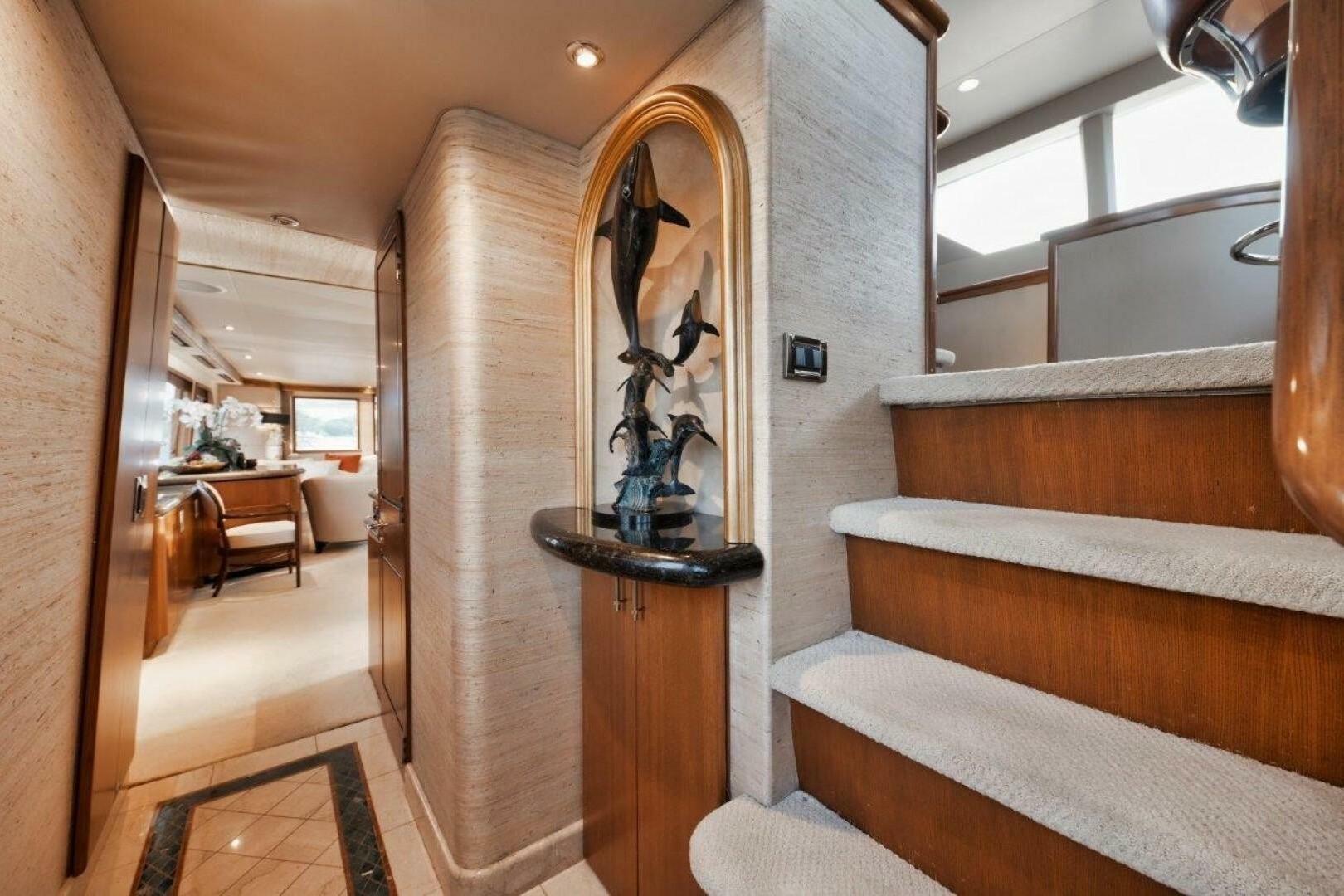 При входе в главный салон вас встречает открытое и гостеприимное пространство, элегантно обставленное мягкой зоной отдыха, формальной обеденной зоной и большими панорамными окнами, наполняющими интерьер естественным светом. Недавно установленный ТВ в салоне улучшает возможности развлечений, а изысканные отделочные материалы и премиальный декор создают утончённую атмосферу.