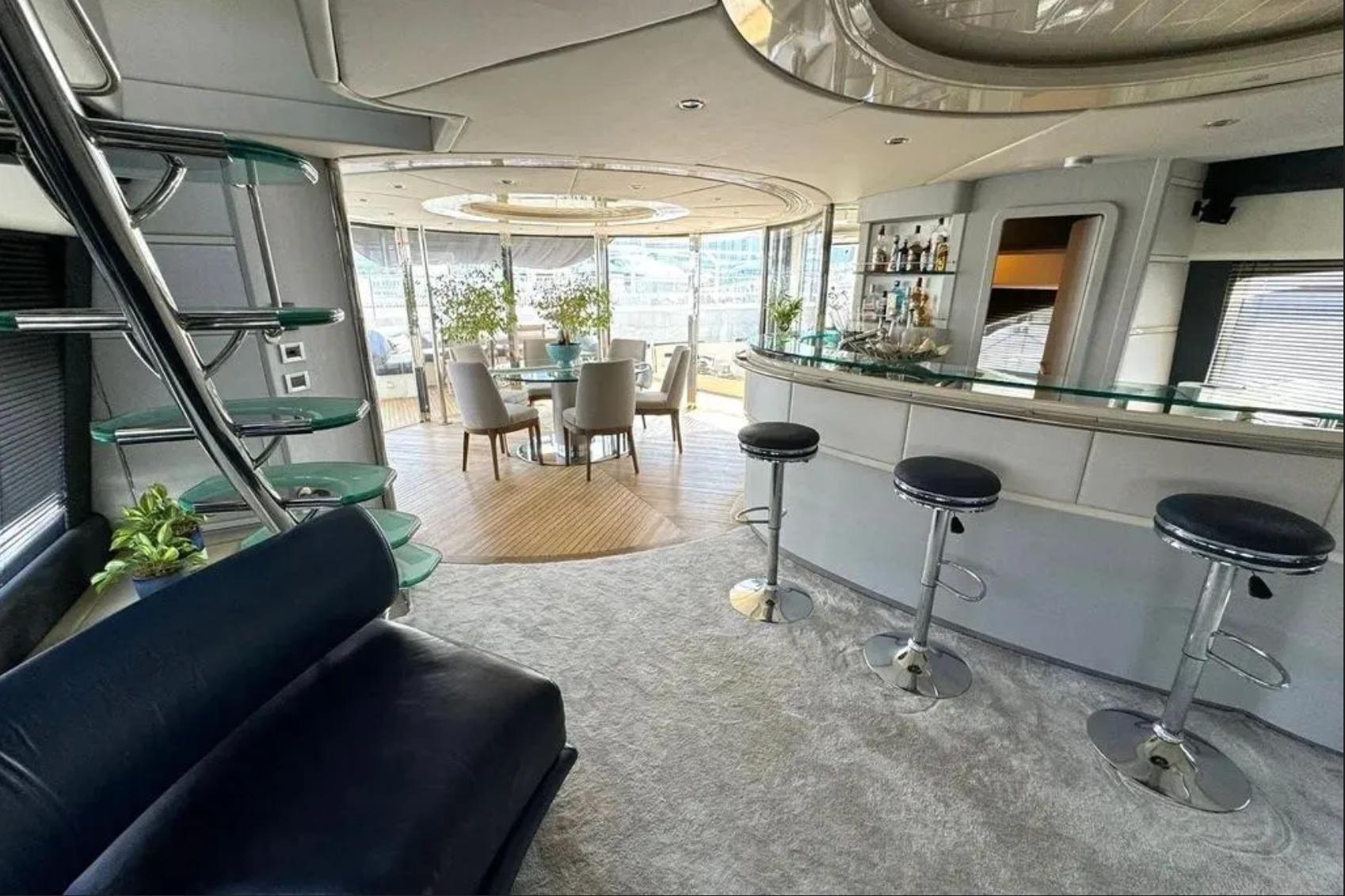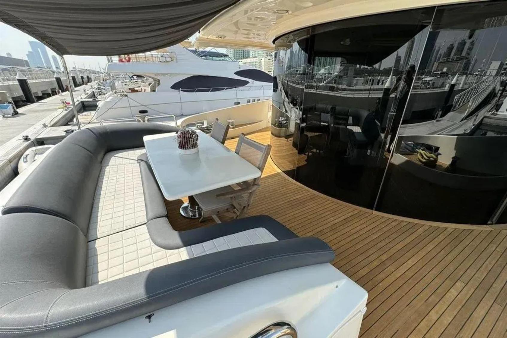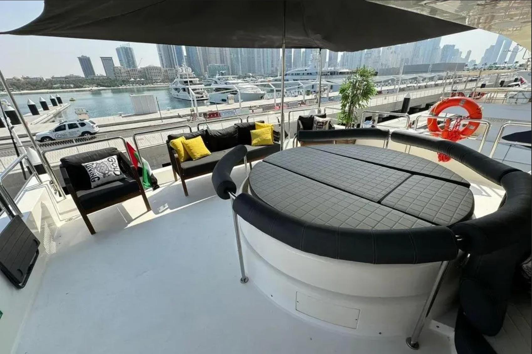 Оснащение флайбриджа: Бар, гриль, зоны для загара, джакузи, лаунж и обеденная зона с обзором 360°