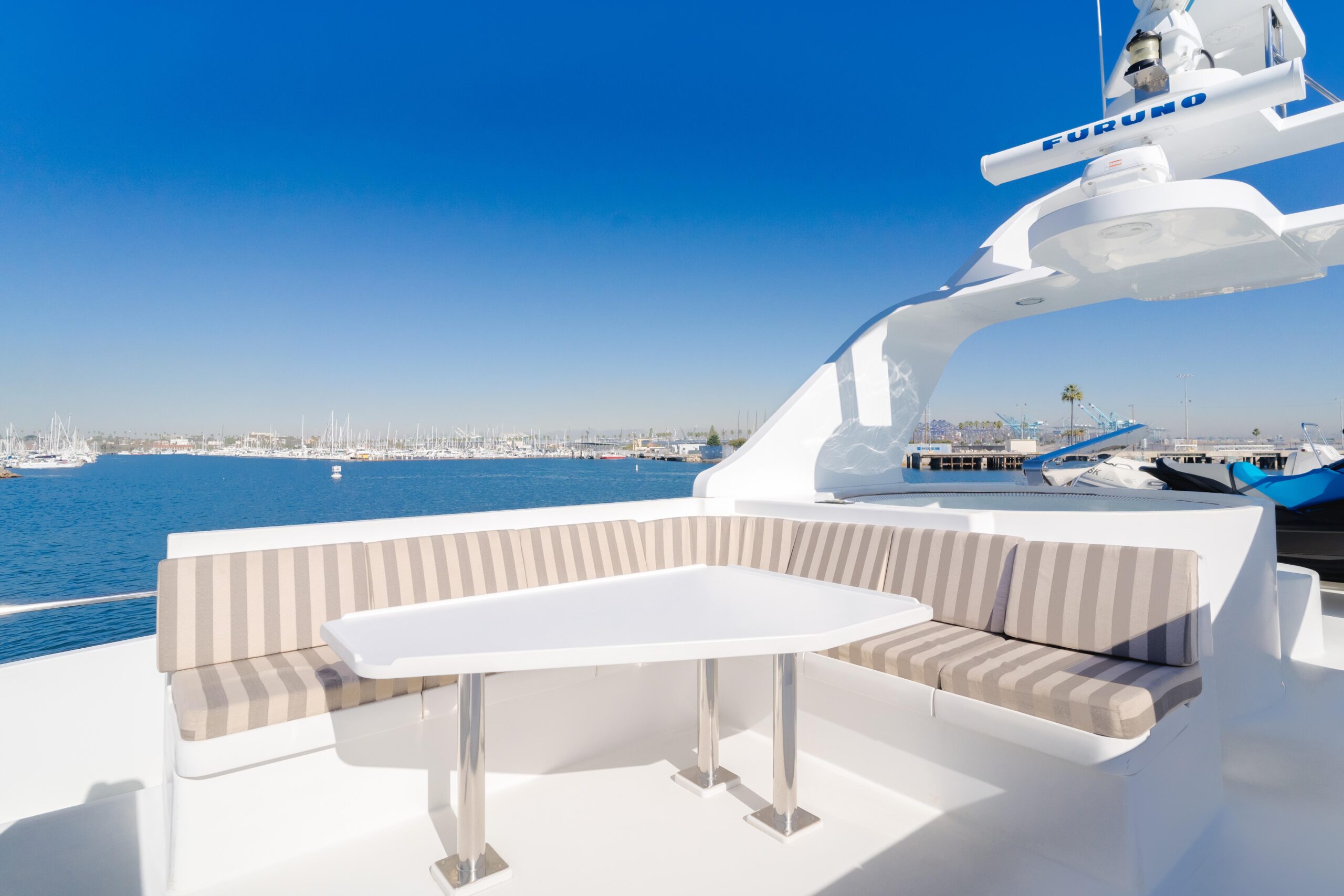 Transworld Yacht 2003 года длиной 97 футов отличается просторной и элегантно спроектированной палубой, откуда открываются панорамные виды на водные просторы, уходящие за горизонт. Безусловным центром притяжения на борту является джакузи, стратегически расположенное так, чтобы обеспечить непревзойдённый уровень релаксации в окружении красоты открытого океана.