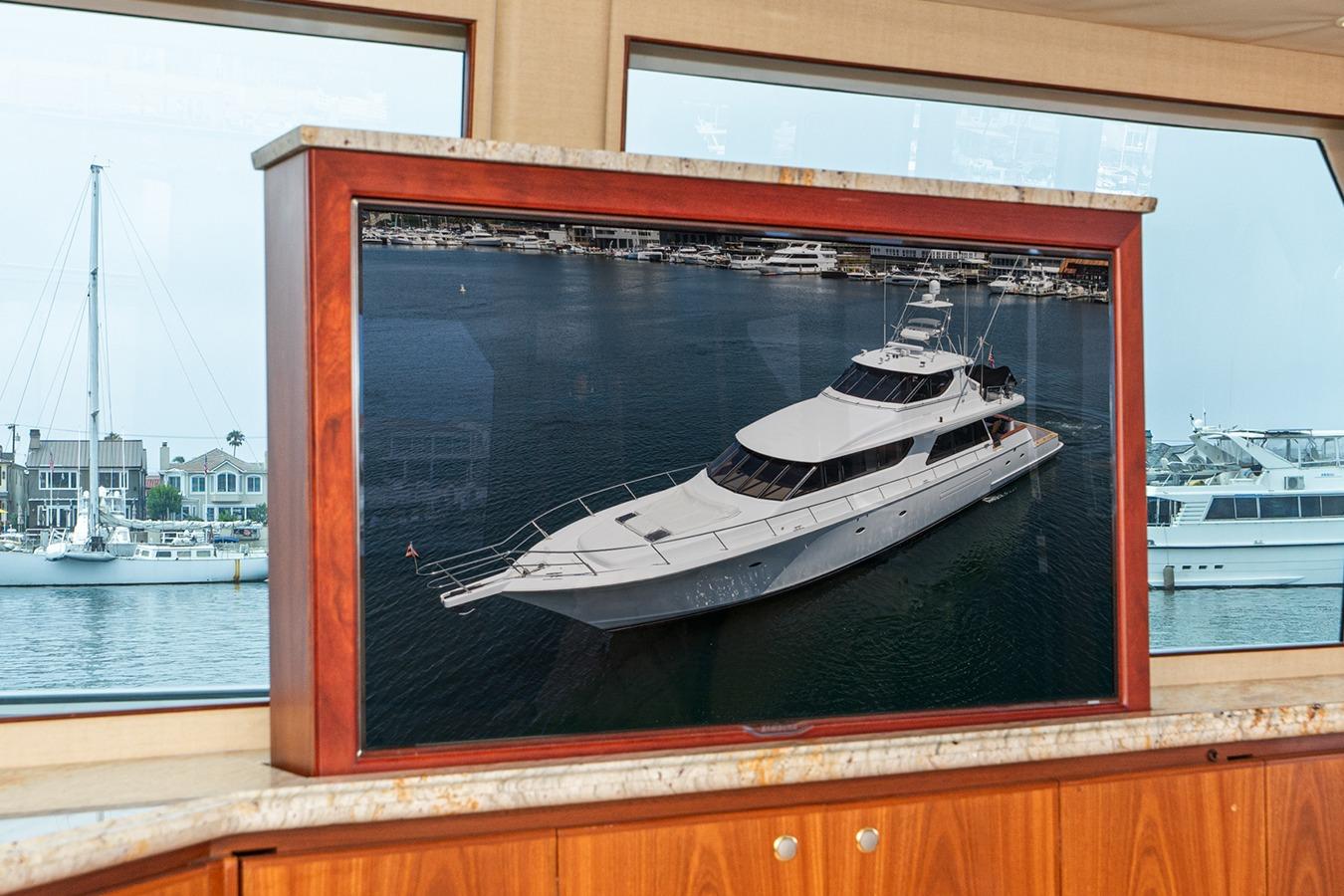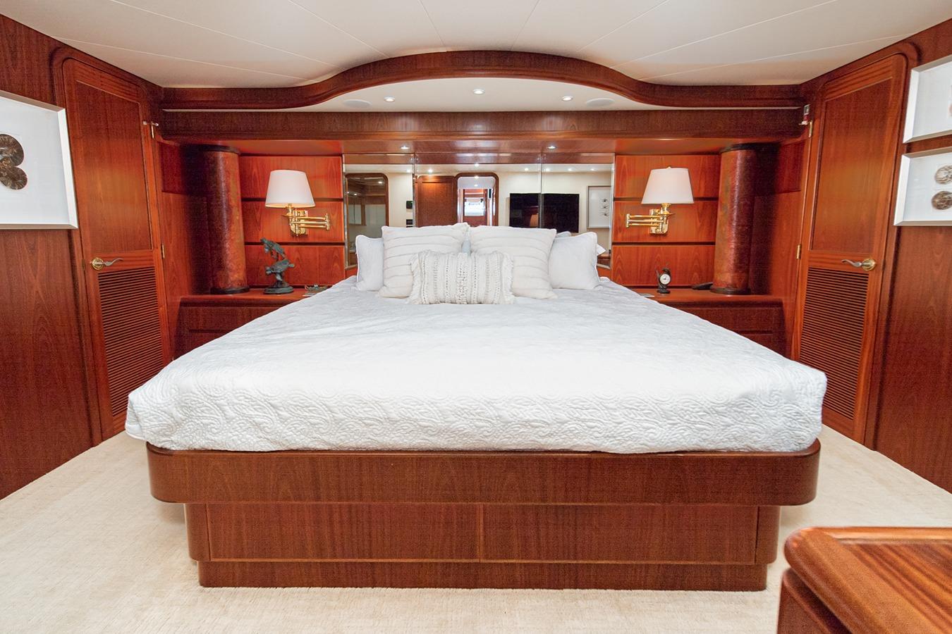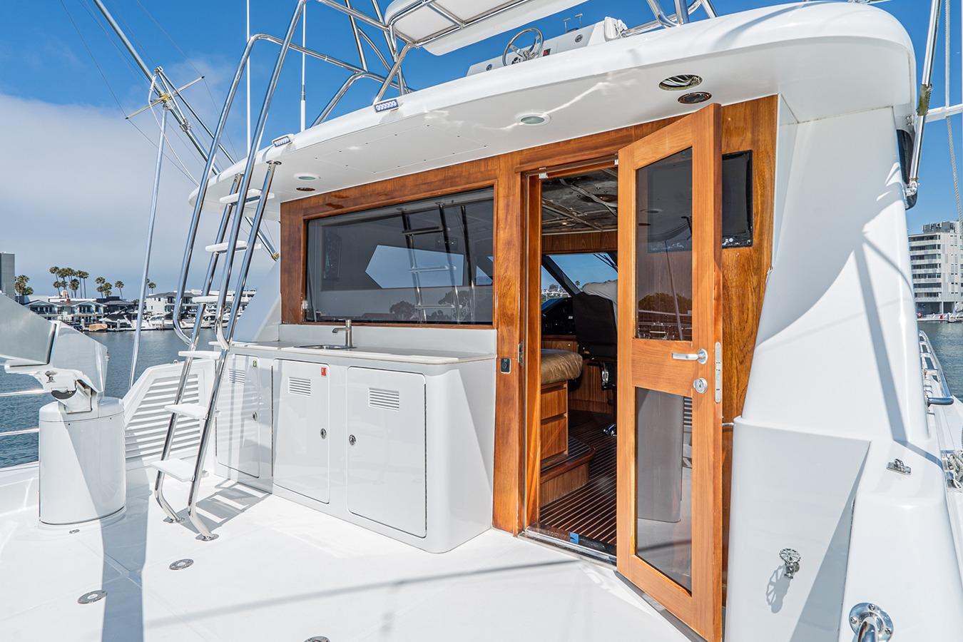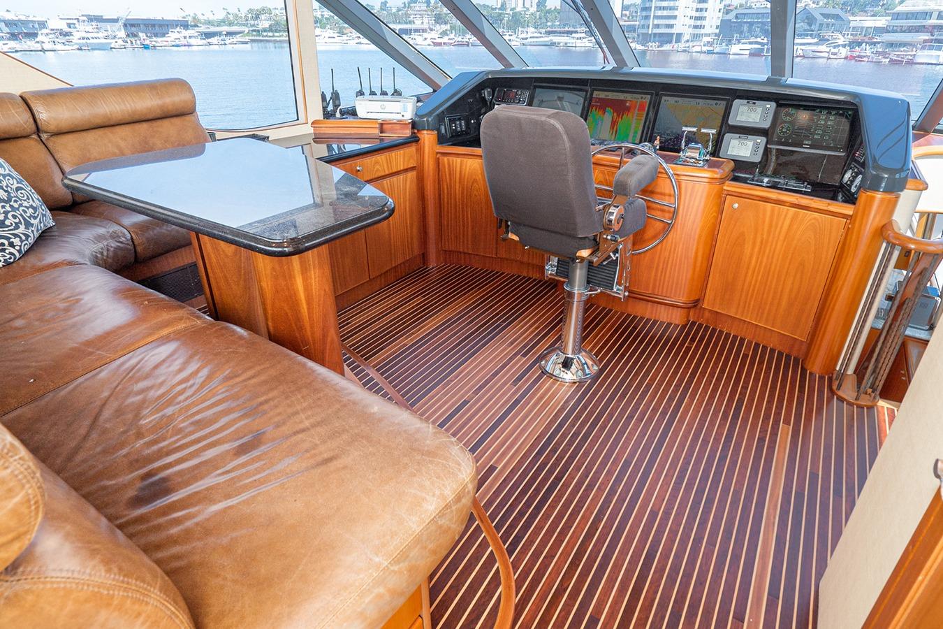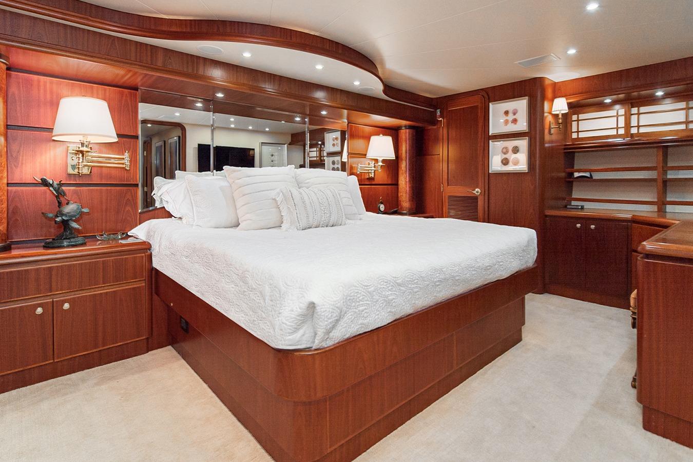 Внутри расположена салон-гостиная на двух уровнях с полуформальной обеденной зоной и кухней в стиле country kitchen с панорамным обзором на 180°. На нижней палубе находится мастер-каюта во всю ширину корпуса, а также гостевые каюты, каждая с собственным санузлом и душем. Эта яхта — результат 22 лет качественного обслуживания и заботы: судно, созданное не по шаблону, а для многоцелевого использования — от приёма гостей до частного владения и рыбалки. Подходит как для маршрутов от Аляски до Мексики на Западном побережье, так и для круизов от Багам до Тысячи островов на Восточном побережье.