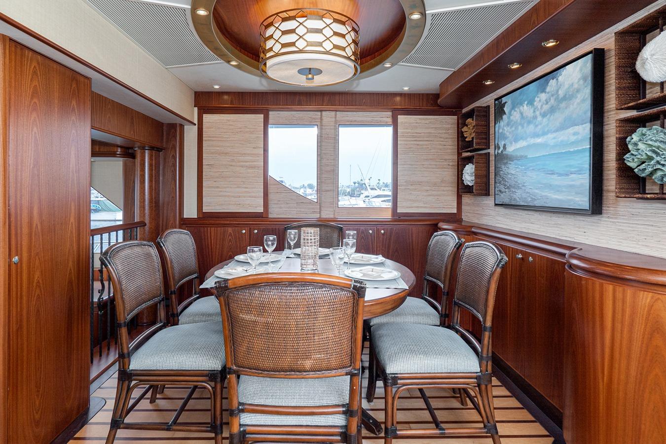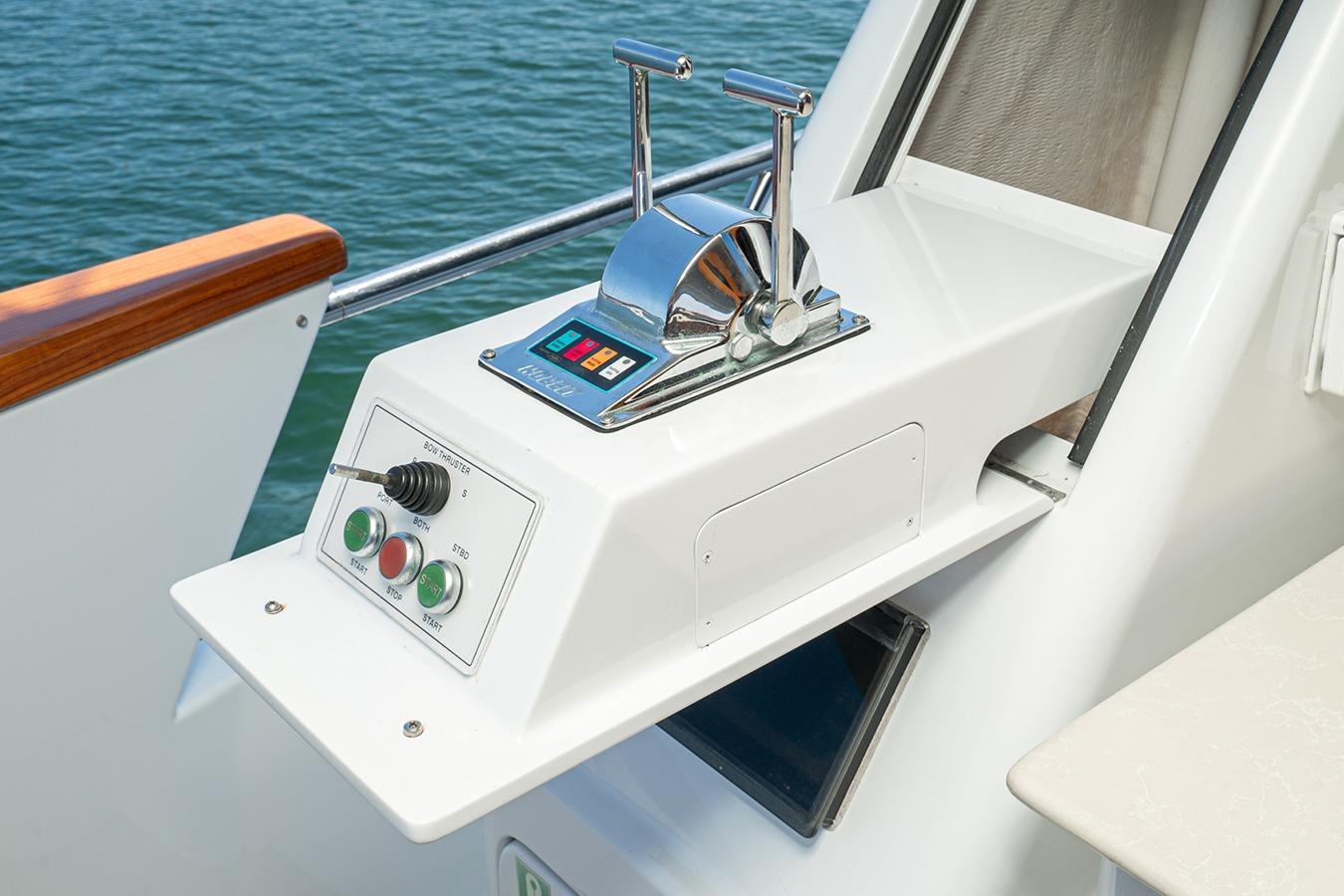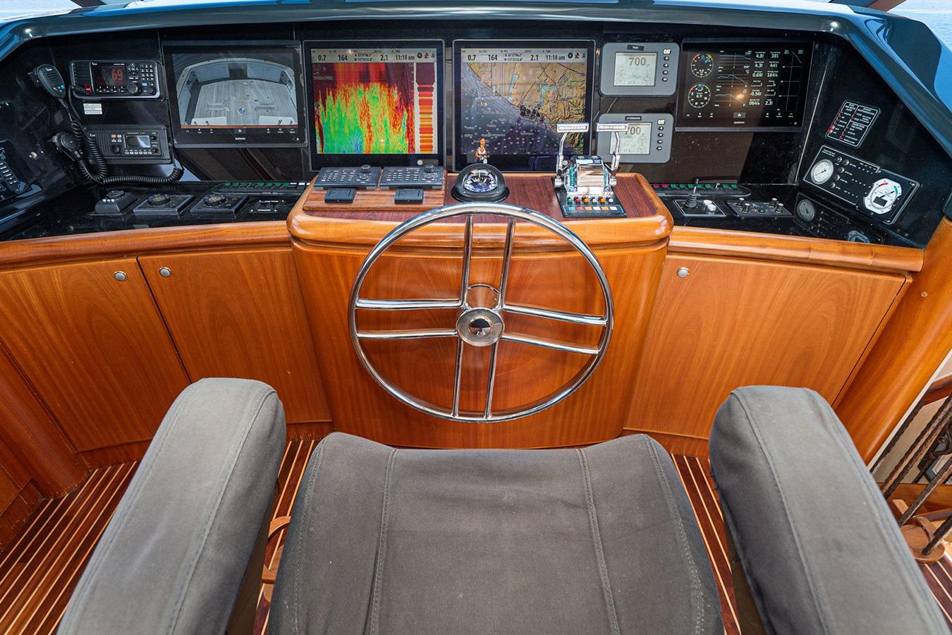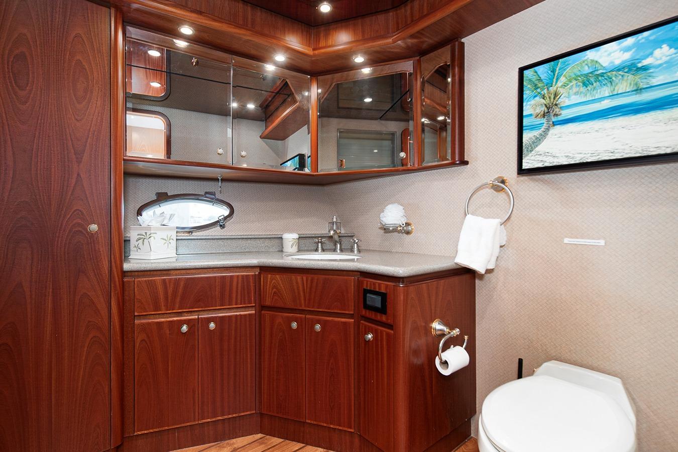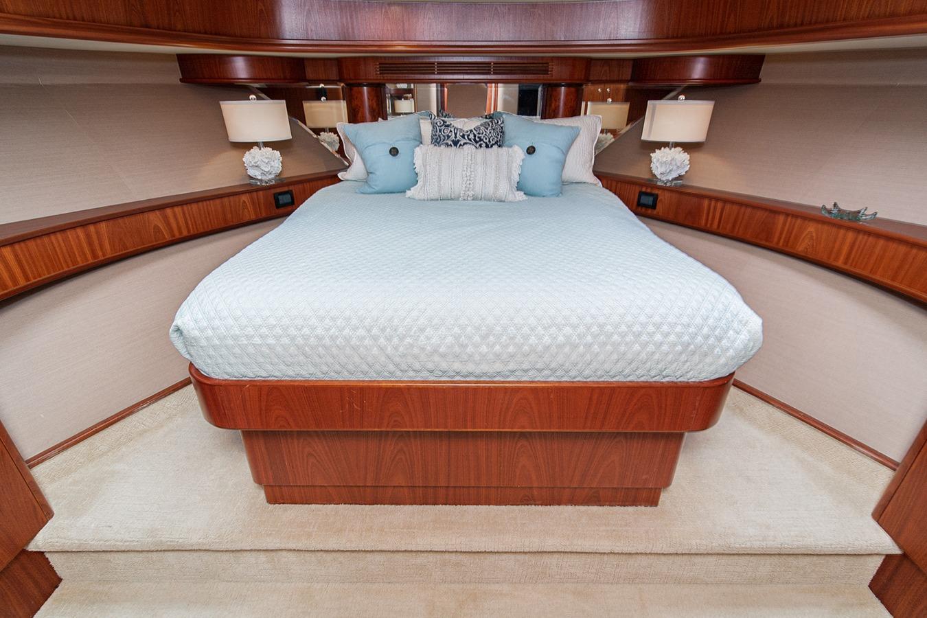 Внутри расположена салон-гостиная на двух уровнях с полуформальной обеденной зоной и кухней в стиле country kitchen с панорамным обзором на 180°. На нижней палубе находится мастер-каюта во всю ширину корпуса, а также гостевые каюты, каждая с собственным санузлом и душем. Эта яхта — результат 22 лет качественного обслуживания и заботы: судно, созданное не по шаблону, а для многоцелевого использования — от приёма гостей до частного владения и рыбалки. Подходит как для маршрутов от Аляски до Мексики на Западном побережье, так и для круизов от Багам до Тысячи островов на Восточном побережье.