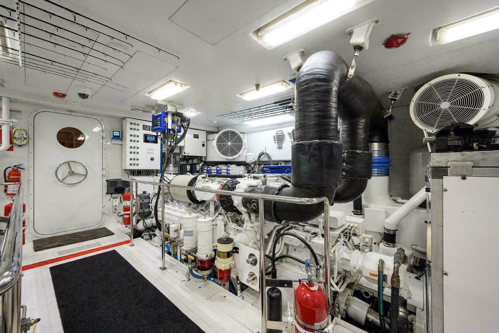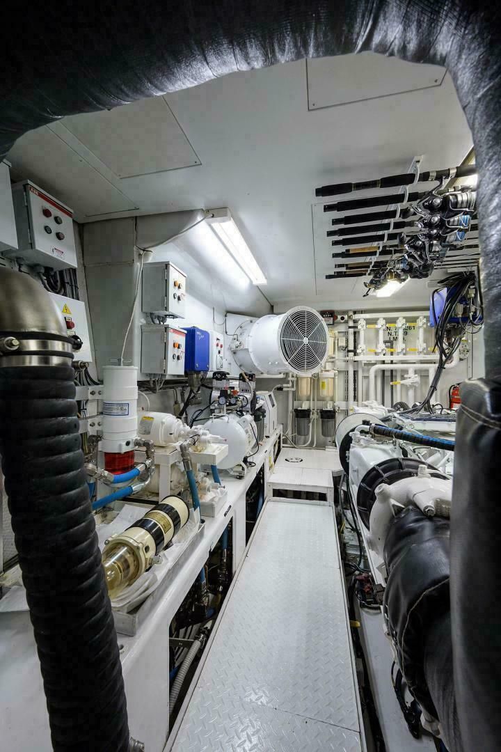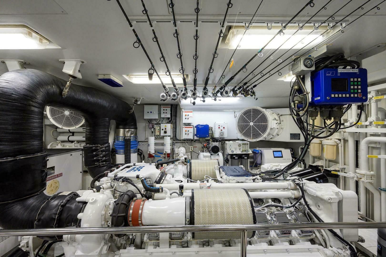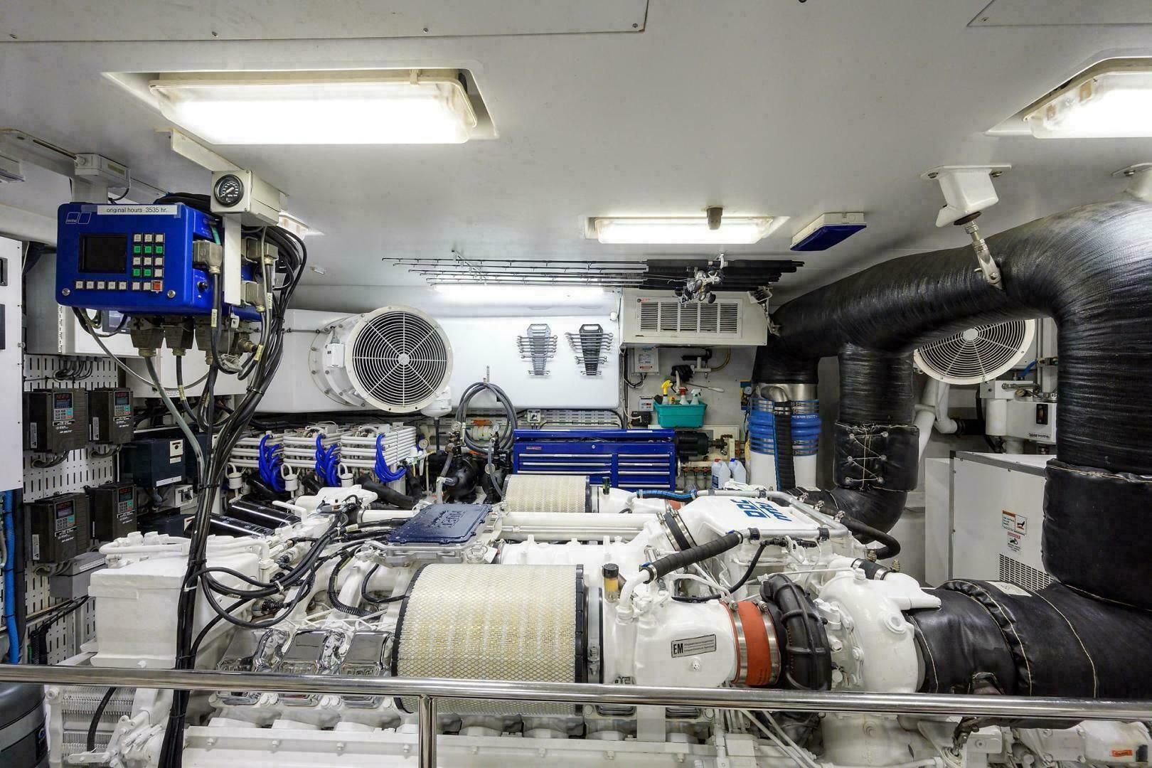 - 2 главных двигателя MTU 16V2000 M91 по 2000 л.с. с электронным управлением MDEC, системой MTU CAN-bus и локальными панелями LOP в МО. Всего 3 поста управления: рубка, кормовая часть флайбриджа и тауэр