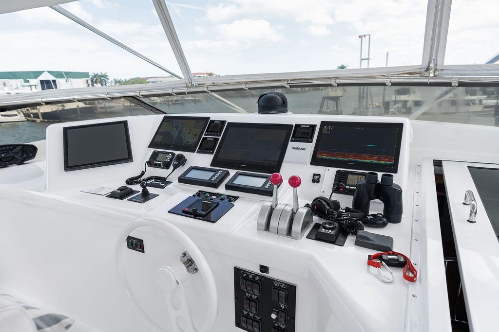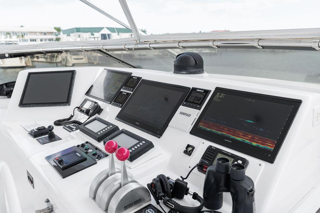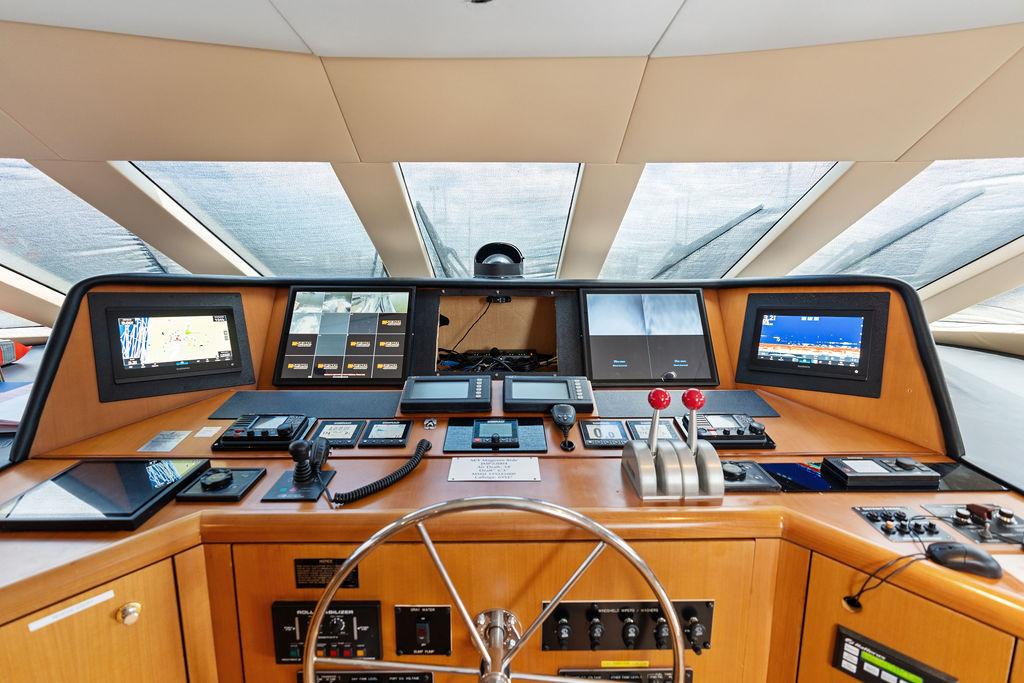 В рулевой рубке расположены Г-образный диван со столом, рабочий стол/навигационный столик, лестница в правый бортовой проход и ступени, ведущие на флайбридж. Флайбридж оснащён однорычажным электронным управлением двигателями, носовым подруливающим устройством мощностью 60 л.с. (16 дюймов), центральным пультом управления со всеми переключателями и подсвечиваемыми приборами с регулировкой яркости.