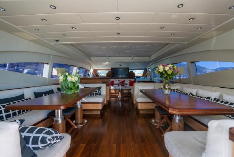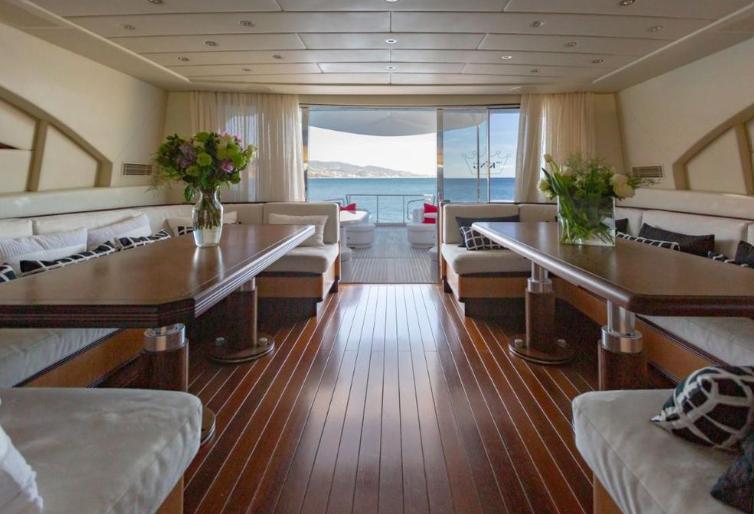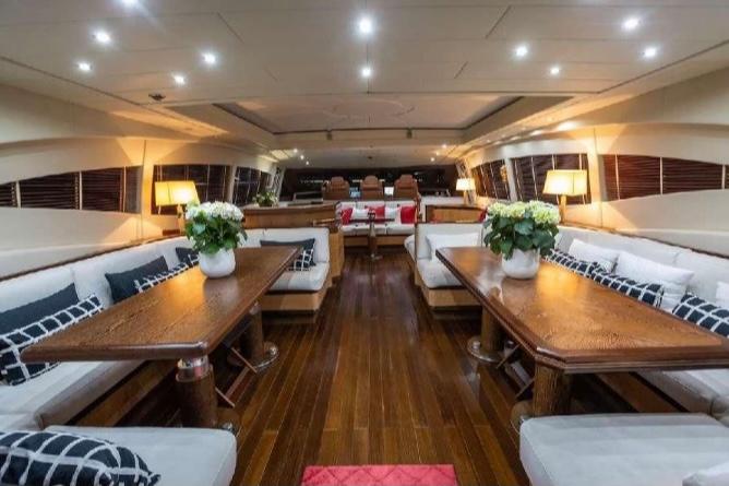 После масштабного рефита яхта получила элегантную и вневременную отделку. Интерьеры оформлены с использованием роскошных мягких материалов, которые идеально дополняют белый декор и белый корпус.