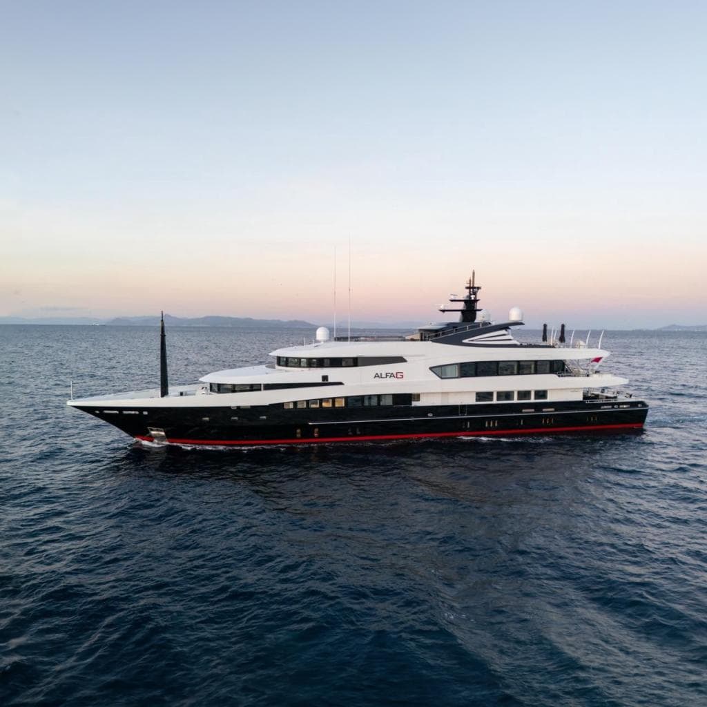 Роскошная суперъяхта с комфортом размещает до 12 гостей в шести элегантно оформленных каютах, а экипаж из 18 человек обеспечивает безупречный сервис и спокойное плавание. Alfa G построена по классу LLOYD'S • 100A1, SSC YACHT MONO G6 и соответствует требованиям MCA; всегда обслуживалась по коммерческим стандартам.