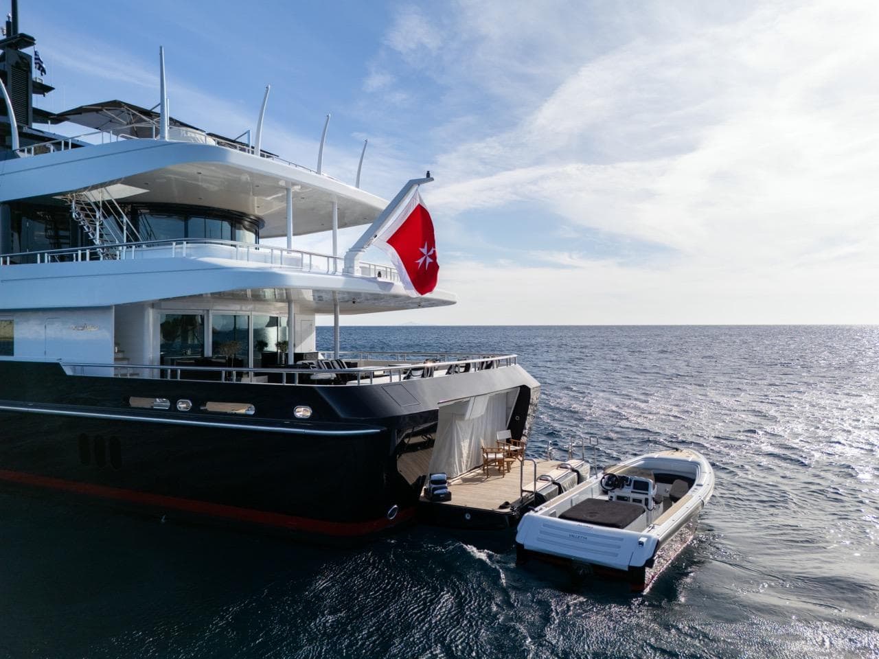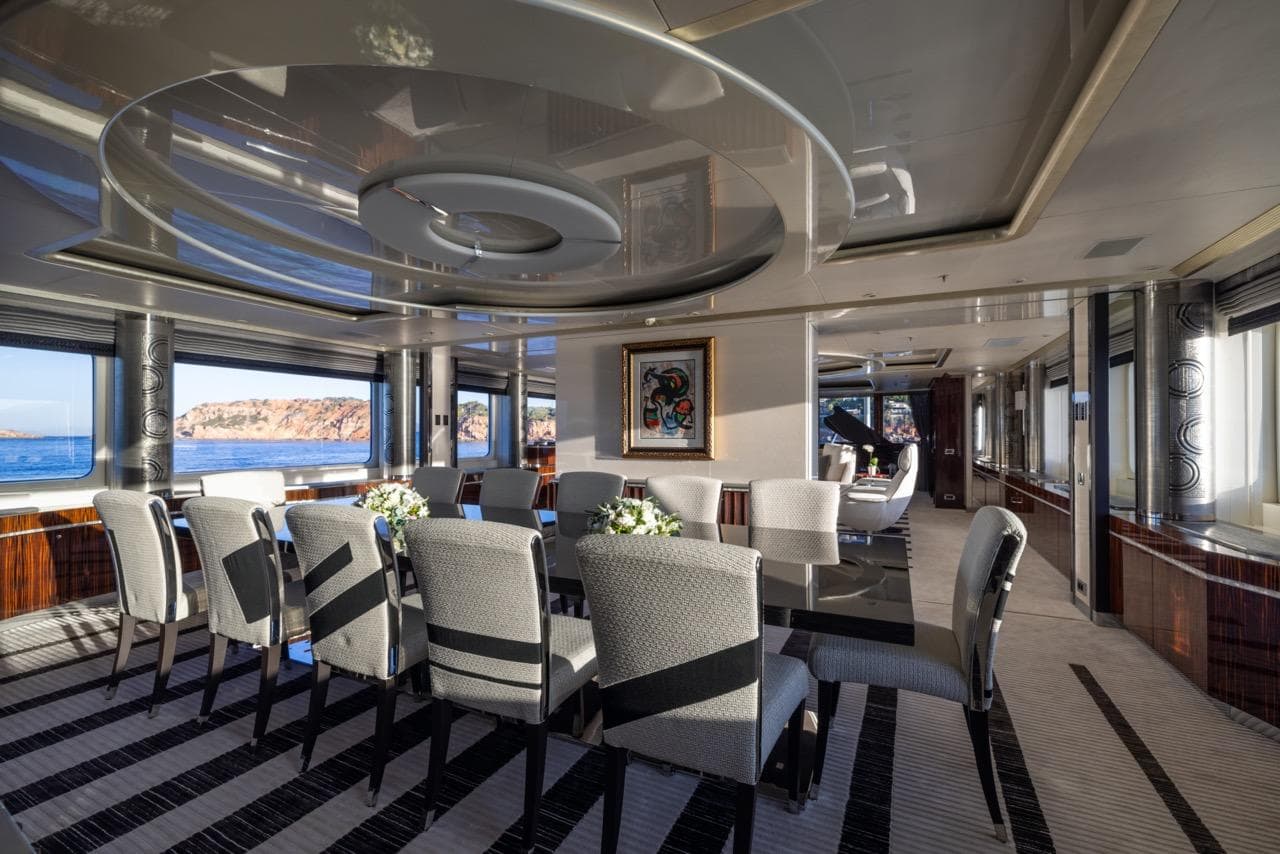 Новая кормовая терраса на сан-деке оснащена регулируемыми обеденными столами, которые можно объединить в один длинный стол или разделить на два — для гибкости в организации ужинов. Здесь же расположены два больших «кокона» с ветрозащитой, а также просторный бар и зона BBQ — идеальный фон для ужинов на открытом воздухе с панорамным видом на океан.