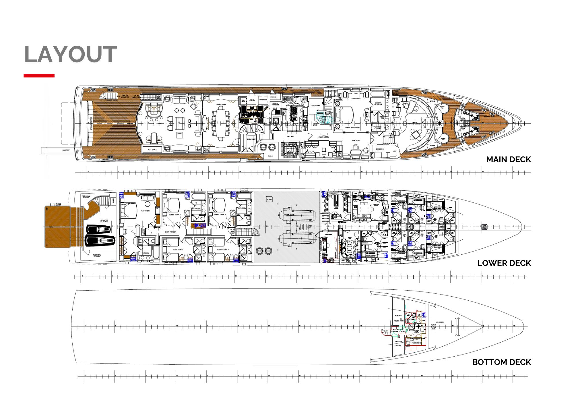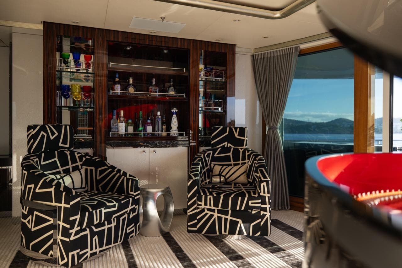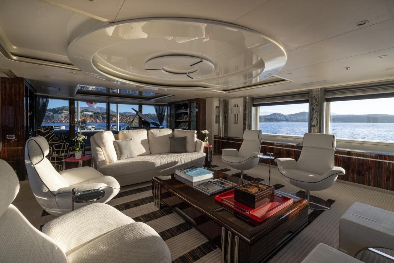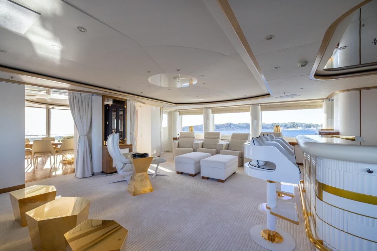 Одна из ключевых особенностей яхты — впечатляющий бассейн на сан-деке. Он оснащён современной системой противотока для тренировок и функцией джакузи. Вокруг бассейна — большая зона для загара, идеальная для отдыха или приёма гостей в атмосфере абсолютной роскоши.