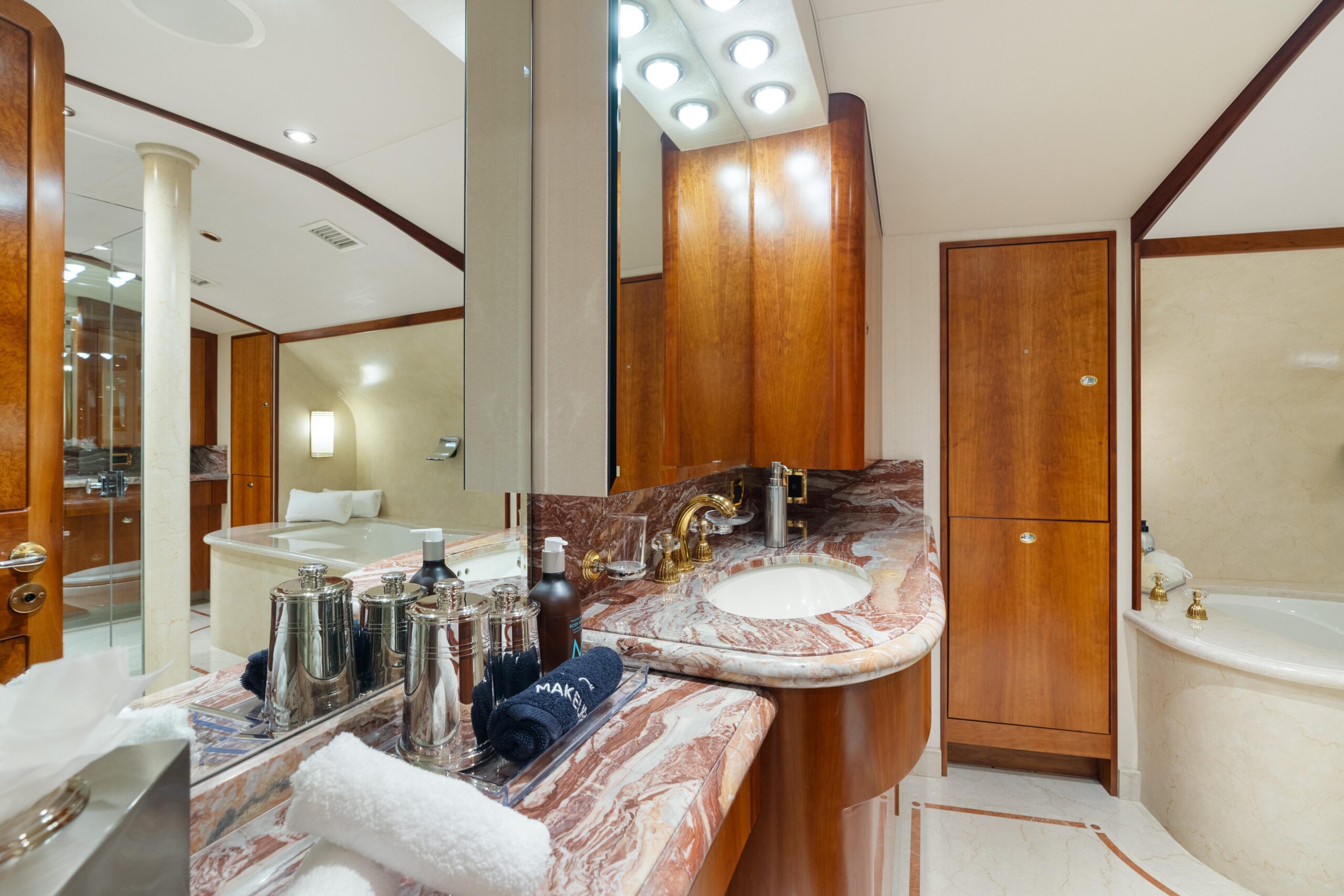 - 2 двигателя MTU/DDC 12V-4000, 2735 л.с.; управление DDEC с 3 станций + синхронизатор; традиционный мокрый выхлоп 10" с байпасом и подводный выхлоп; редукторы Twin Disc 2.5:1 (W5 выполнен FDD @ 8950 ч)