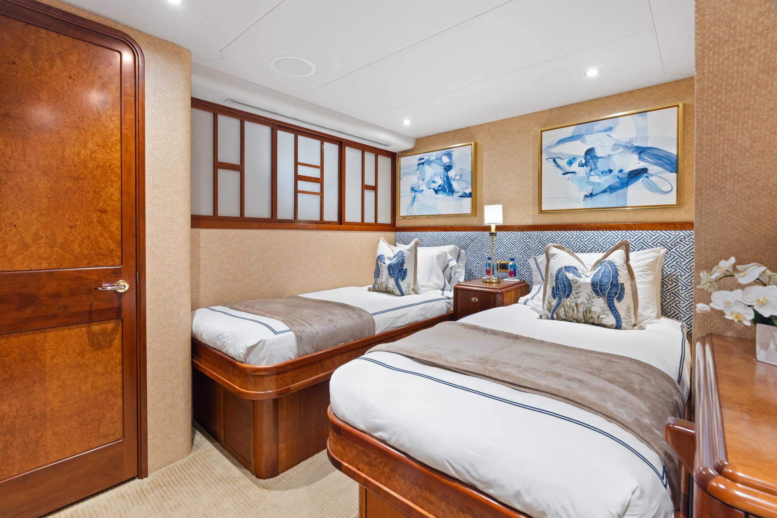 - Полноразмерная кровать (индивидуальное исполнение), носовая часть, левый борт (зона экипажа)