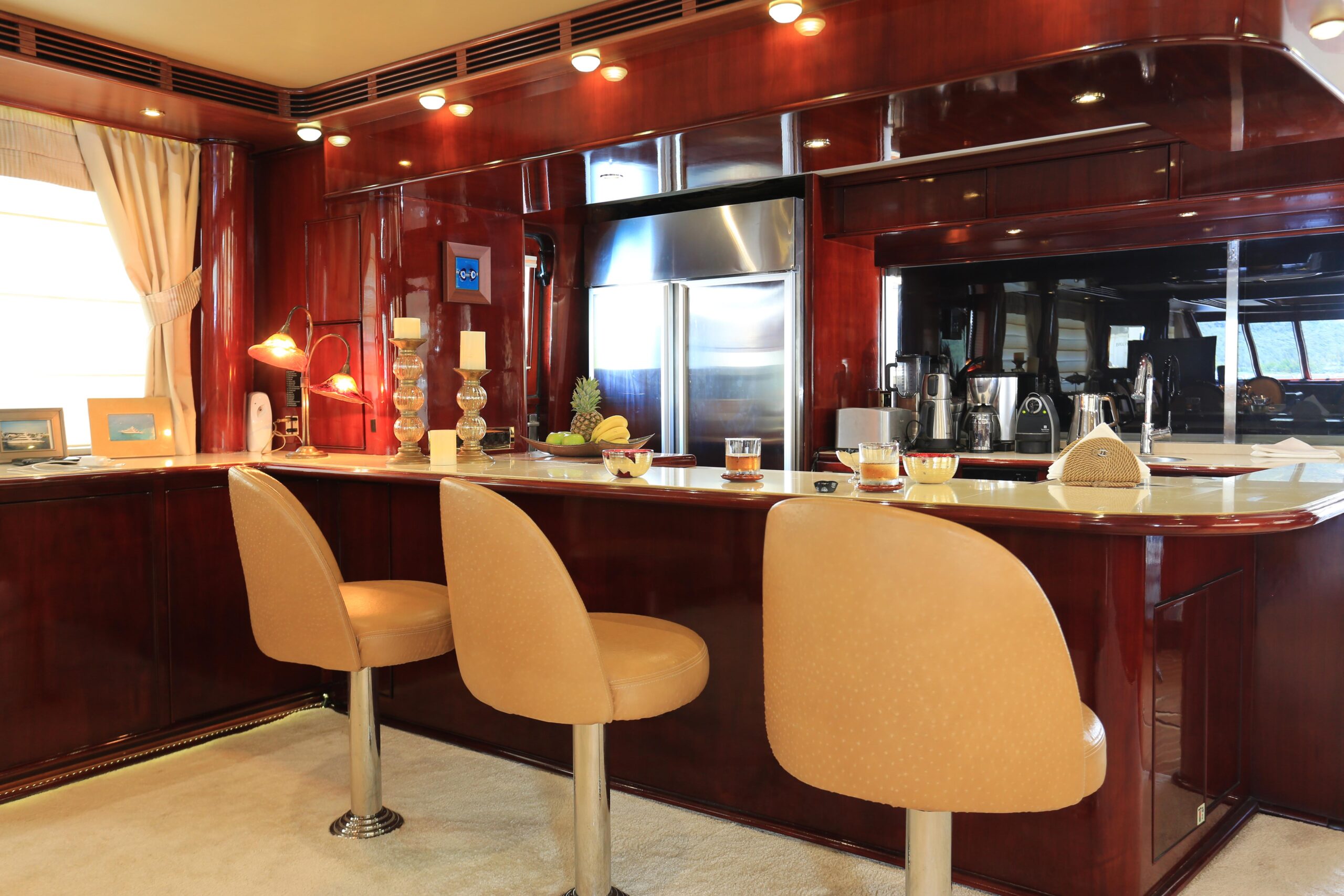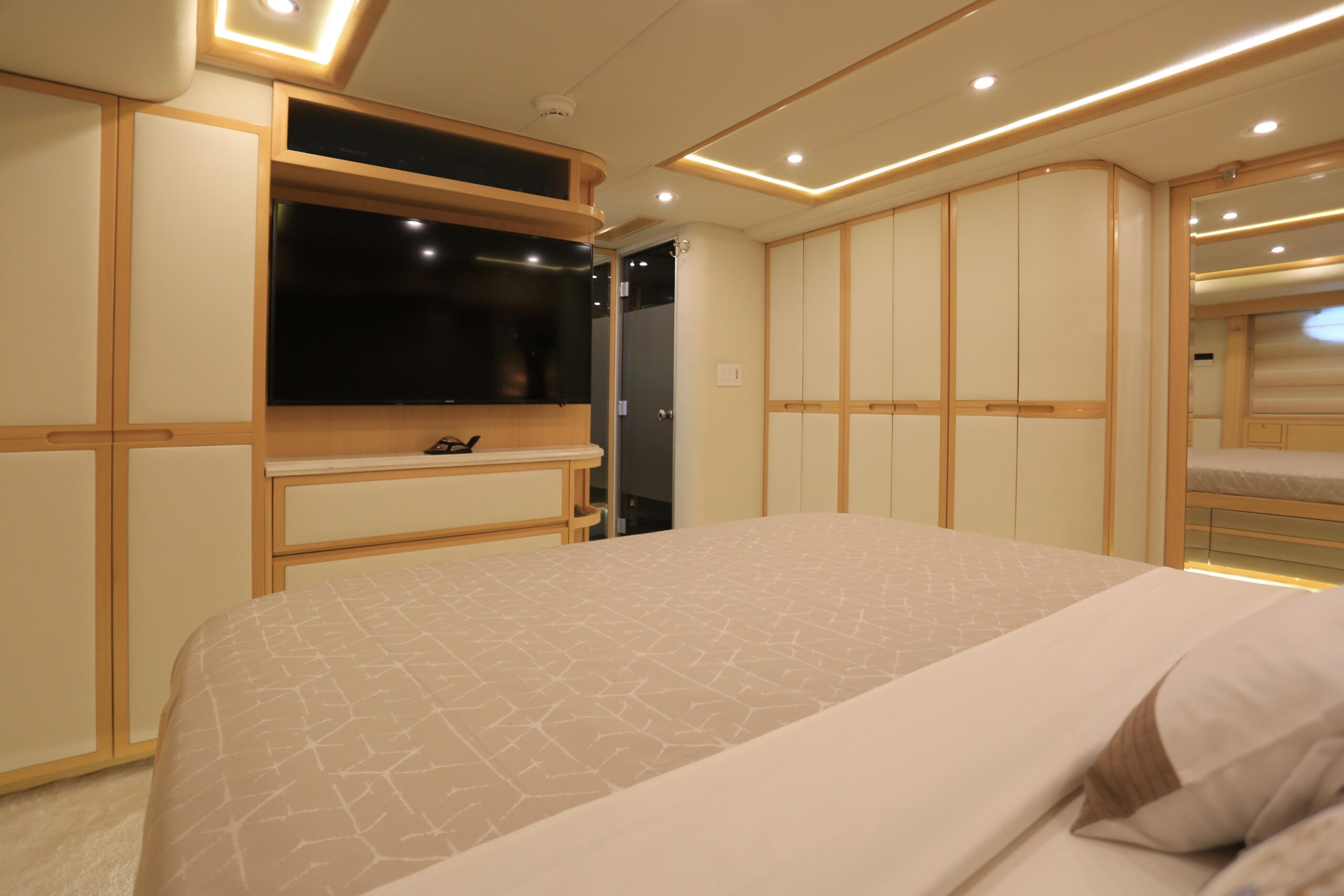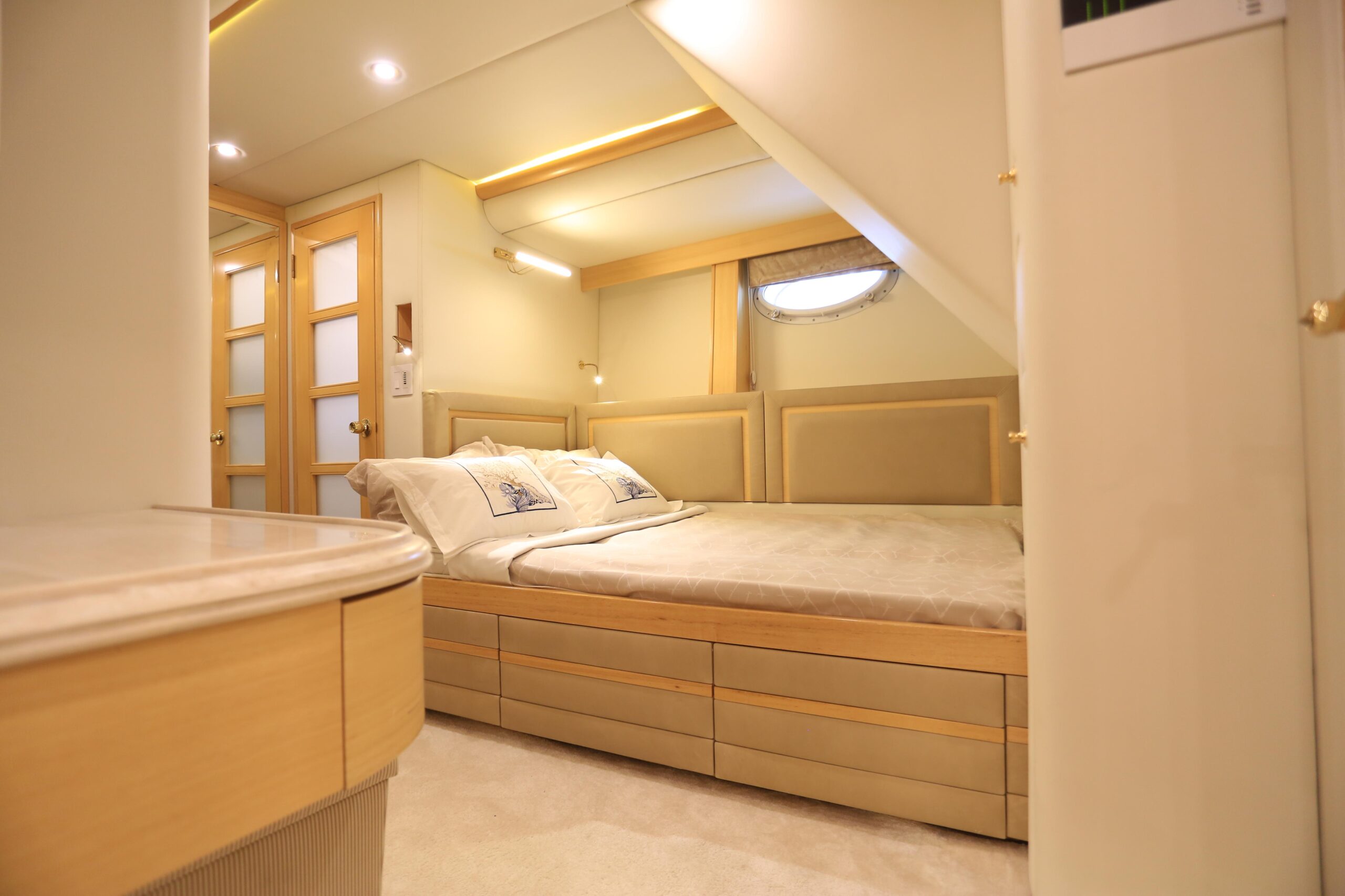 Built in the true spirit of customization, Forty Love was conceived as a 5-deck platform for the complete enjoyment of the outdoors with simplified accessibility. Her wide aft section offers a stunning beach club while the salon and dining area occupy the entire main deck. The vast party deck provides a further area for entertainment. A genuine and one-of-a-kind yacht, Forty Love is also equipped with a gym, sauna, shaded jacuzzi and a fantastic selection of water toys and tenders. She accommodates up to 12 guests in 5/6 luxurious cabins, all located on the lowerdeck.
