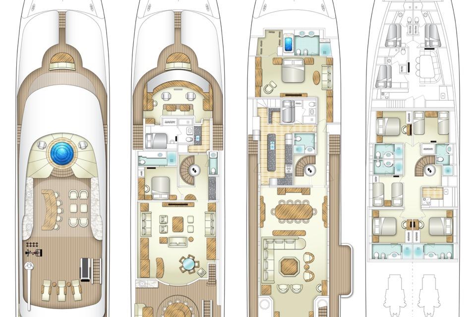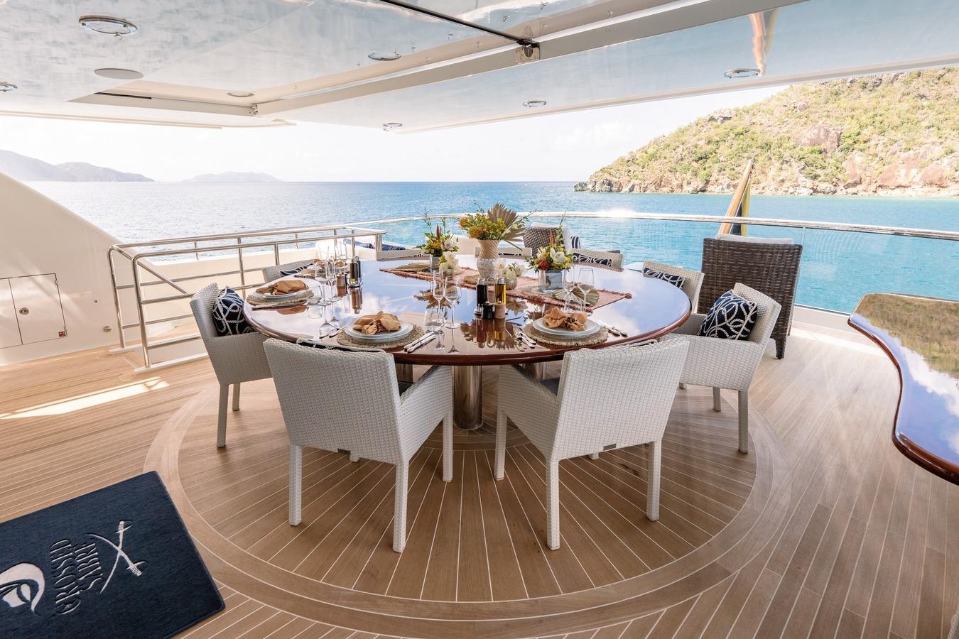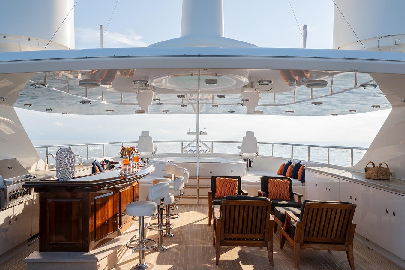 Внешние пространства не менее впечатляющи. Высота подволоков вдоль бортовых проходов составляет 8 футов (2,4 м), что создаёт ощущение яхты длиной 197 футов (60 м) и обеспечивает обширные зоны для отдыха, обедов на свежем воздухе и приёма гостей. Множество общественных зон, солнечные палубы и откидной балкон на главной палубе позволяют наслаждаться солнцем, морем и свежим бризом с максимальным комфортом и стилем.
