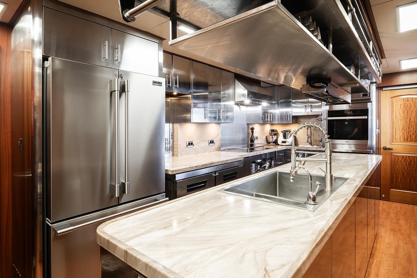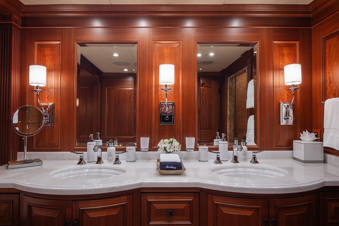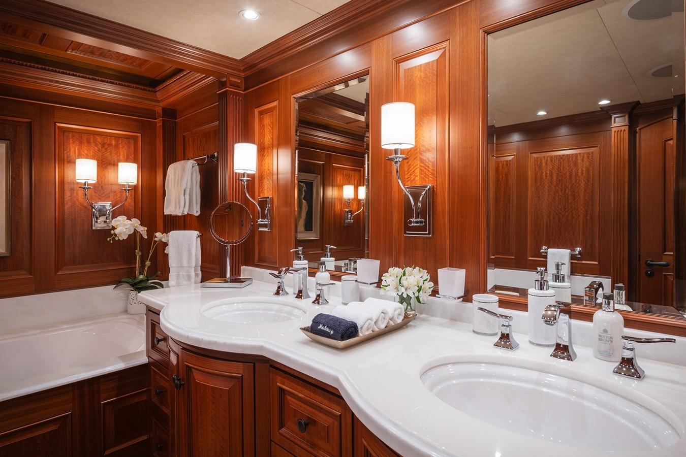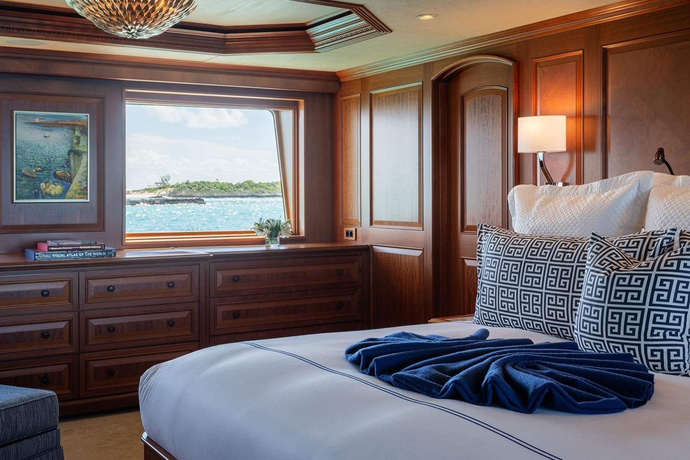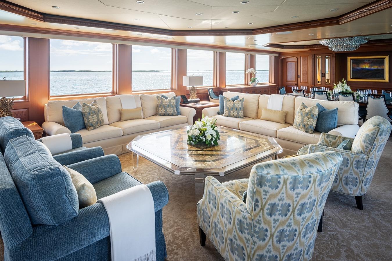 Интерьеры представляют собой образец элегантности и функциональности. Просторные салоны, уютные обеденные зоны и роскошные каюты спланированы так, чтобы максимально использовать естественное освещение и ощущение простора, создавая впечатление яхты значительно большего размера, чем её длина 144 фута (43 м). Высококачественные материалы отделки, индивидуальный декор и продуманная планировка формируют тёплую и гостеприимную атмосферу, сохраняя при этом уровень изысканности, ожидаемый от яхты такого класса.