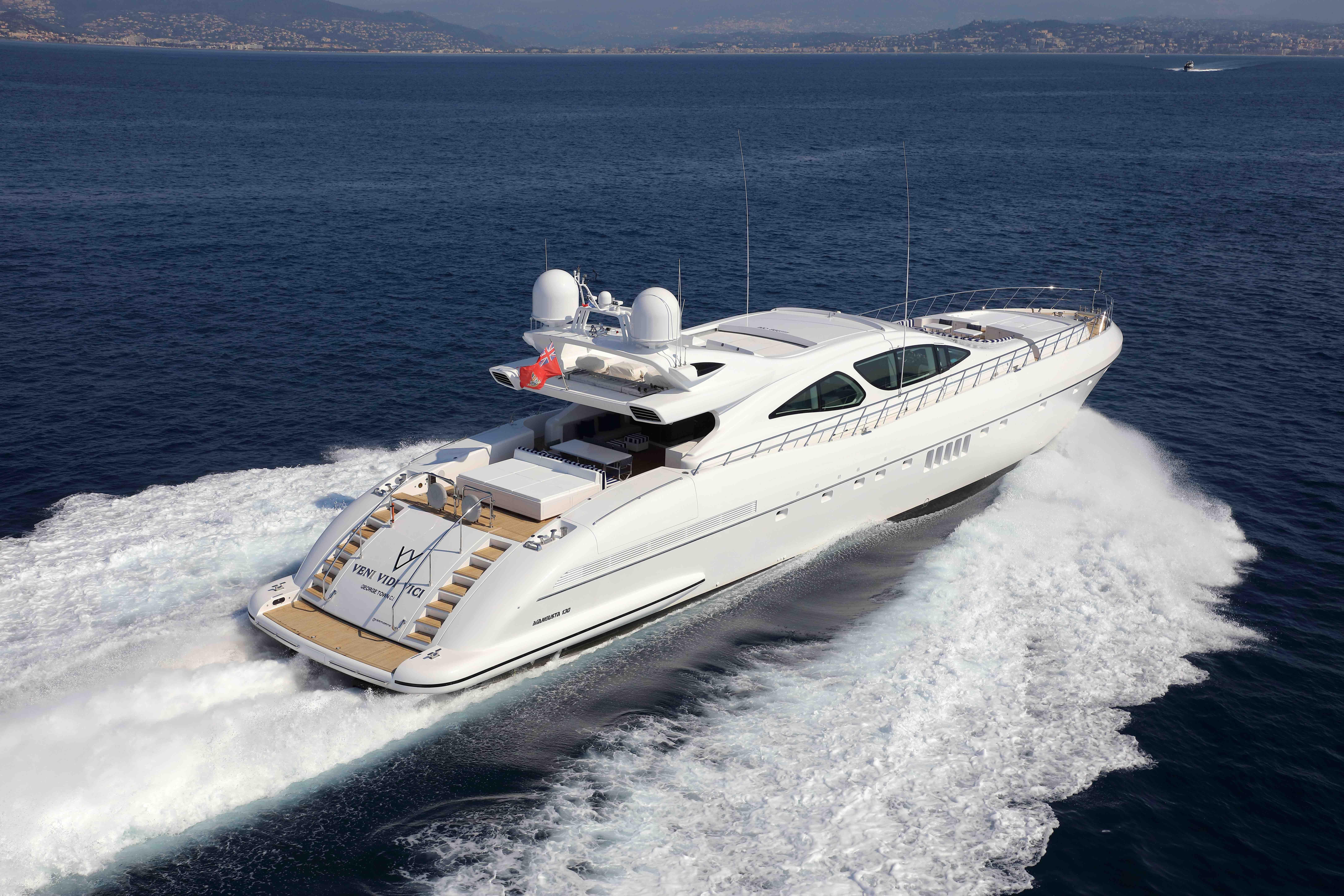 Элегантная и спортивная 130-футовая (39,62 м) VENI VIDI VICI привлекает внимание повсюду, где бы она ни появилась. Эта скоростная яхта была спущена на воду в 2006 году и является отличным примером Mangusta 130’, доступным для покупки сегодня. Яхта регулярно обслуживалась, проходила модернизации и рефит в 2019 году, а также зарекомендовала себя как успешная чартерная платформа.