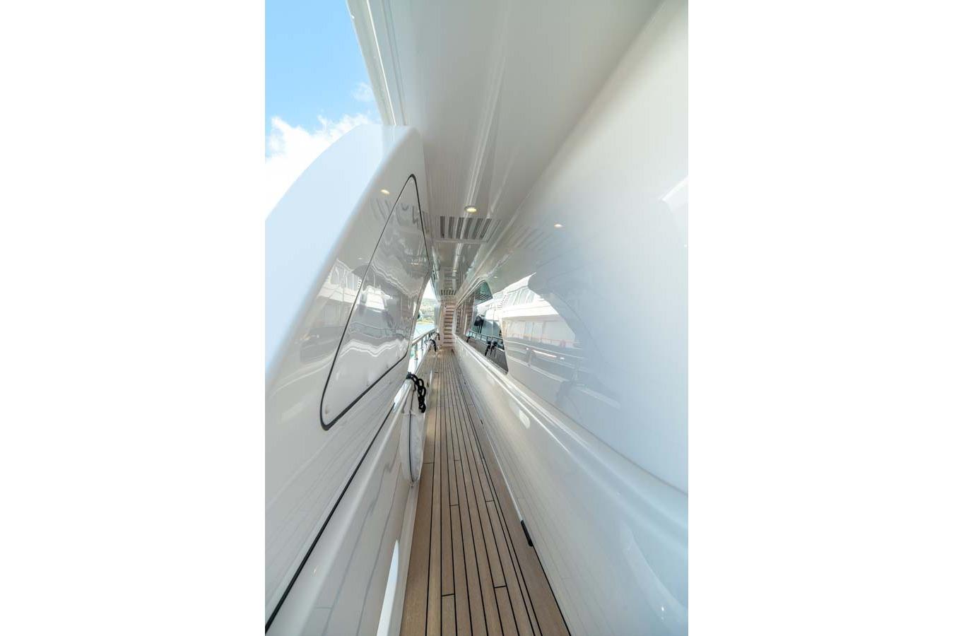 С кормовой палубы лестницы ведут вниз к купальной платформе и beach club, либо вверх — на верхние палубы. Проходные палубы по левому и правому борту ведут к португальскому мостику с сиденьями и выходу на носовую палубу. Левый борт используется экипажем, правый — как частный вход владельца.