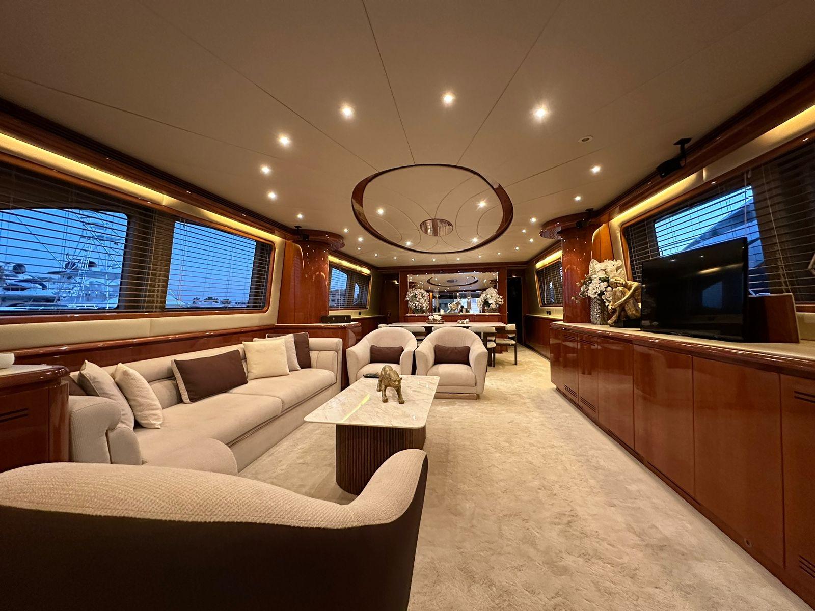 Этот Falcon 102 — изысканная моторная яхта, построенная в 2007 году и прошедшая рефит в 2023 году. При длине 31,50 м (103' 4") это роскошное судно воплощает в себе вневременную элегантность и исключительный дизайн линейки Falcon. Конструкция с приподнятой рулевой рубкой, изящные внешние линии и просторные палубные зоны создают по-настоящему впечатляющий облик.