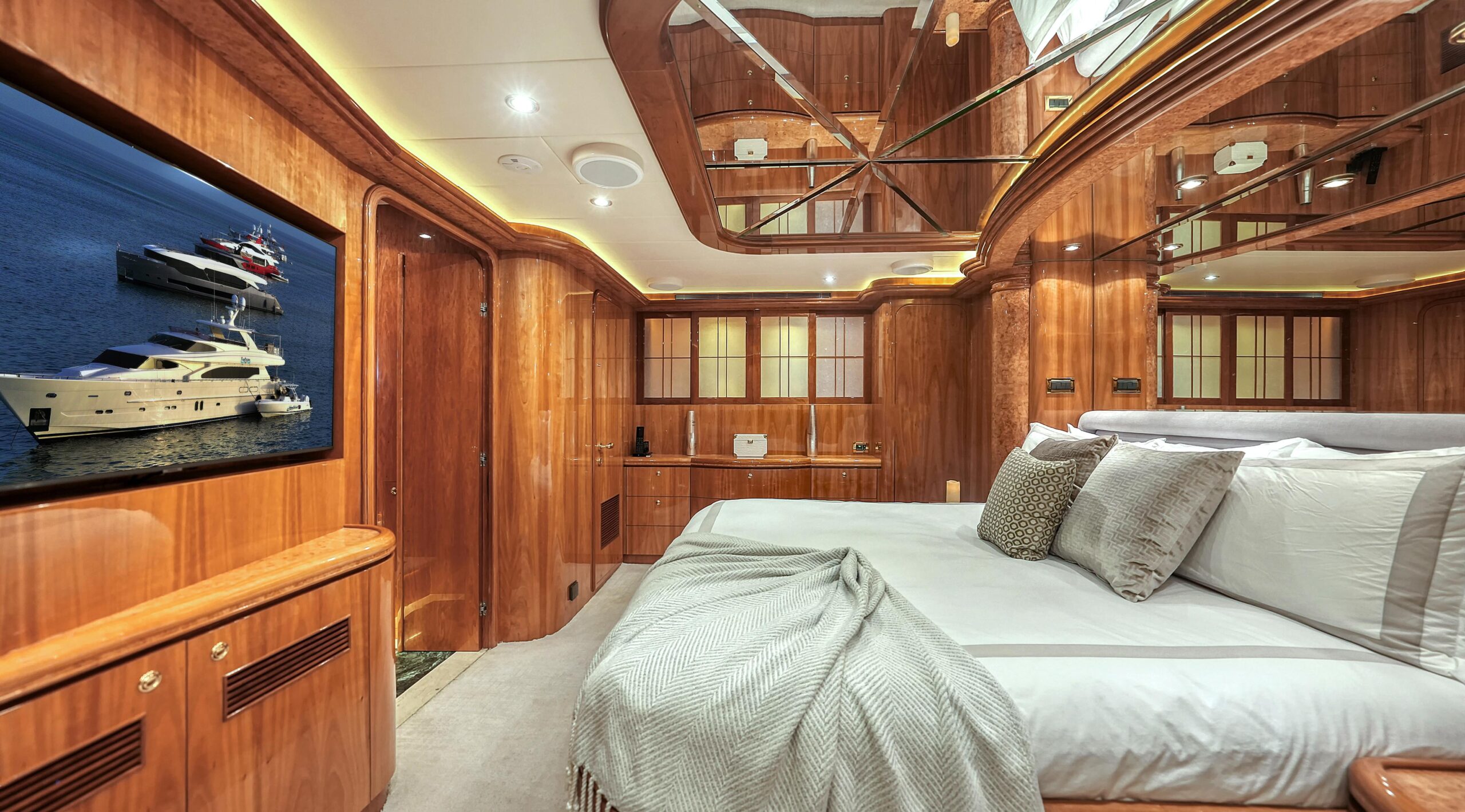 Планировка включает 3 каюты: мастер-каюта во всю ширину корпуса,