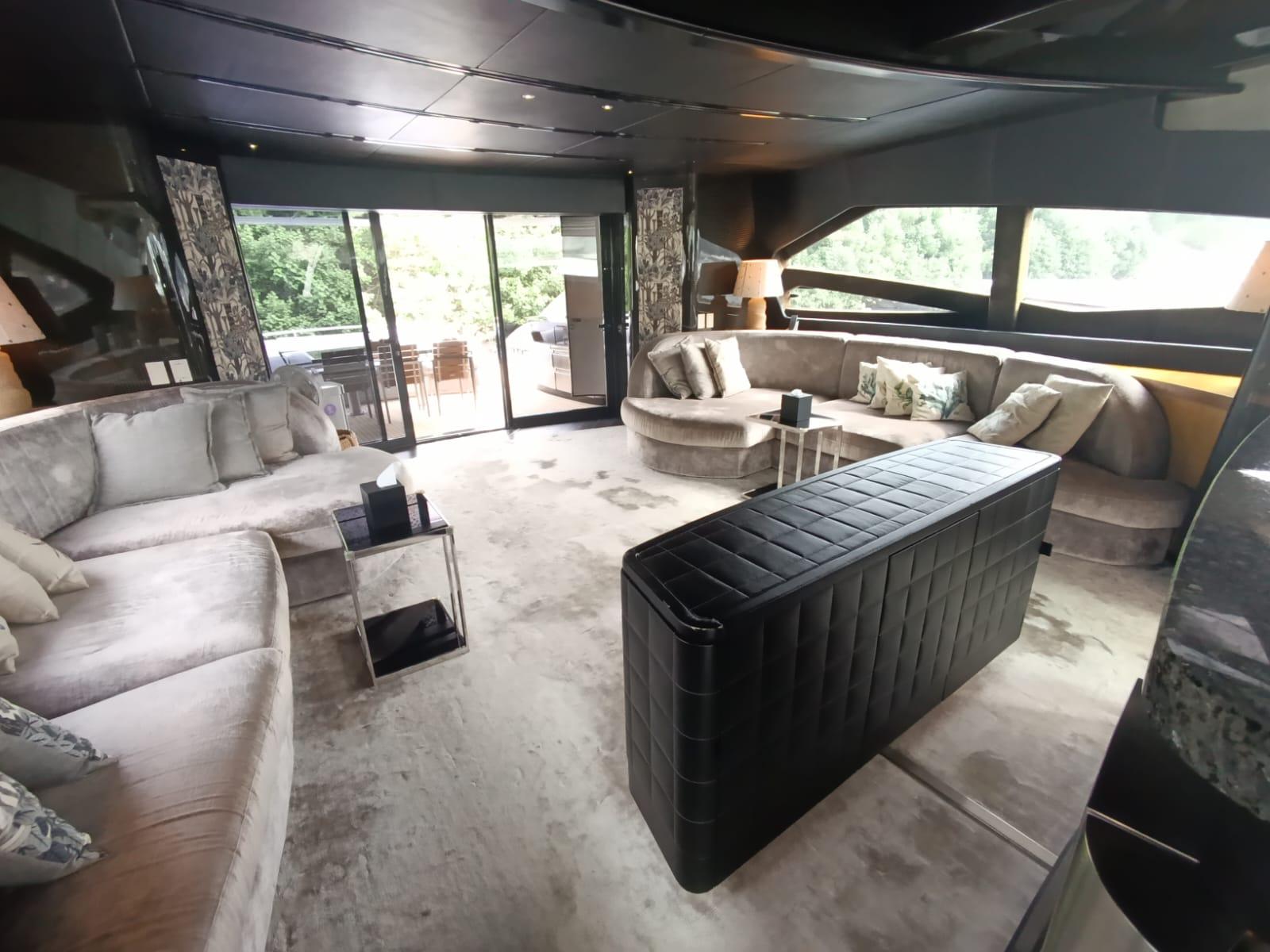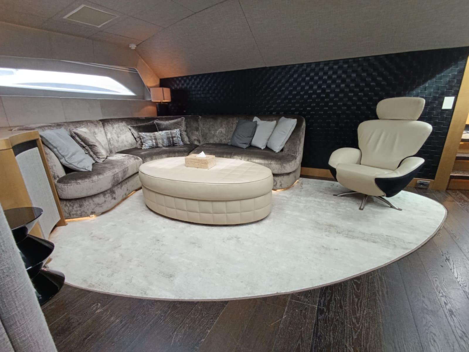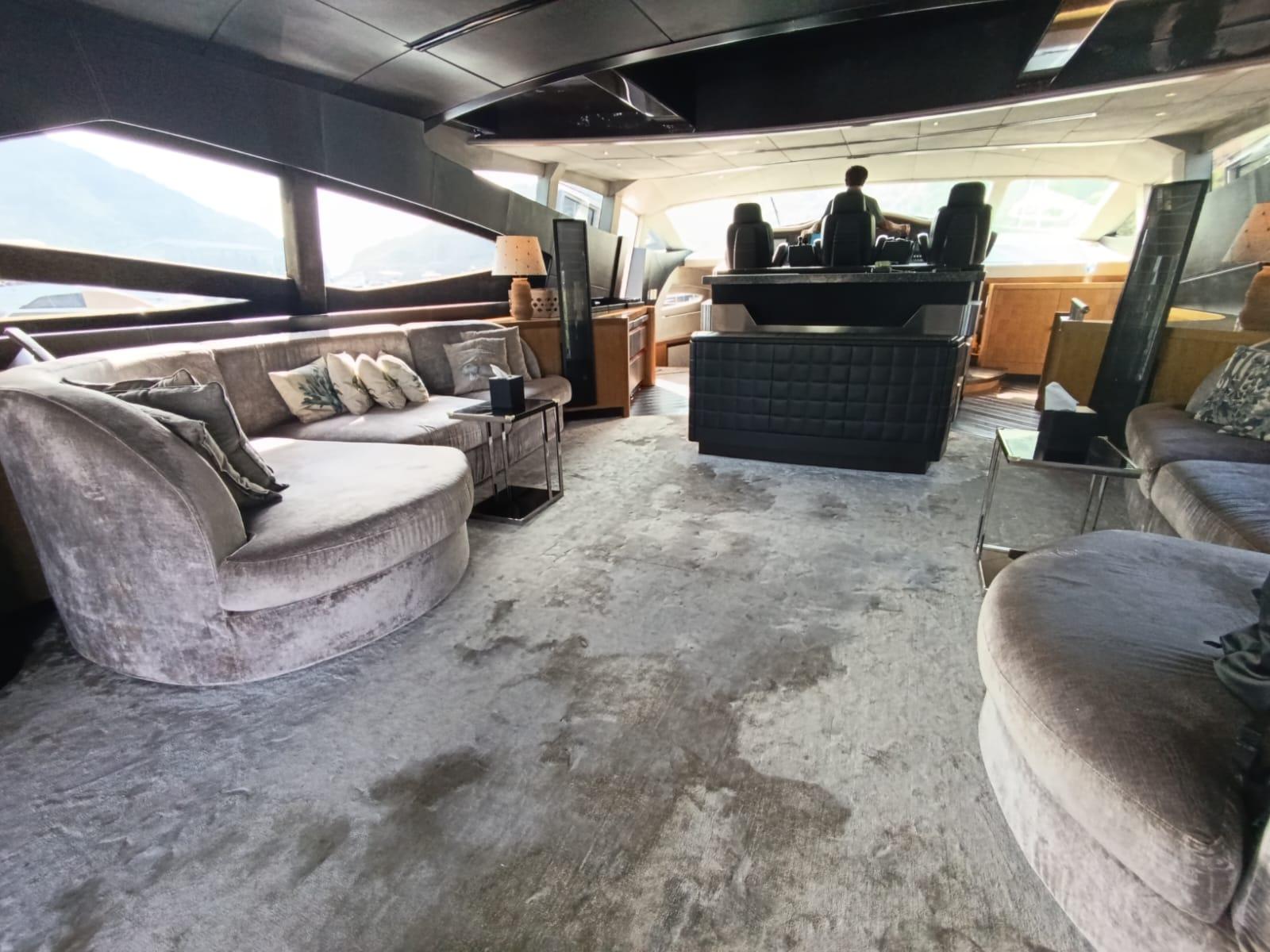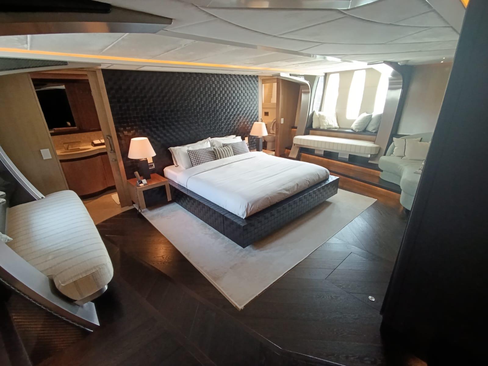 На борту суперяхты GAMMA с комфортом размещаются до 7 гостей, а также предусмотрены каюты для 5 членов экипажа, включая капитана. Корпус и надстройка выполнены из стеклопластика (GRP).