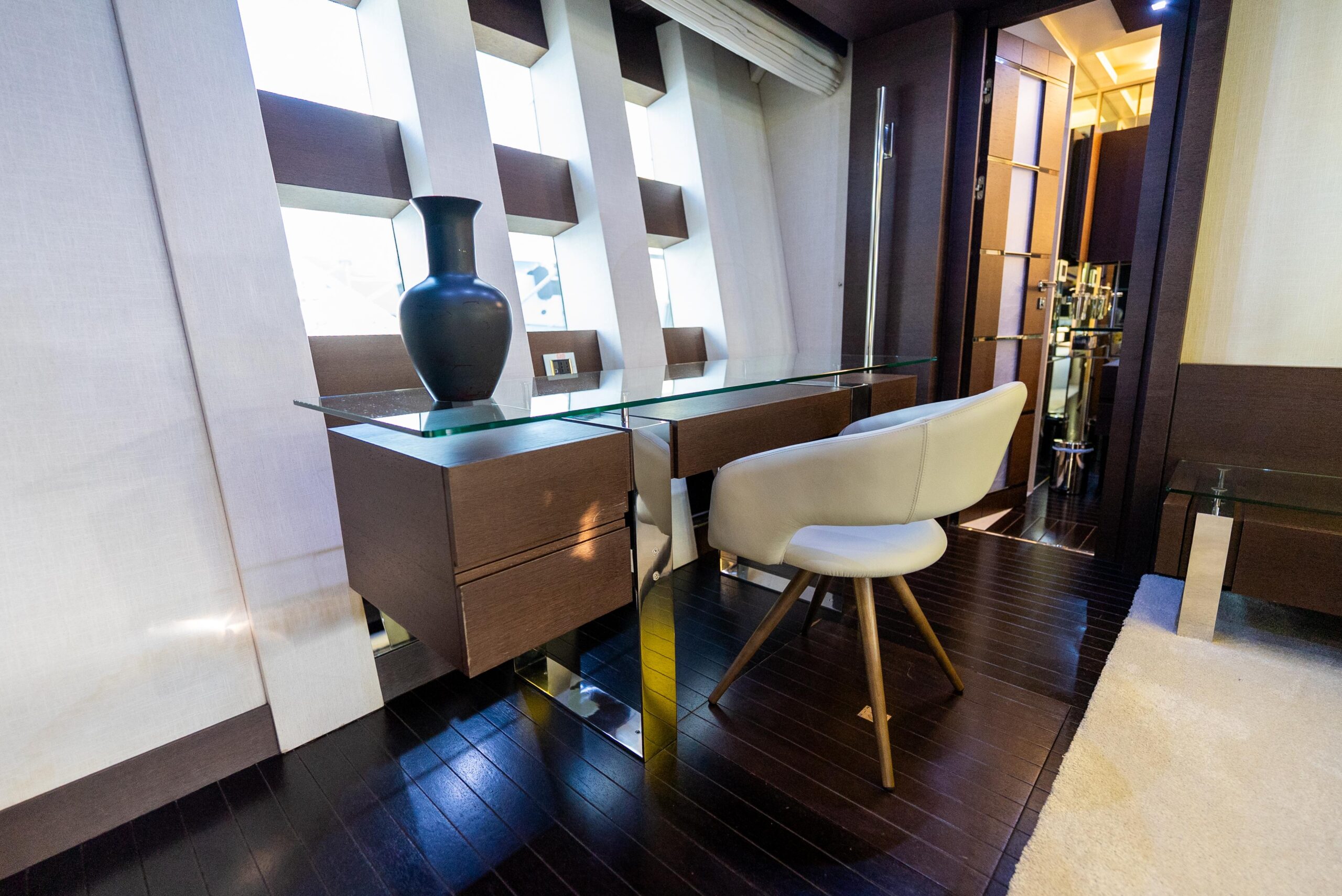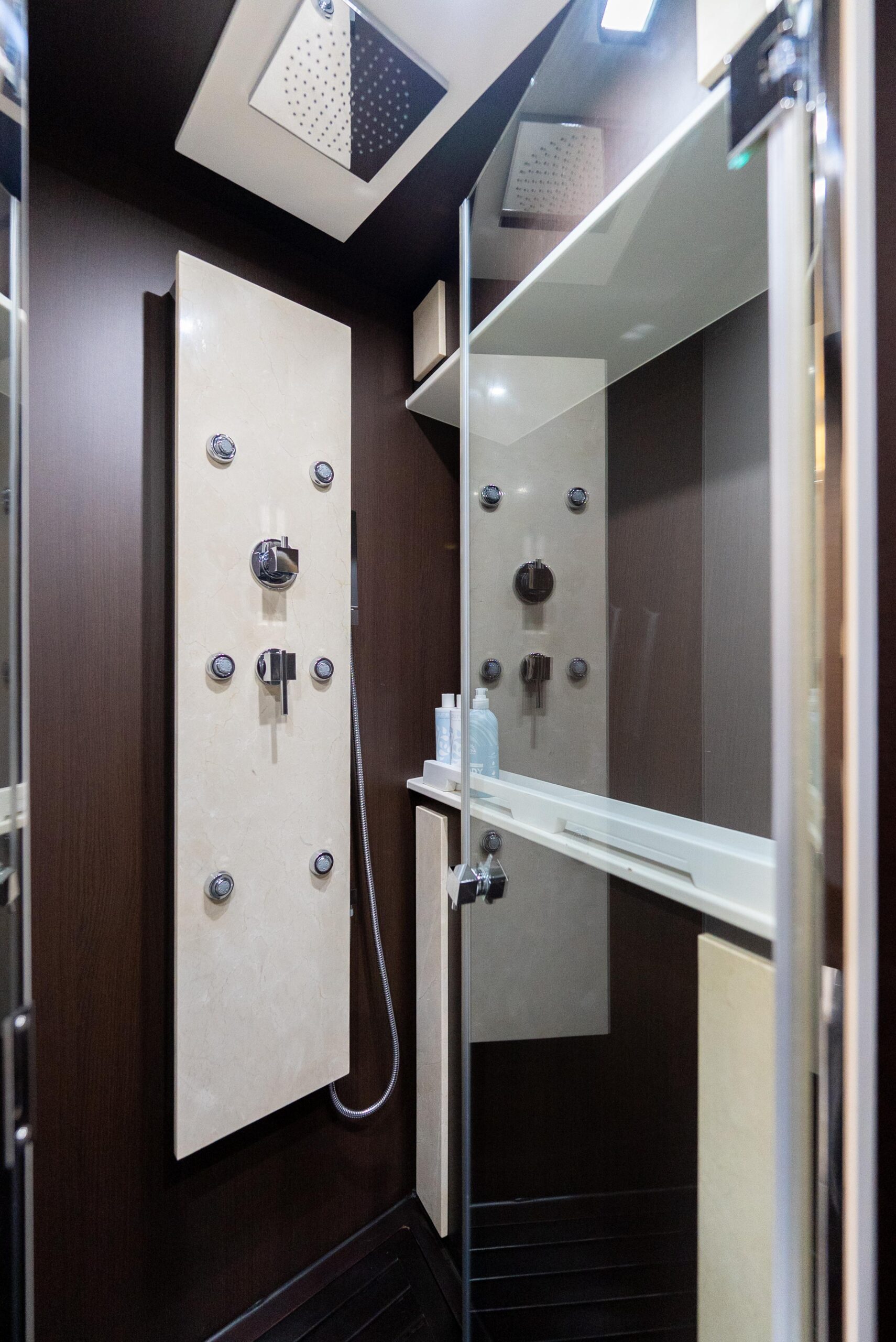 Оснащённая двумя двигателями MTU V16 2000 M93 общей мощностью 4 868 л.с. и водомётной установкой Kamewa, эта яхта демонстрирует захватывающую динамику — максимальная скорость 33 узла и малая осадка всего 1,37 м (4,5 фута), идеально подходящая для стильных круизов.