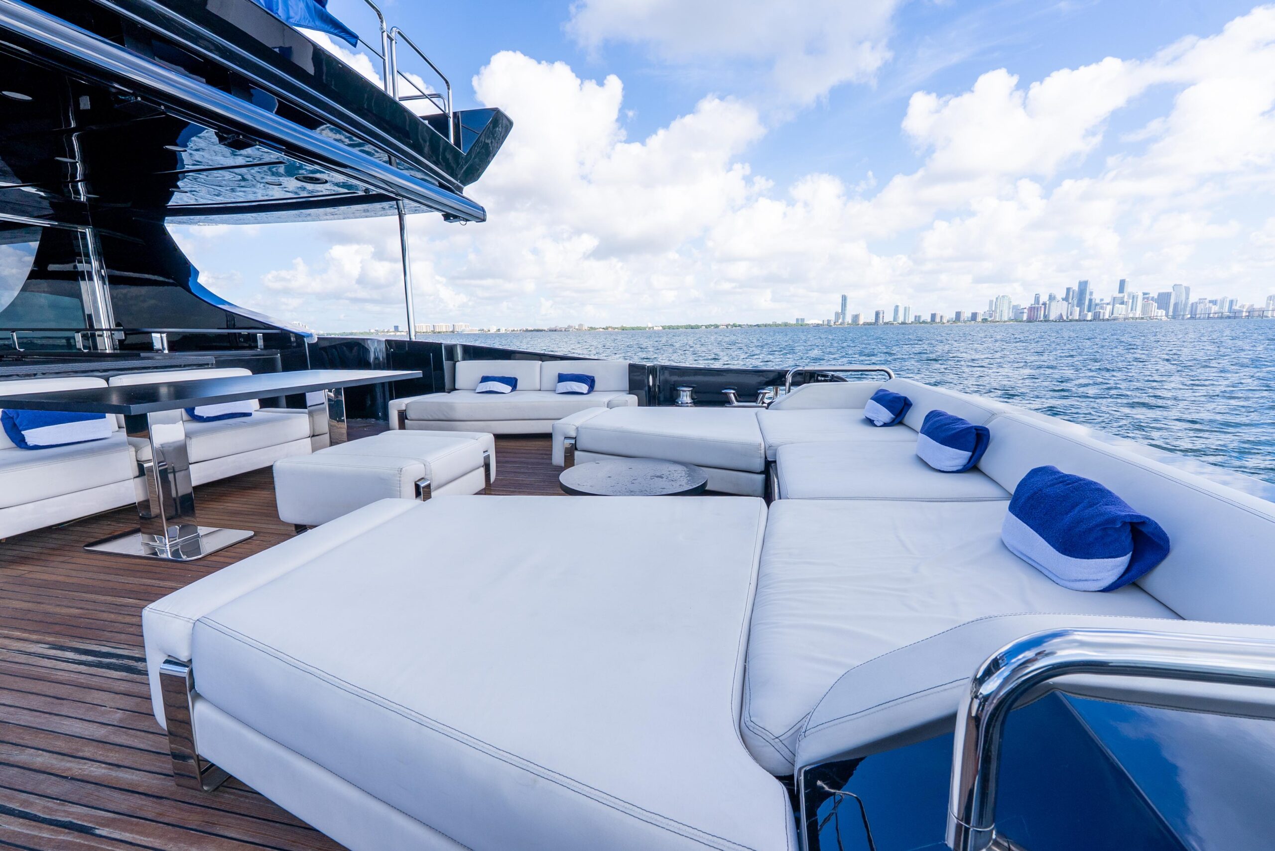 Azimut 103S предлагает современный и роскошный интерьер с четырьмя гостевыми каютами, включая мастер-каюту во всю ширину корпуса, а также обширные открытые зоны. Яхта отлично подходит как для приёма гостей, так и для семейного отдыха — с просторным флайбриджем, кокпитом и зонами отдыха на носовой палубе.