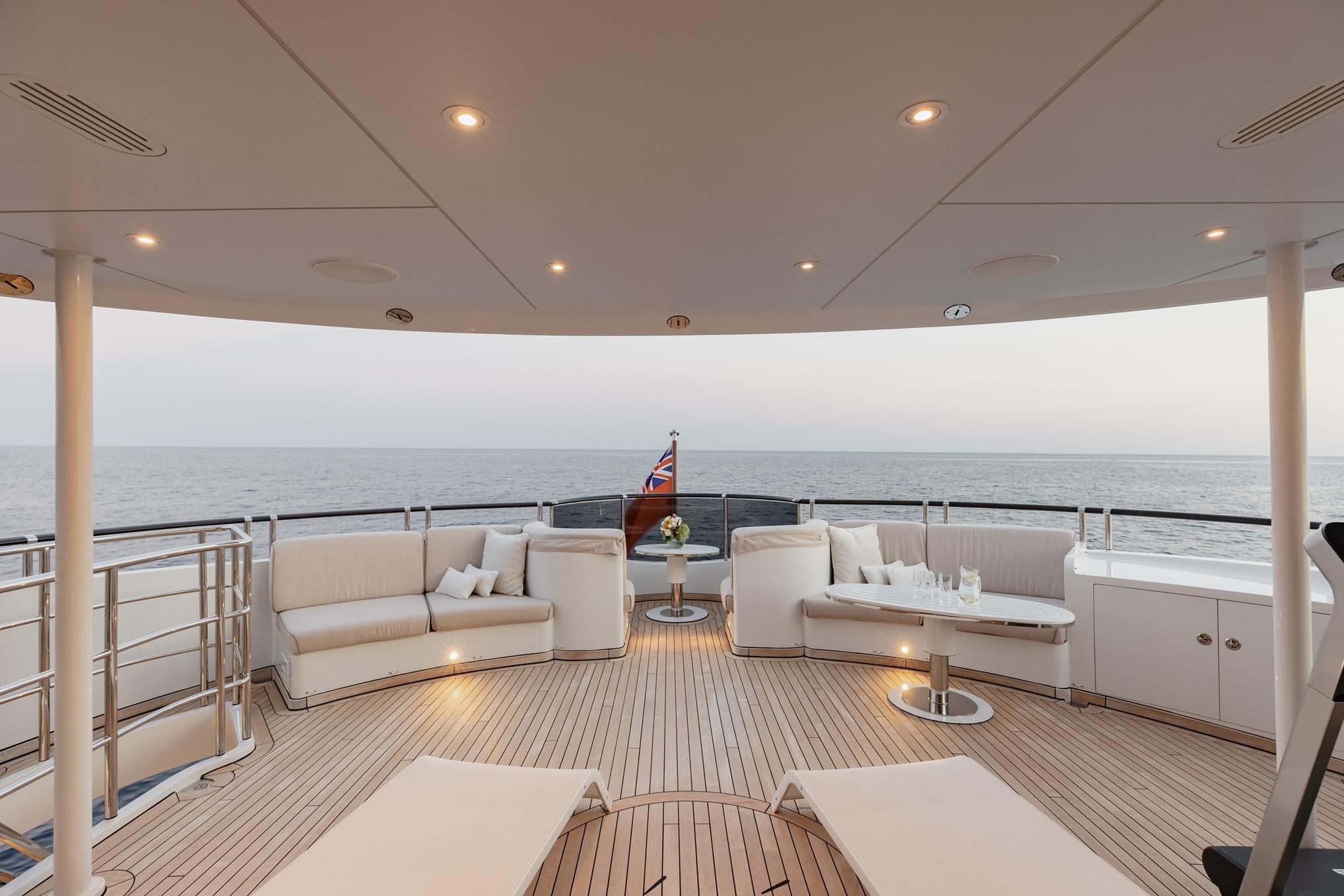 На борту ESTEL предусмотрено несколько зон отдыха, включая сандек с джакузи, баром, обеденной зоной и площадкой для загара.