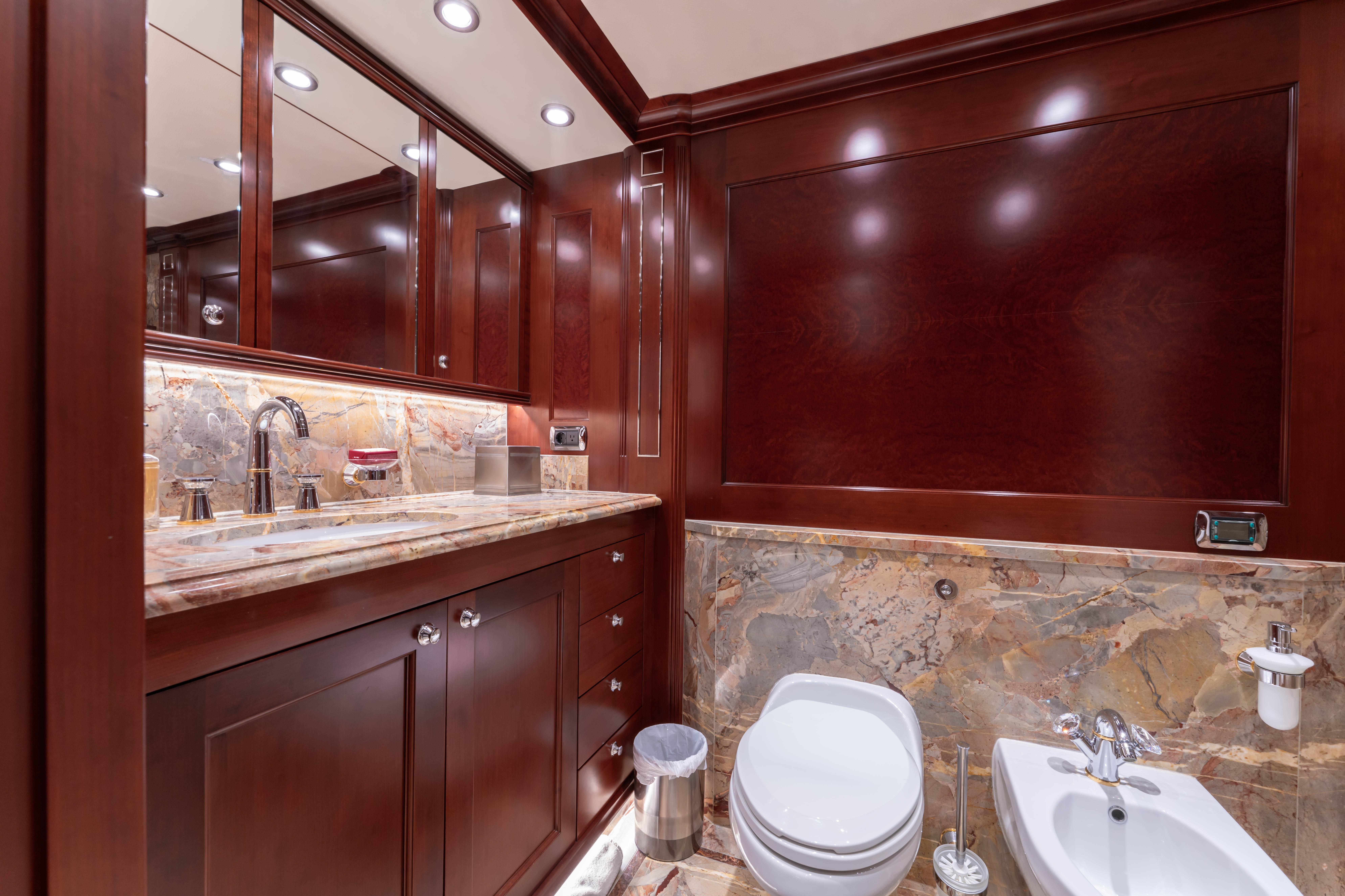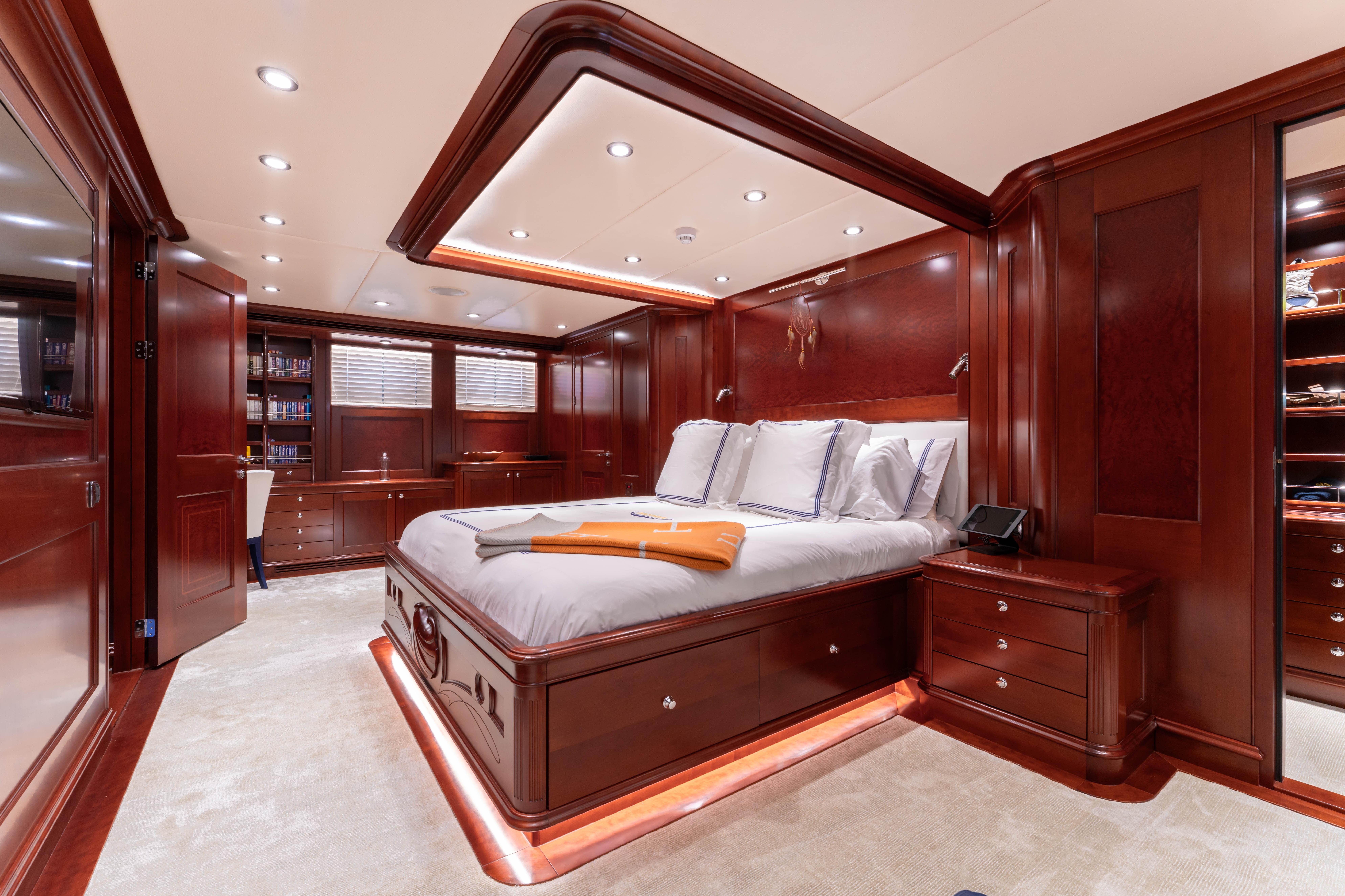 Яхта выполнена с безупречным вниманием к деталям: полированная нержавеющая сталь, высокоточная столярка, мраморные вставки и изысканные гранитные поверхности. Современные системы освещения и развлечений обеспечивают максимальный комфорт и стиль в любом плавании.