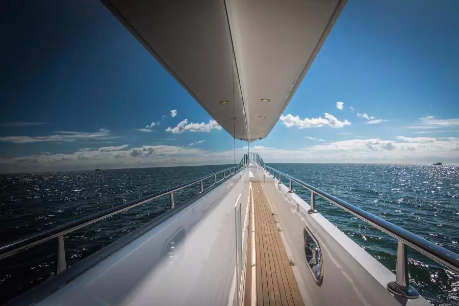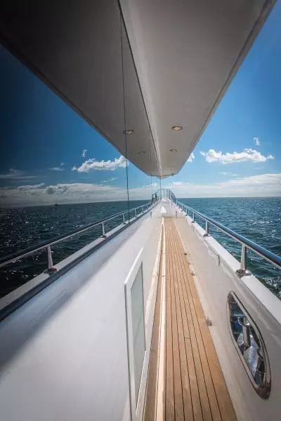 Высокий фальшборт со встроенными палубными огнями; бортовые двери для посадки