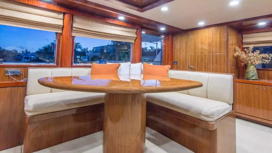 Окрашенный фанерный пол под ковролин (кроме тиковых акцентов в рубке, санузлах и камбузе)