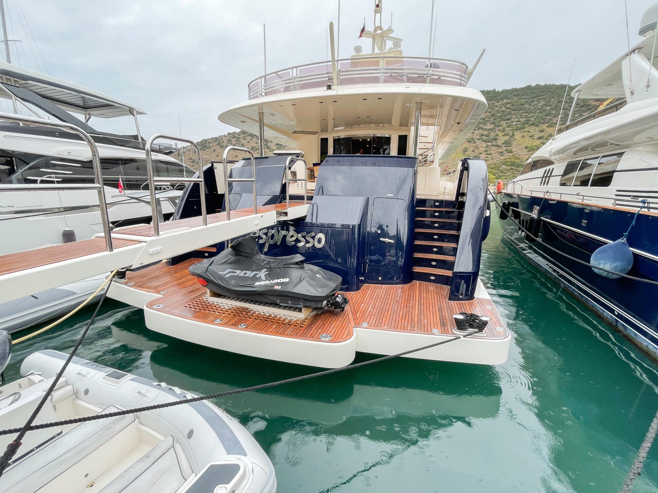 Espresso была построена верфью Horizon в 2009 году. При ширине 8 м и осадке 2 м яхта имеет корпус и надстройку из стеклопластика (GRP). Валовая вместимость составляет 279 брутто-регистровых тонн. Яхта оснащена двигателями MTU мощностью по 3650 л.с. каждый, что обеспечивает максимальную скорость 22 узла и крейсерскую скорость 16 узлов. Максимальная дальность хода Espresso оценивается примерно в 400 морских миль. Моторная яхта может разместить до 10 гостей в 4 каютах и отличается интерьером от Luca Dini Design & Architecture.