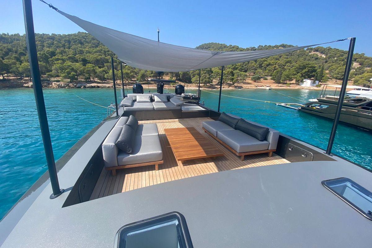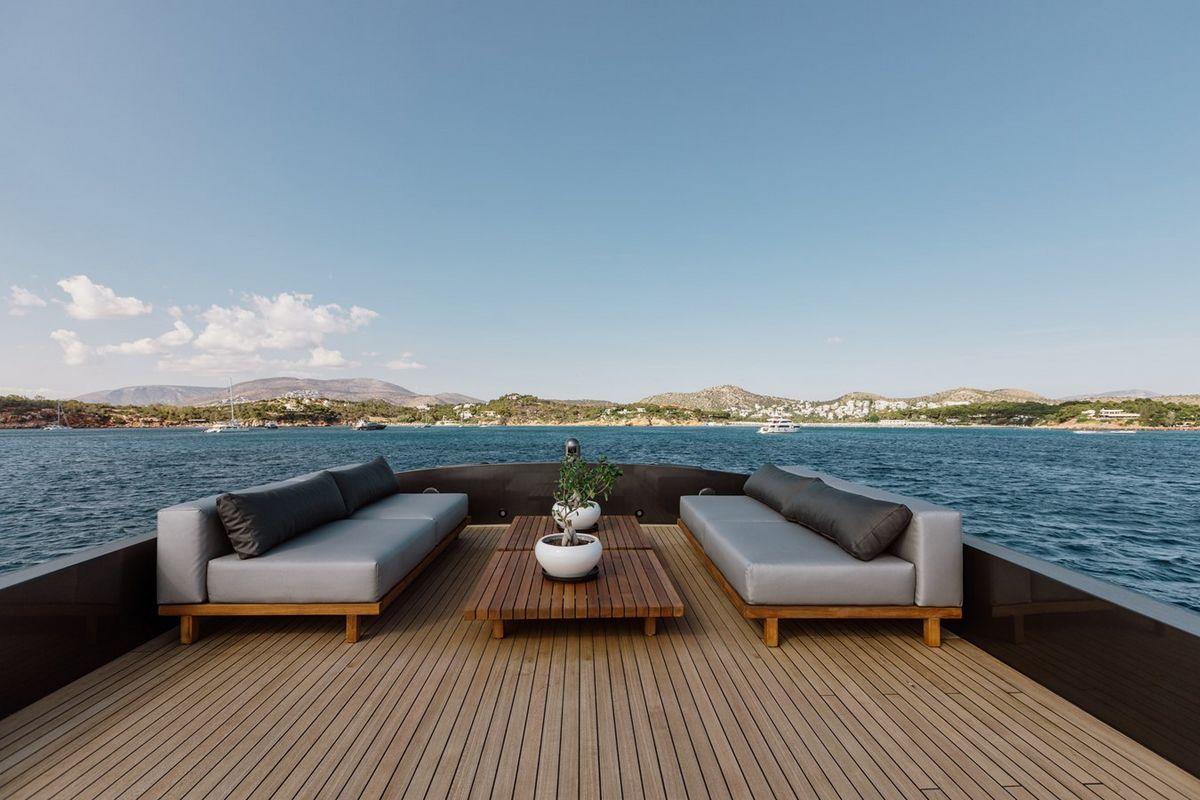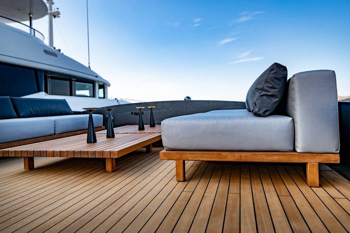 Все палубы Eva были полностью обновлены с заменой тика, а на солнечной палубе, в носовой и кормовой зонах установлены новая мебель и обивка. Сандек оформлен как уединённая зона отдыха с большими лежаками, идеально подходящая для релаксации на свежем воздухе.