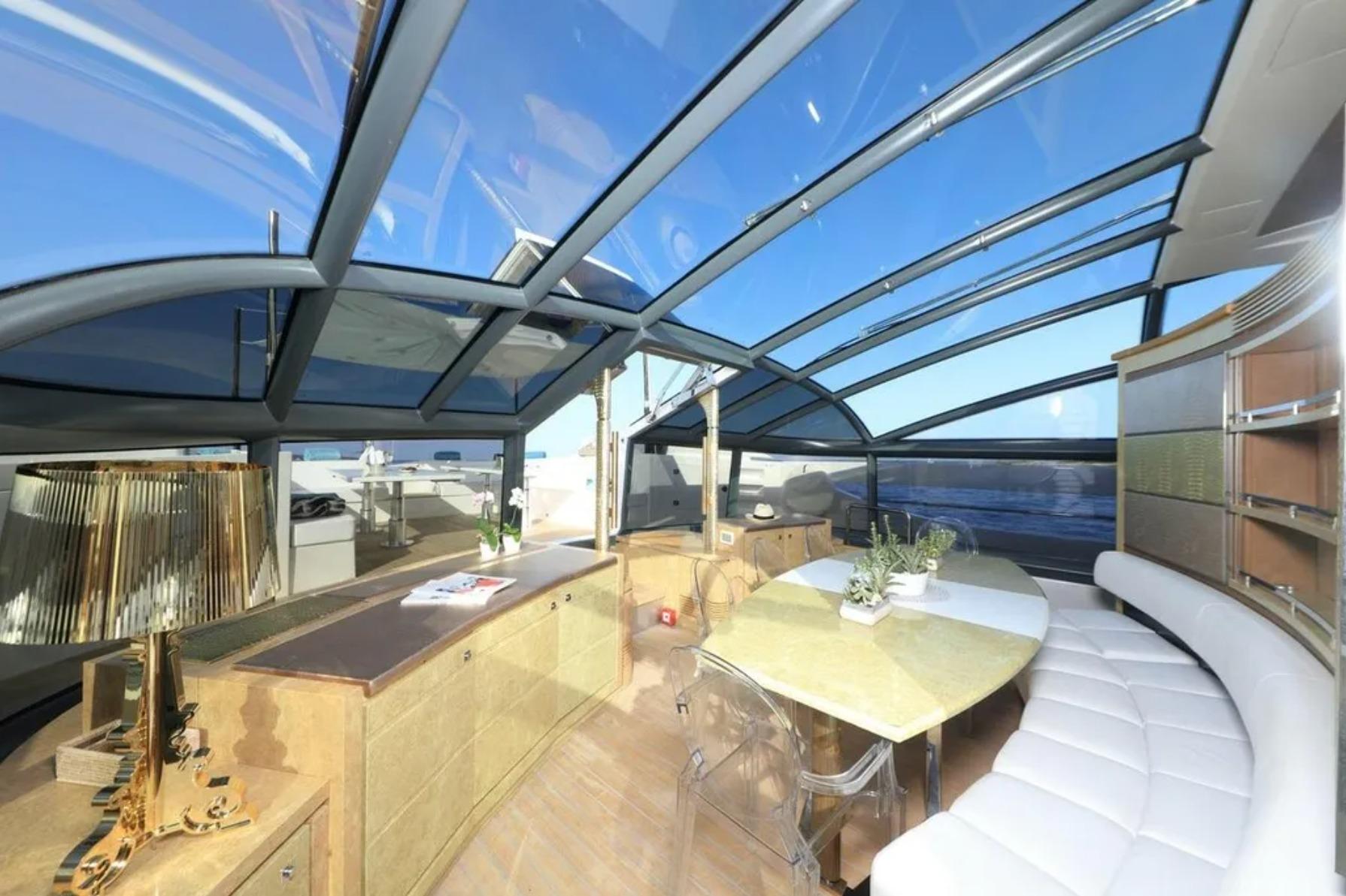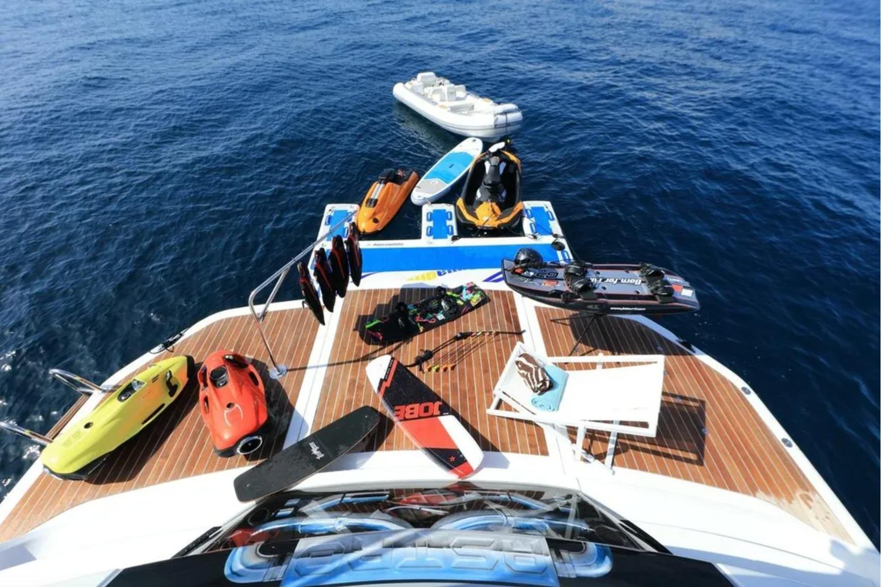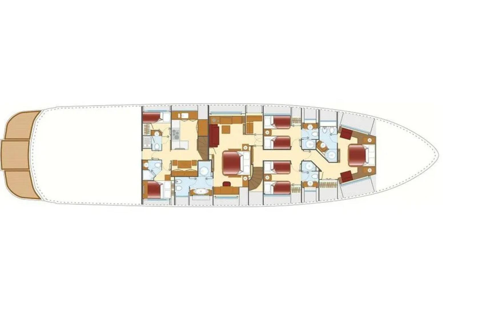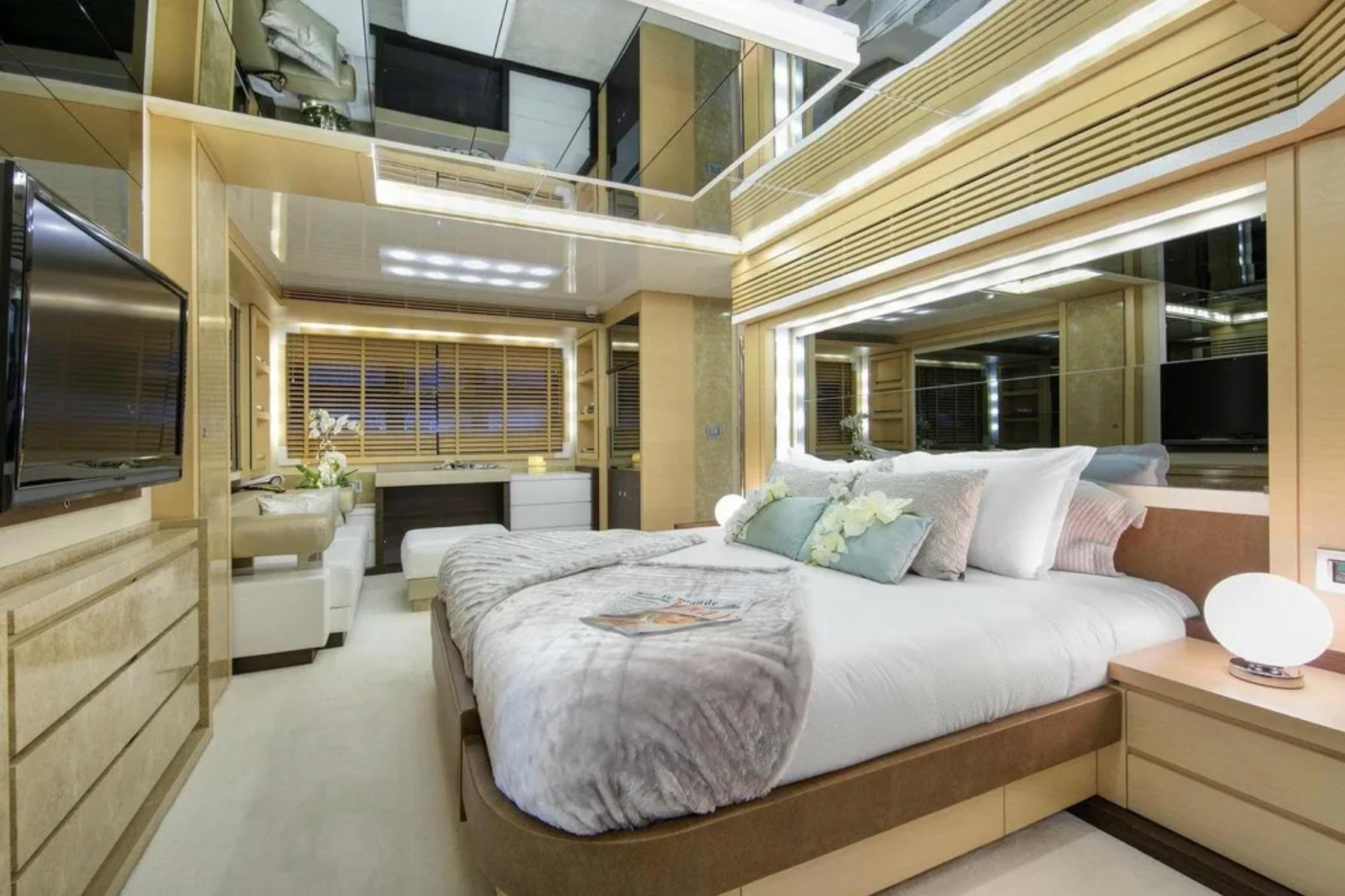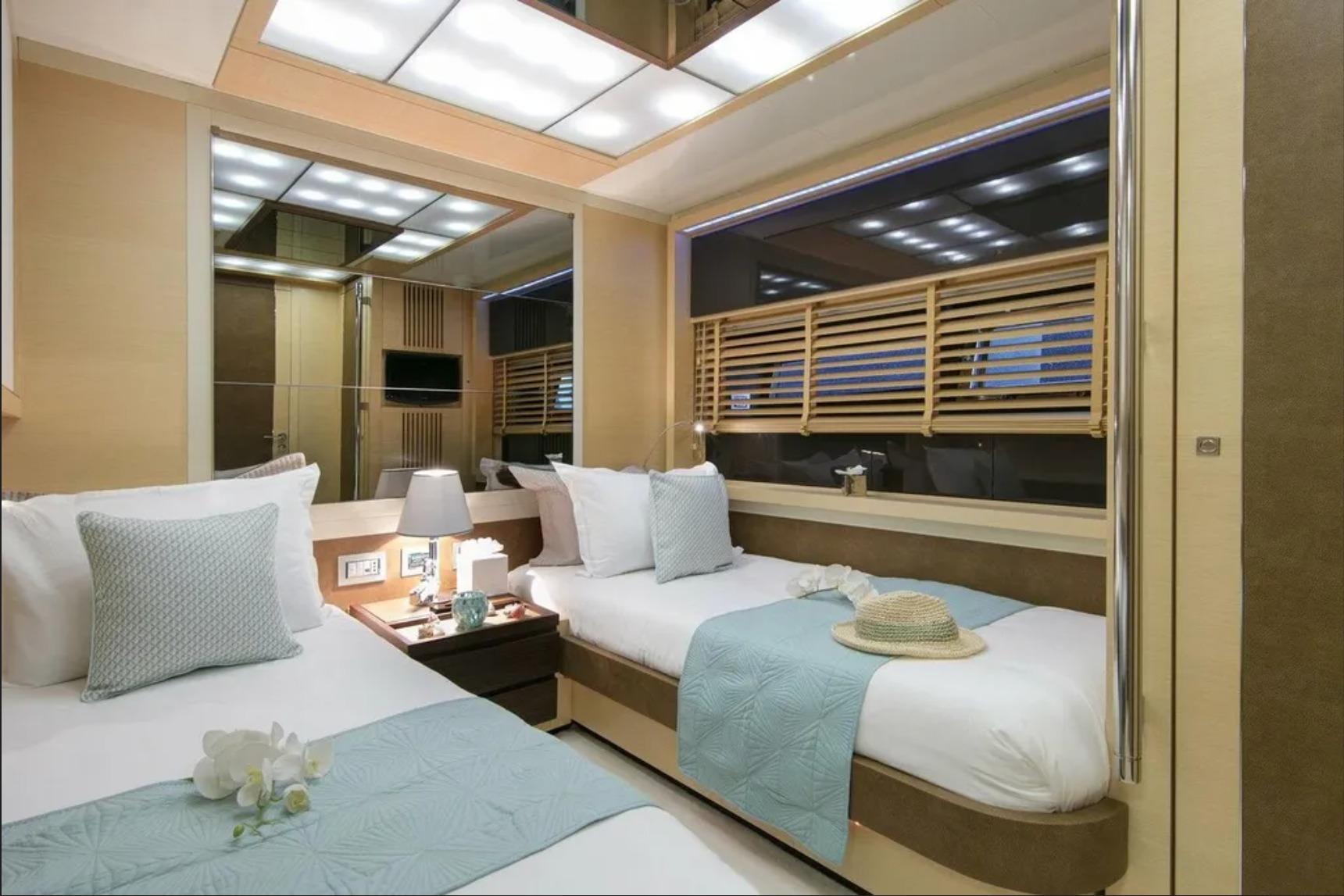 Яхта может комфортно разместить до 10 гостей в четырёх хорошо оборудованных каютах, предлагая отличный баланс между производительностью, комфортом и стилем жизни на борту. Оснащённая гироскопическими стабилизаторами Seakeeper, она обеспечивает превосходную устойчивость как на ходу, так и на якоре.