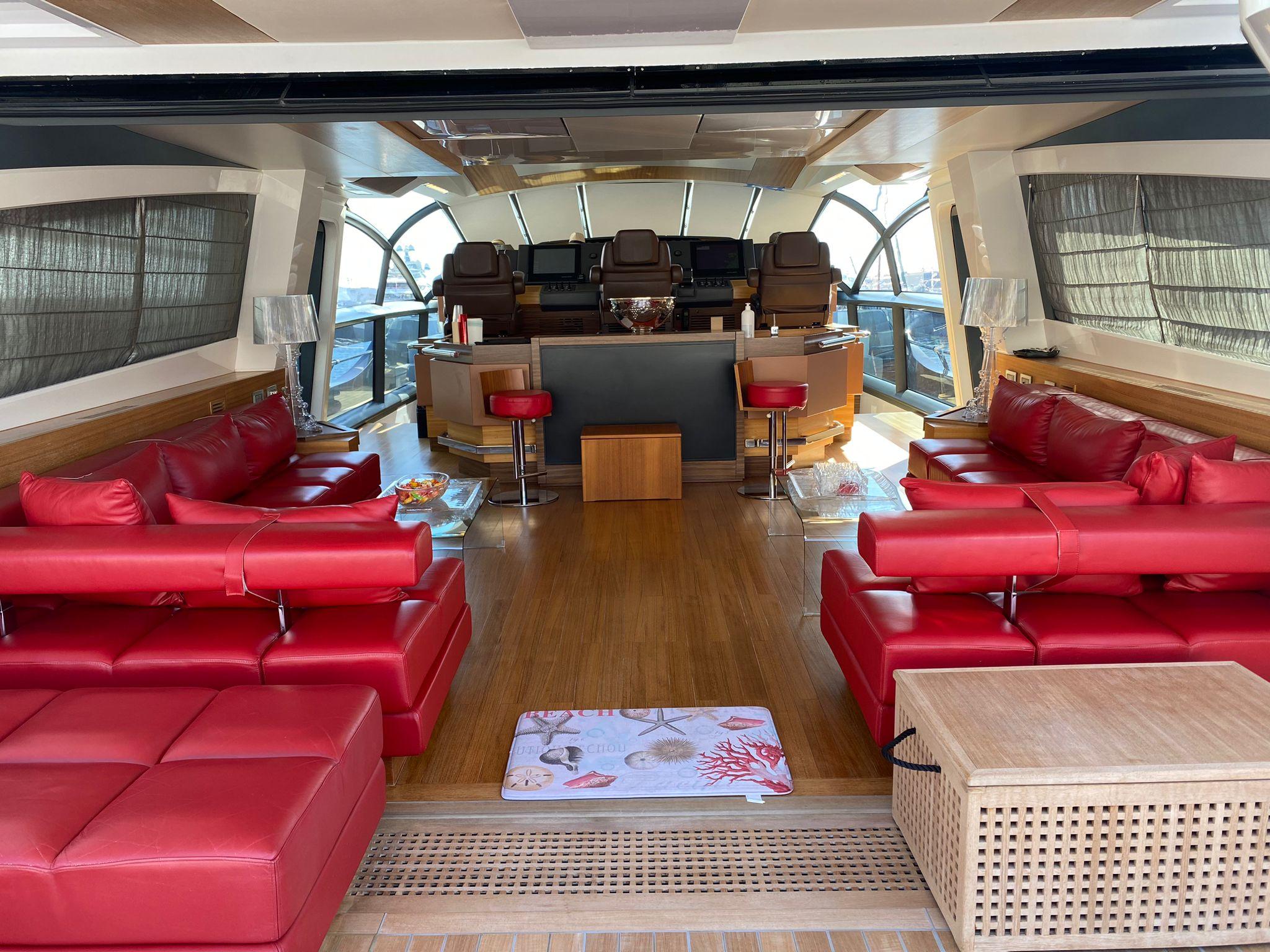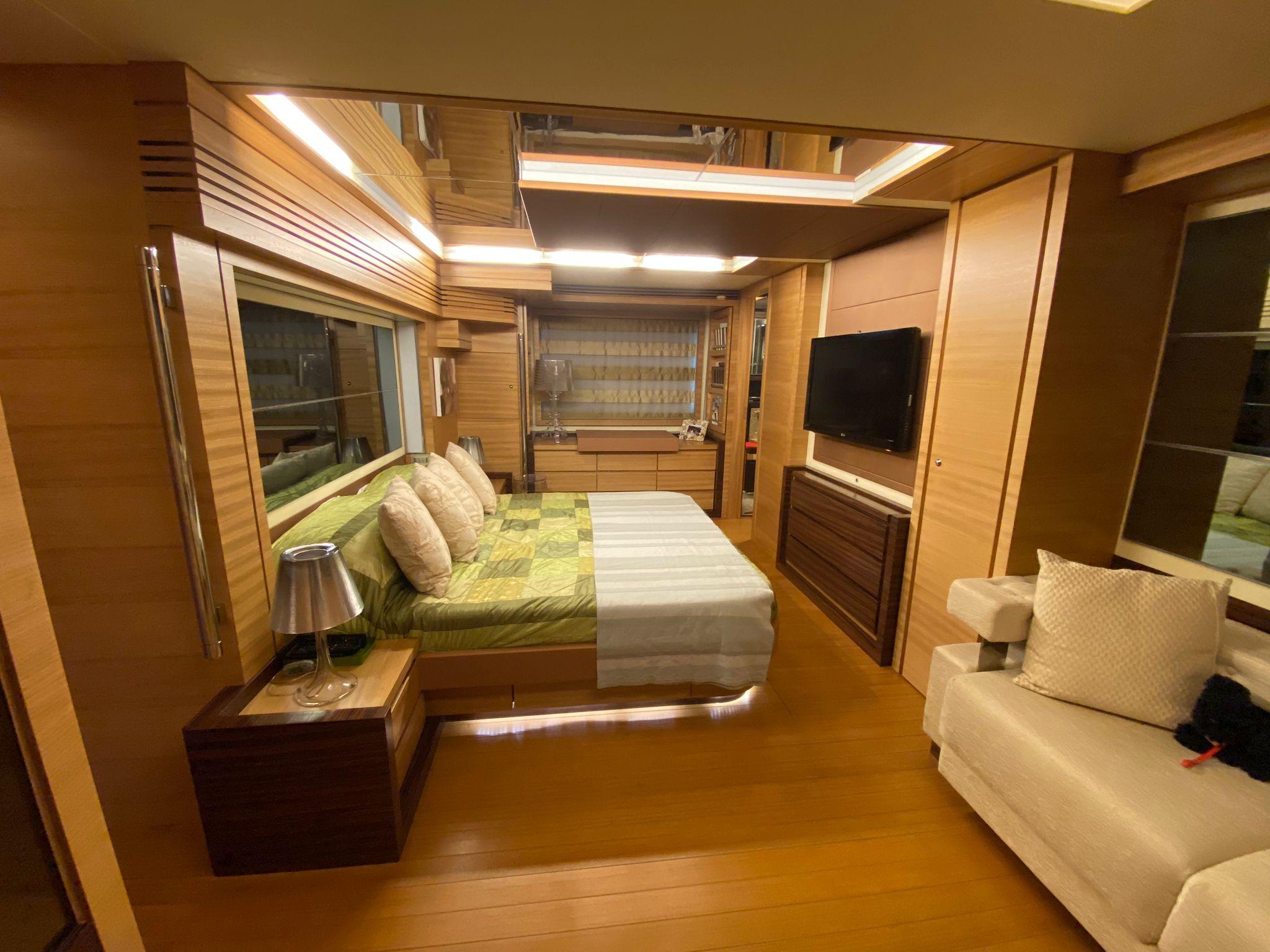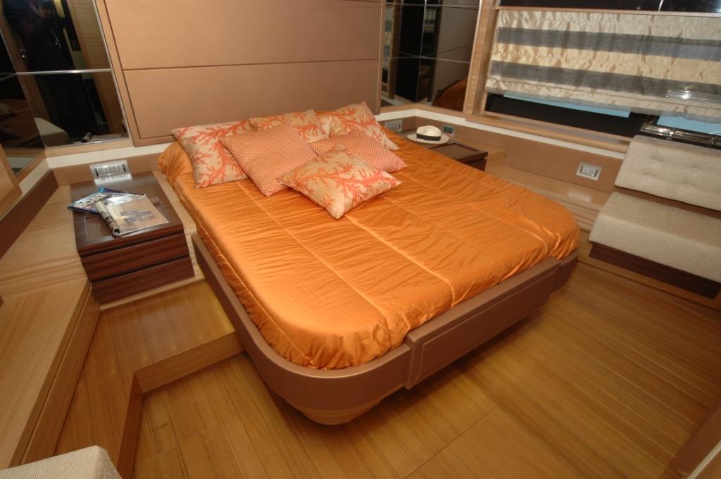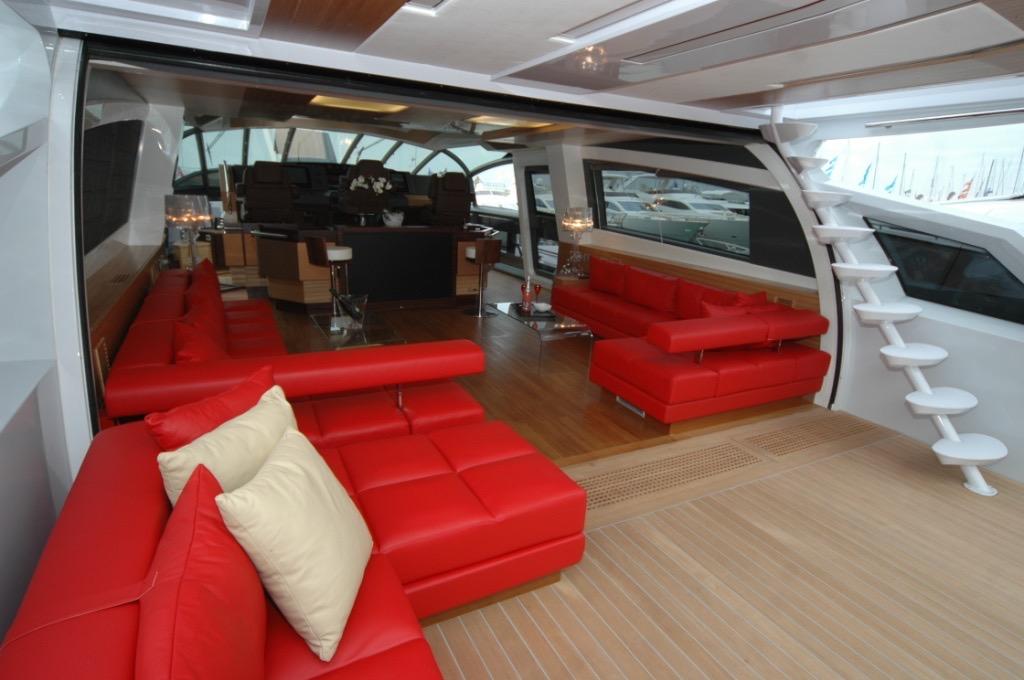 КОНФИГУРАЦИЯ С ЧЕТЫРЬМЯ ГОСТЕВЫМИ КАЮТАМИ, КАЖДАЯ С СОБСТВЕННОЙ ВАННОЙ КОМНАТОЙ, ГОСТЕВОЙ САНУЗЕЛ, САЛОН, БАР, ОБЕДЕННАЯ ЗОНА, ДВЕ КАЮТЫ ЭКИПАЖА С ДВУМЯ ВАННЫМИ КОМНАТАМИ, ПРОСТОРНАЯ КАМБУЗНАЯ ЗОНА, КОМАНДНЫЙ САЛОН С ВОЗМОЖНОСТЬЮ ТРАНСФОРМАЦИИ, ГАРАЖ ДЛЯ ТЕНДЕРА, U-ОБРАЗНЫЙ ДИВАН НА НОСУ С ДВУМЯ СТОЛАМИ И СОЛНЕЧНЫМИ ЛЕЖАКАМИ, БОЛЬШАЯ ЗОНА ДЛЯ ЗАГАРА НА ФЛАЙБРИДЖЕ.