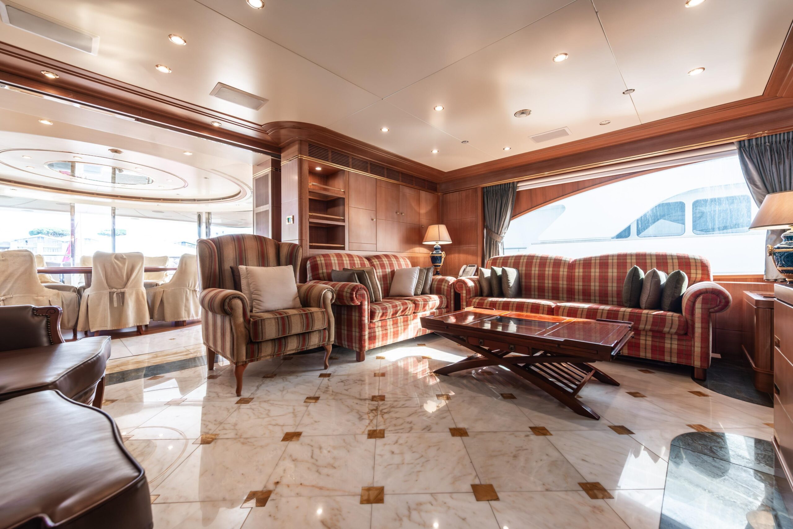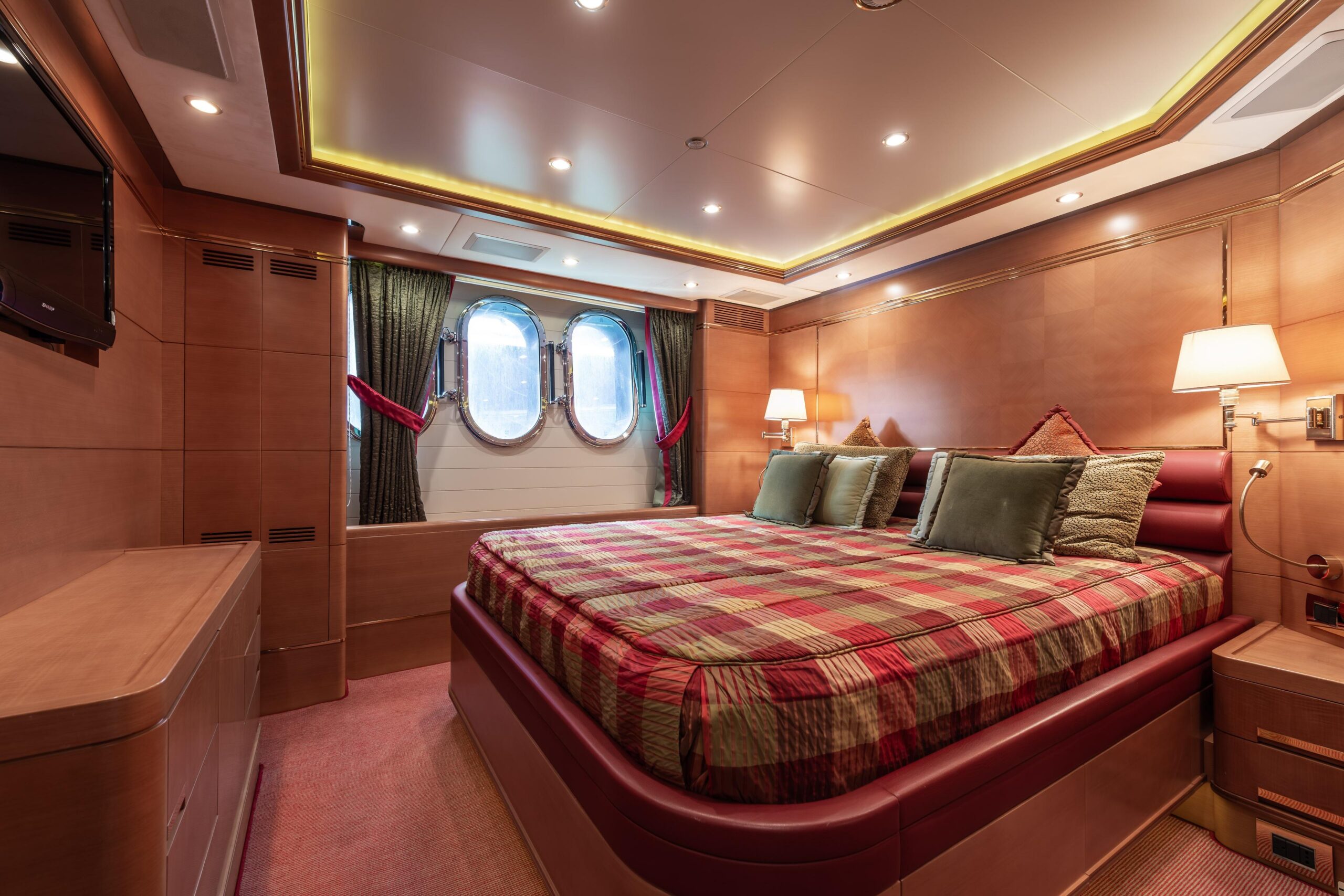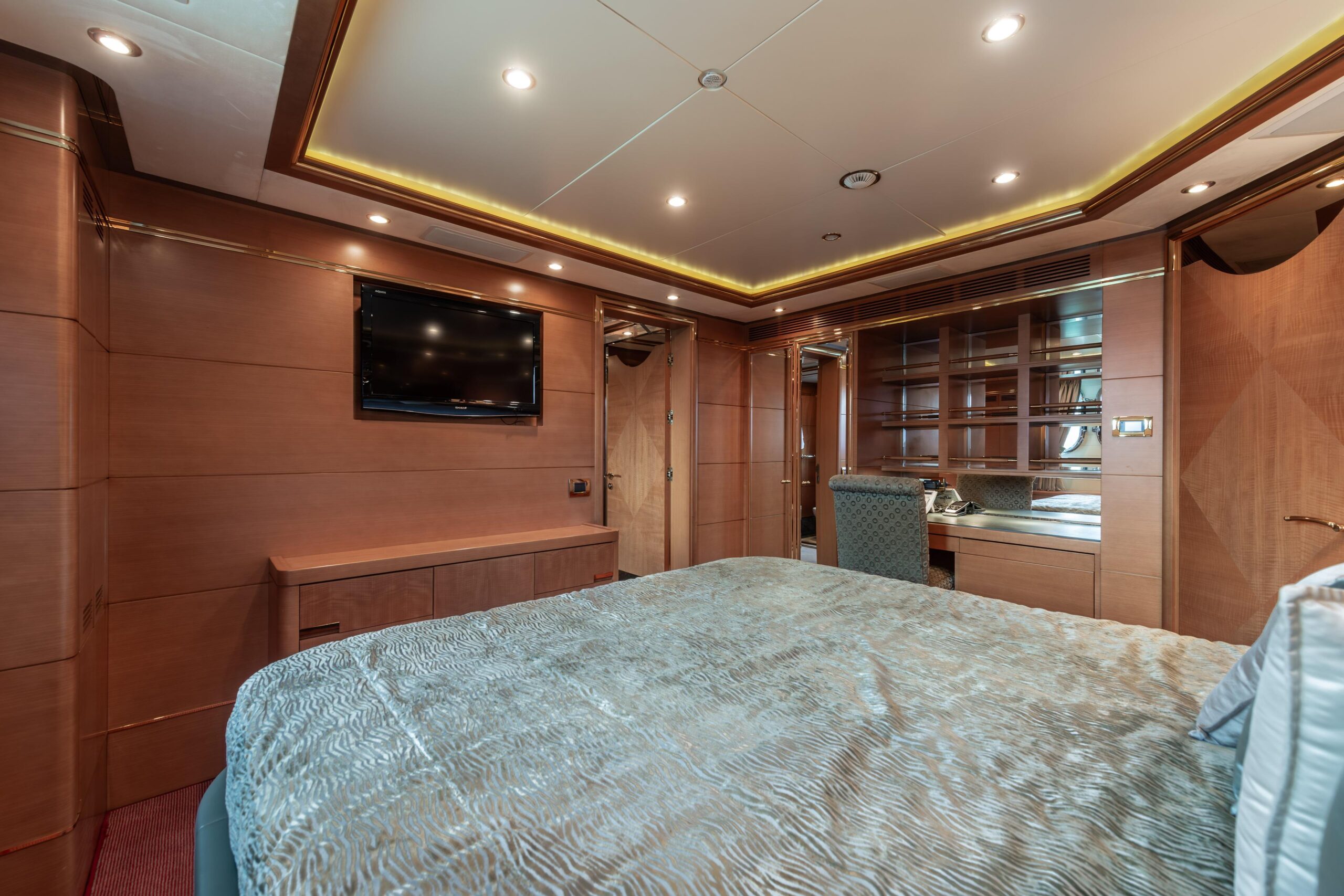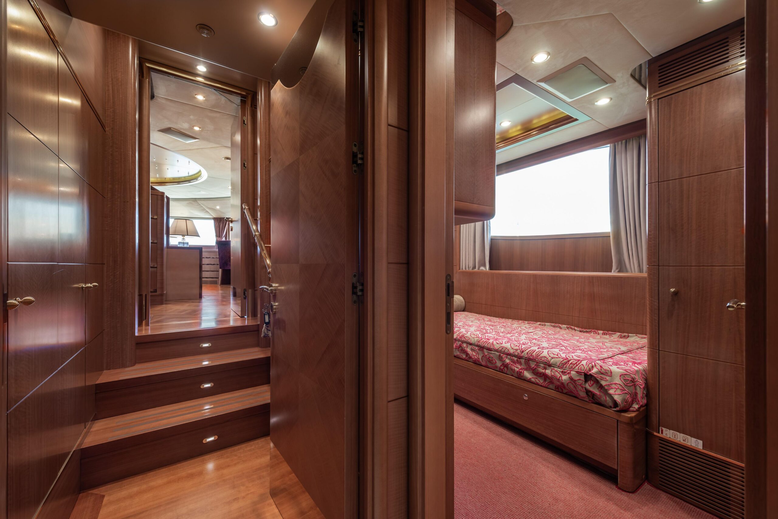Планировка интерьера отличается исключительной универсальностью и включает лифт, обслуживающий все палубы. Яхта может разместить до 15 гостей в 7 каютах: мастер-каюта расположена в носовой части главной палубы, на нижней палубе — две двухместные каюты и две каюты с раздельными кроватями и откидными спальными местами Pullman. Дополнительно имеется двухместная каюта на бридж-деке и одноместная каюта рядом с мастер-каютой, которую легко переоборудовать в кабинет владельца или другое функциональное пространство.