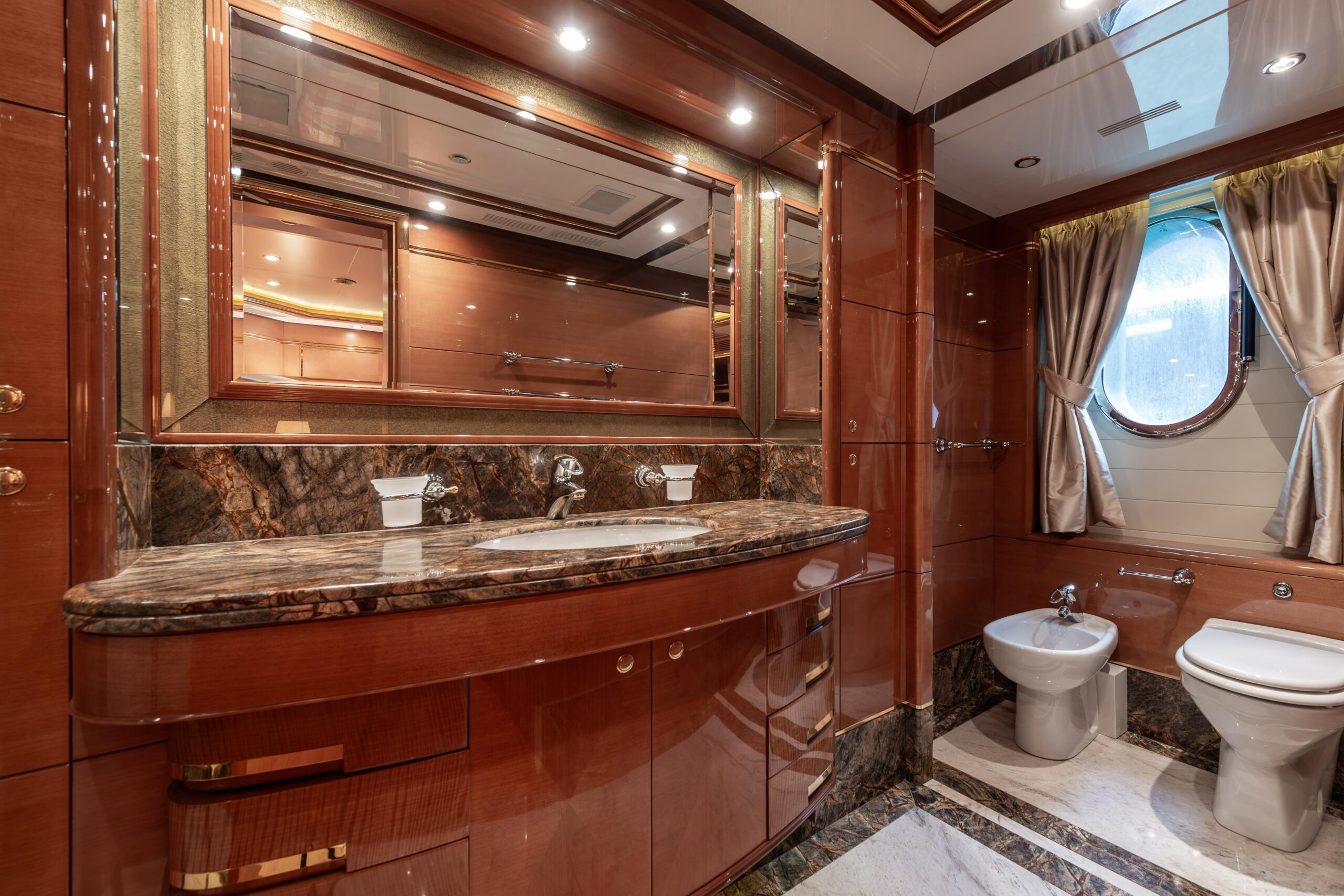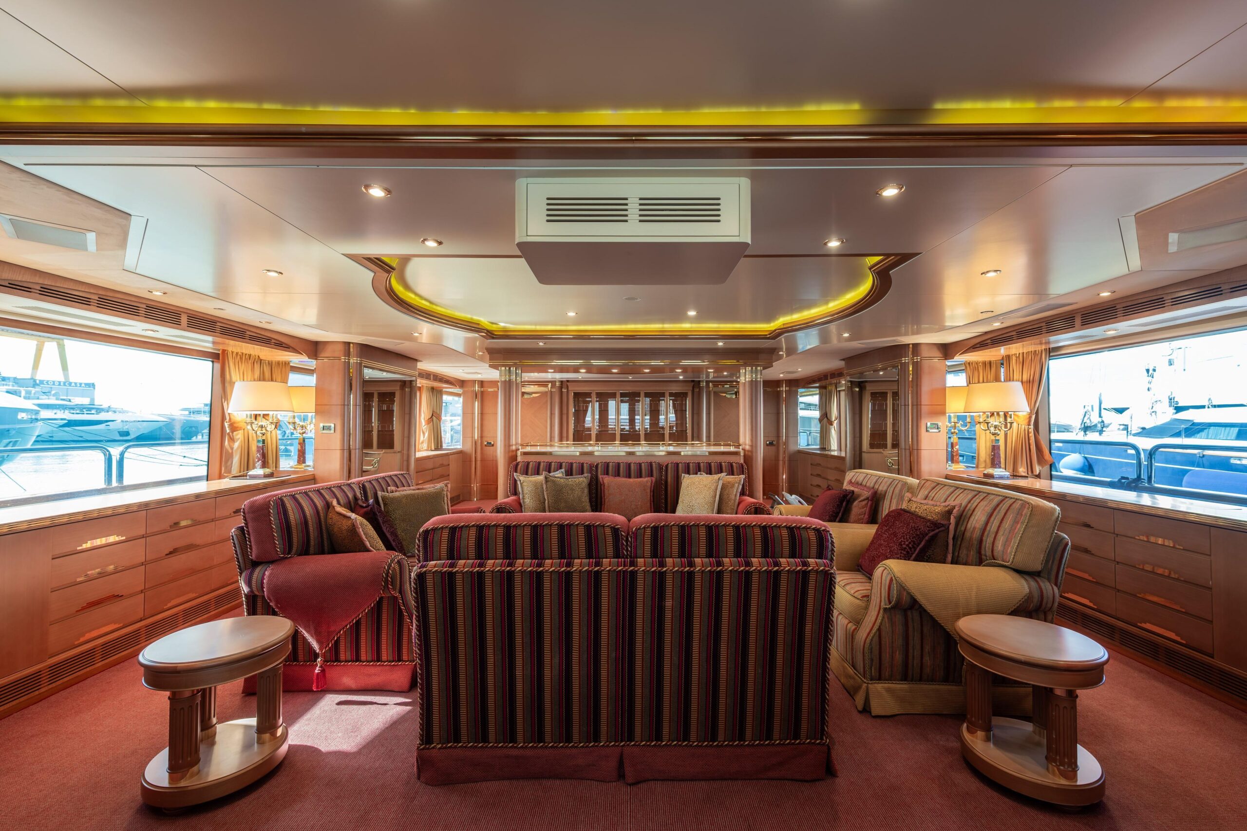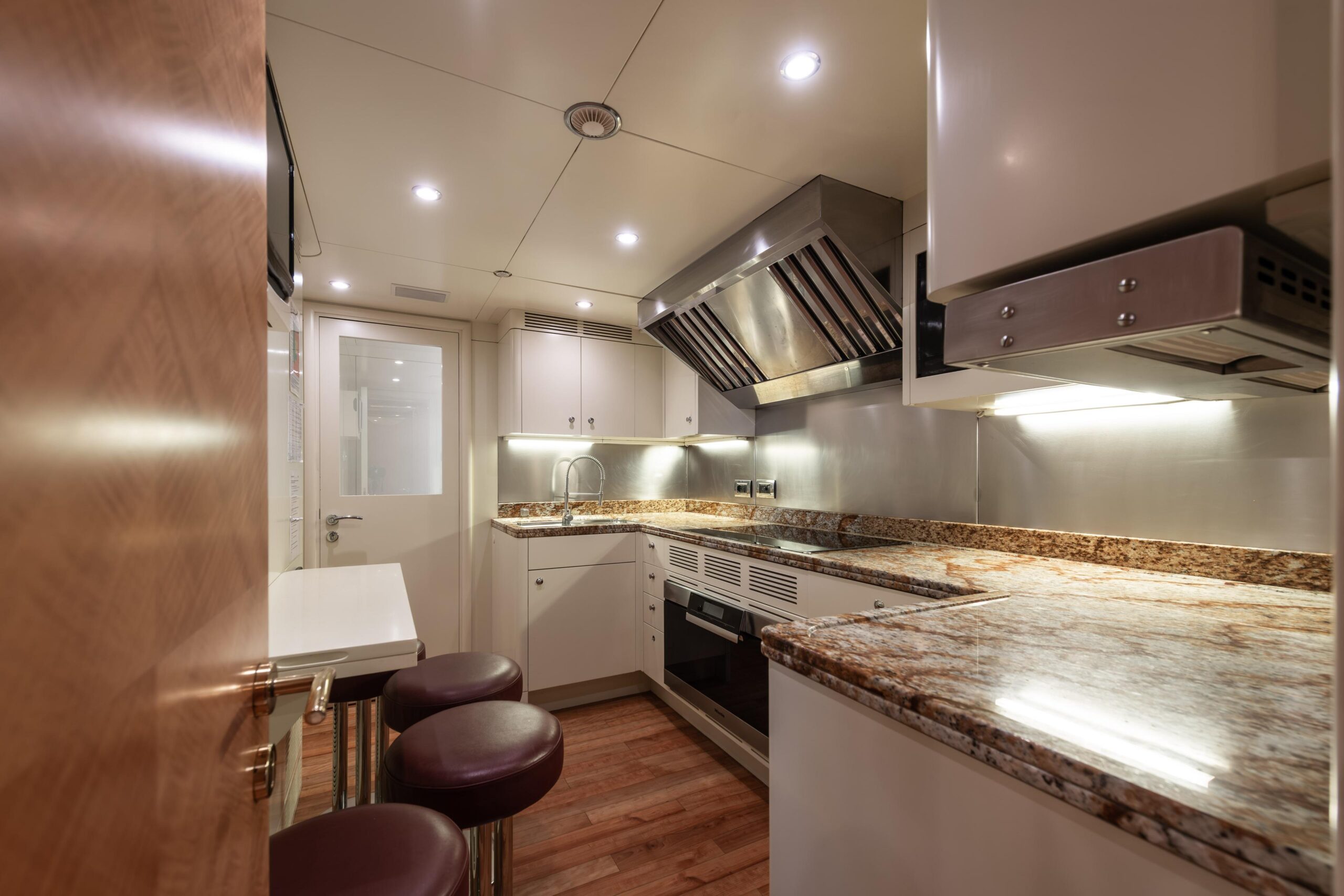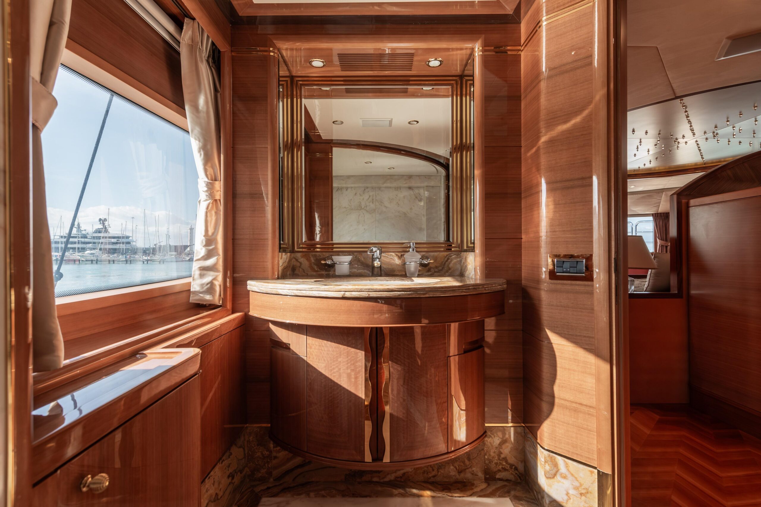 Планировка интерьера отличается исключительной универсальностью и включает лифт, обслуживающий все палубы. Яхта может разместить до 15 гостей в 7 каютах: мастер-каюта расположена в носовой части главной палубы, на нижней палубе — две двухместные каюты и две каюты с раздельными кроватями и откидными спальными местами Pullman. Дополнительно имеется двухместная каюта на бридж-деке и одноместная каюта рядом с мастер-каютой, которую легко переоборудовать в кабинет владельца или другое функциональное пространство.