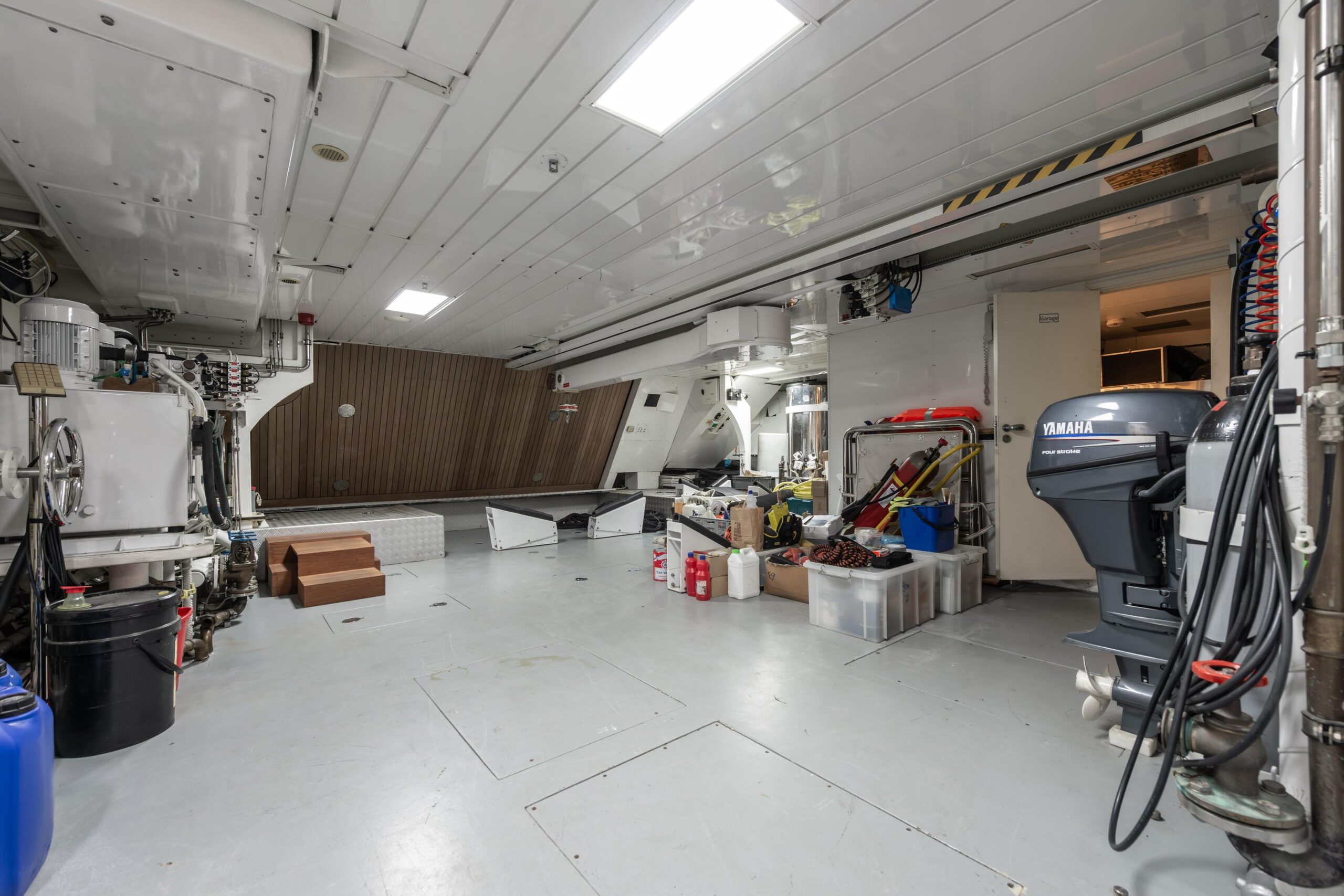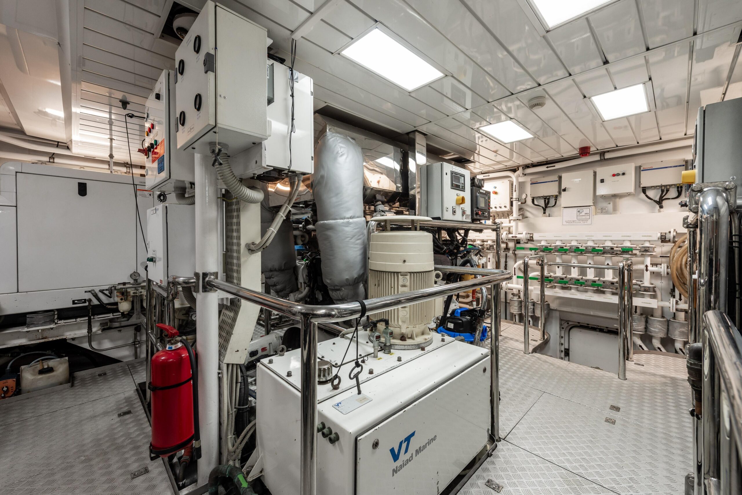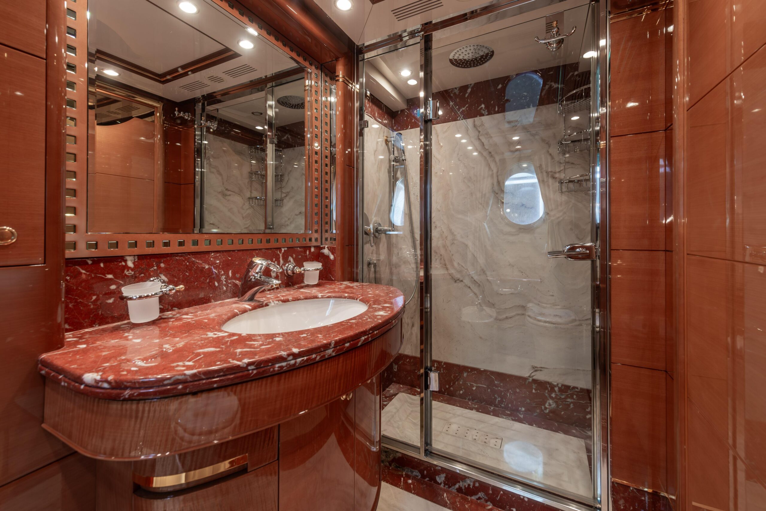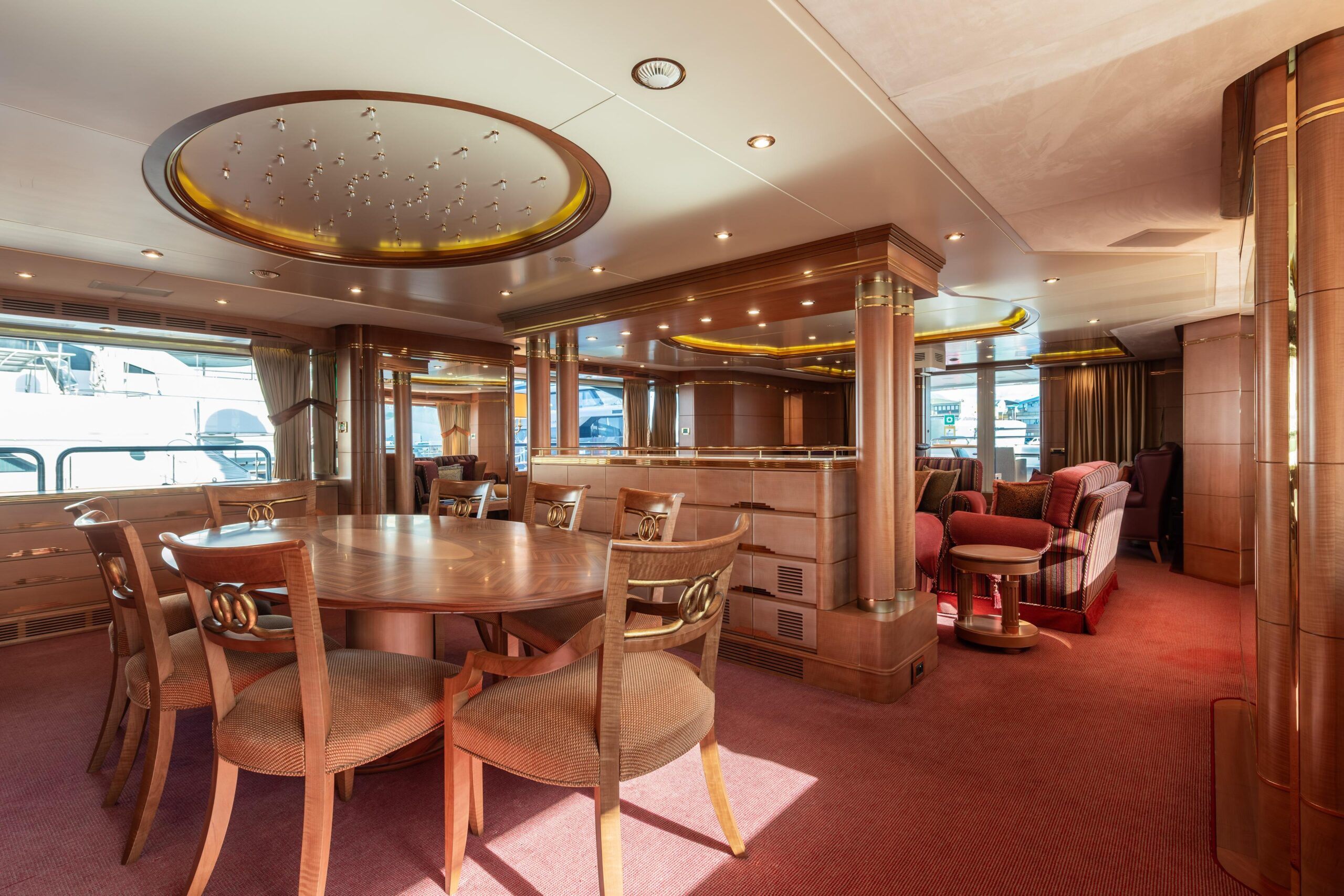 Планировка интерьера отличается исключительной универсальностью и включает лифт, обслуживающий все палубы. Яхта может разместить до 15 гостей в 7 каютах: мастер-каюта расположена в носовой части главной палубы, на нижней палубе — две двухместные каюты и две каюты с раздельными кроватями и откидными спальными местами Pullman. Дополнительно имеется двухместная каюта на бридж-деке и одноместная каюта рядом с мастер-каютой, которую легко переоборудовать в кабинет владельца или другое функциональное пространство.