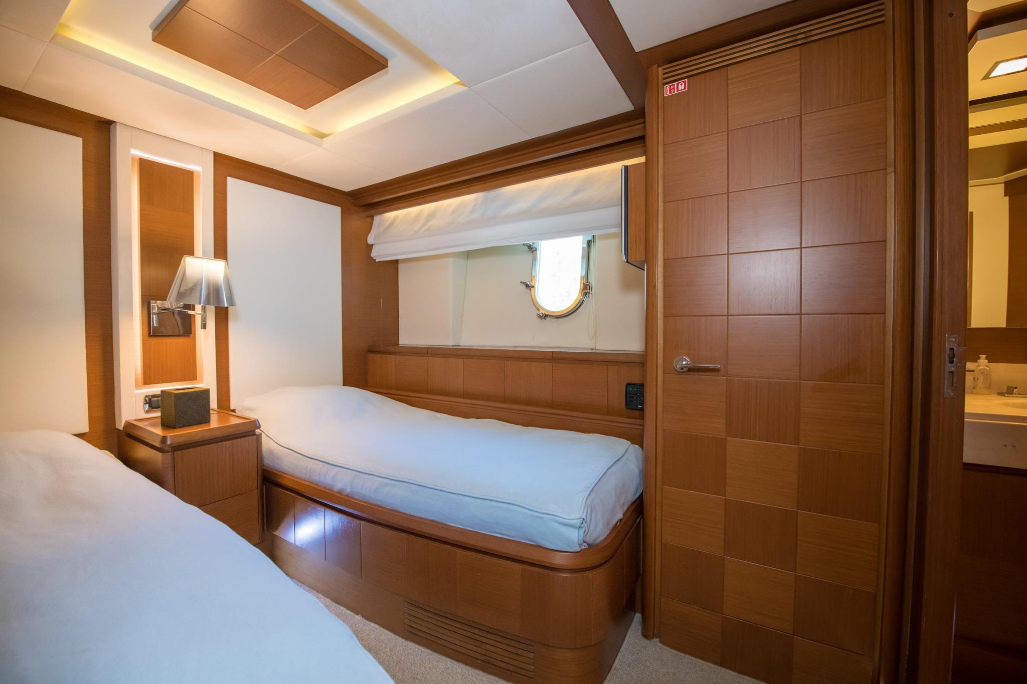 La Rubia размещает до 12 гостей в пяти прекрасно оформленных каютах с ванными комнатами, отделанными мрамором Travertino Navona. Полноразмерная мастер-каюта во всю ширину корпуса на главной палубе — это уединённое пространство с кроватью king-size, мебелью Armani Casa и спа-ванной с джакузи и отдельным душем. VIP-каюта и двухместные каюты продолжают тему сдержанной элегантности, а медиа-салон легко трансформируется в шестую гостевую каюту. По всей яхте установлены кондиционирование и высокоскоростной Wi-Fi.