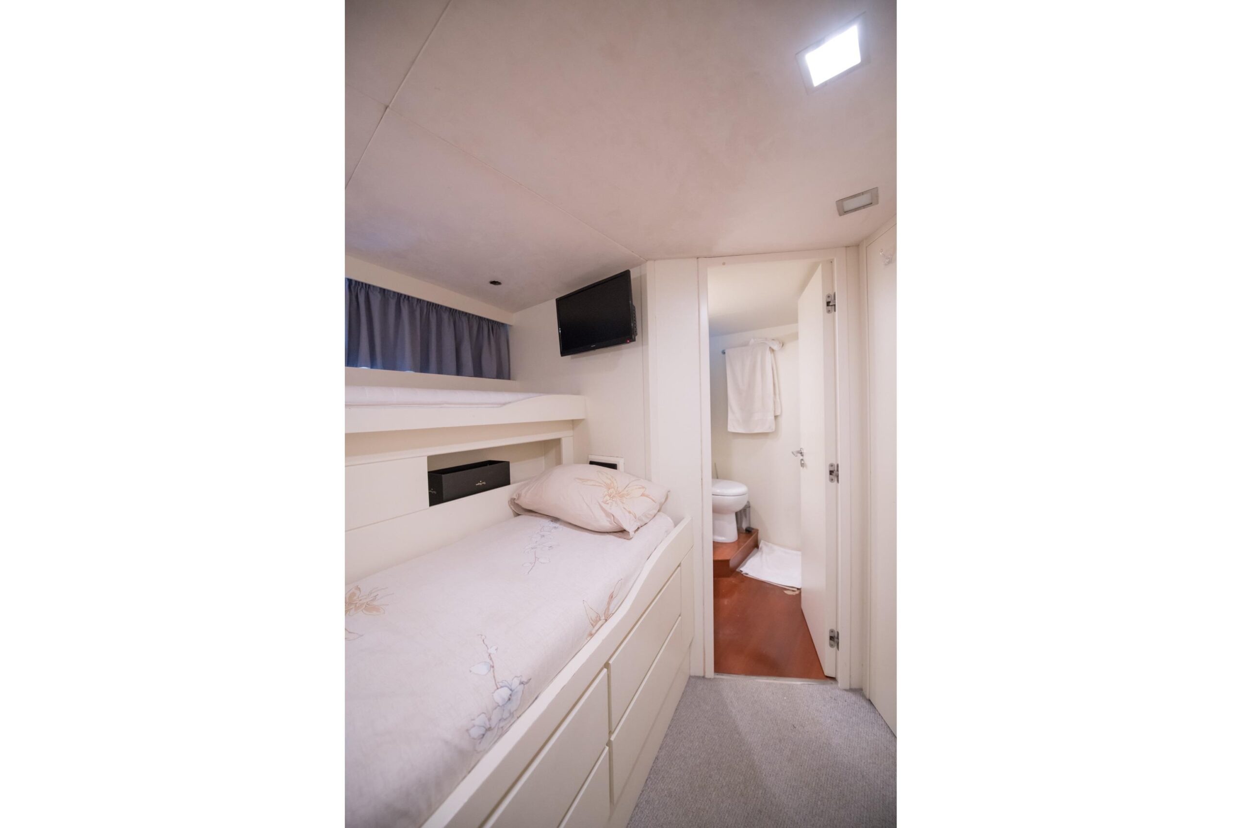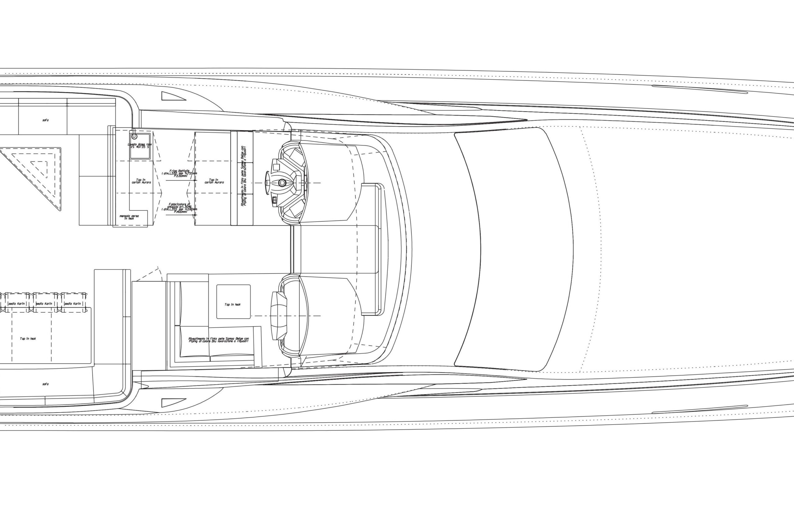 Просторный флайбридж создан для отдыха и развлечений и оснащён джакузи на четыре человека, полноценным баром, обеденной зоной и большими зонами для загара под жёсткой крышей с раздвижным люком. Каждая палуба располагает к наслаждению — от носовых лежаков до просторной кормовой обеденной зоны с панорамными окнами и раздвижными стеклянными дверями, обеспечивающими плавный переход между интерьером и экстерьером.