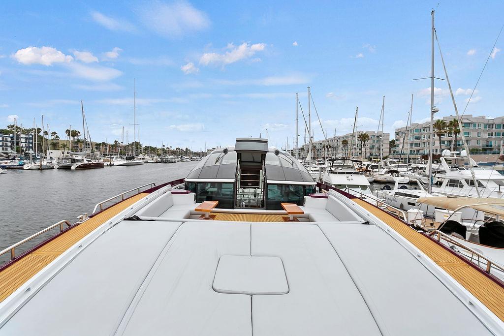 Оснащённая современным стабилизатором Seakeeper, гаражом для тендера с 4-метровым водомётным тендером Williams 2018 года, передовыми развлекательными системами и концепцией полностью открытого флайбриджа с проходной обеденной зоной в носовую часть, Baia One Hundred является обязательной к просмотру. Просторные зоны отдыха и развлечений делают её идеальной для стильного приёма гостей.