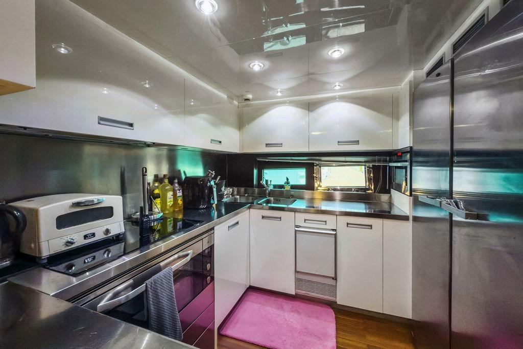 . Яхта выставлена на продажу в связи с тем, что владелец принимает новую яхту. Несмотря на отличное общее состояние, фирменное фиолетовое лакокрасочное покрытие требует обновления, что предоставляет отличную возможность для индивидуальной кастомизации.