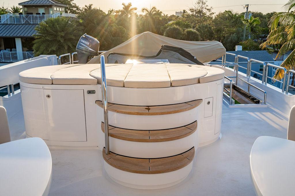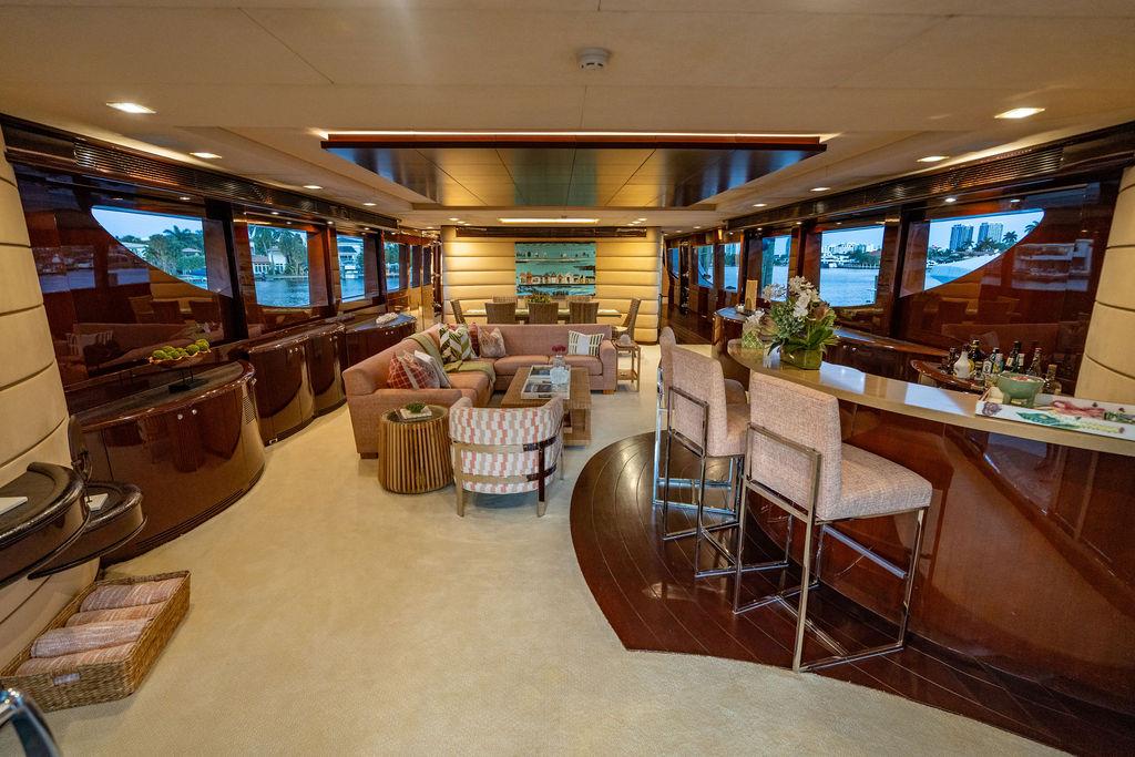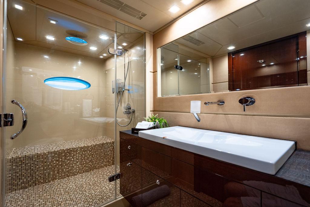Два двигателя Caterpillar мощностью по 1825 л.с. обеспечивают надежный, плавный и экономичный ход, а система стабилизации Naiad с нулевой скоростью гарантирует максимальный комфорт как на ходу, так и на якоре. Осадка всего 2,3 м (7,5 фута) делает яхту идеальной для круизов по Багамам, Карибскому бассейну и самым востребованным портам Средиземноморья.
